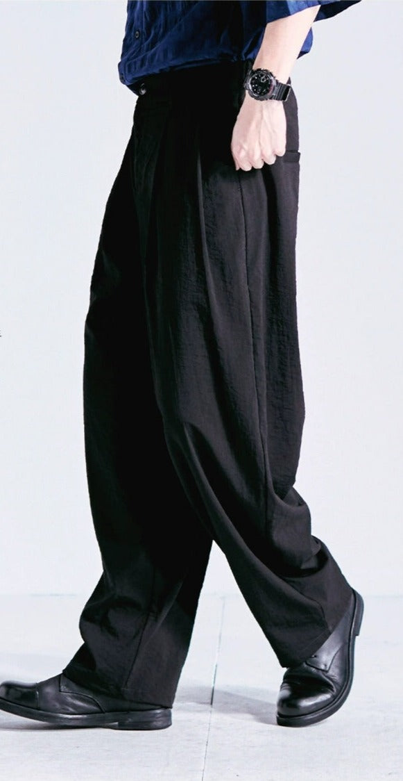 Whether it's a casual outing or an upscale evening event, pair these trousers with a crisp button-up or a relaxed tee for an ensemble that's both nonchalant and professional. Their wide-leg design allows for easy movement, making these trousers a perfect blend of form and function.
