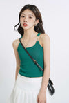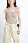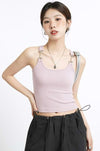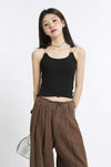 Metal Buckle Strap Ribbed Crop Top