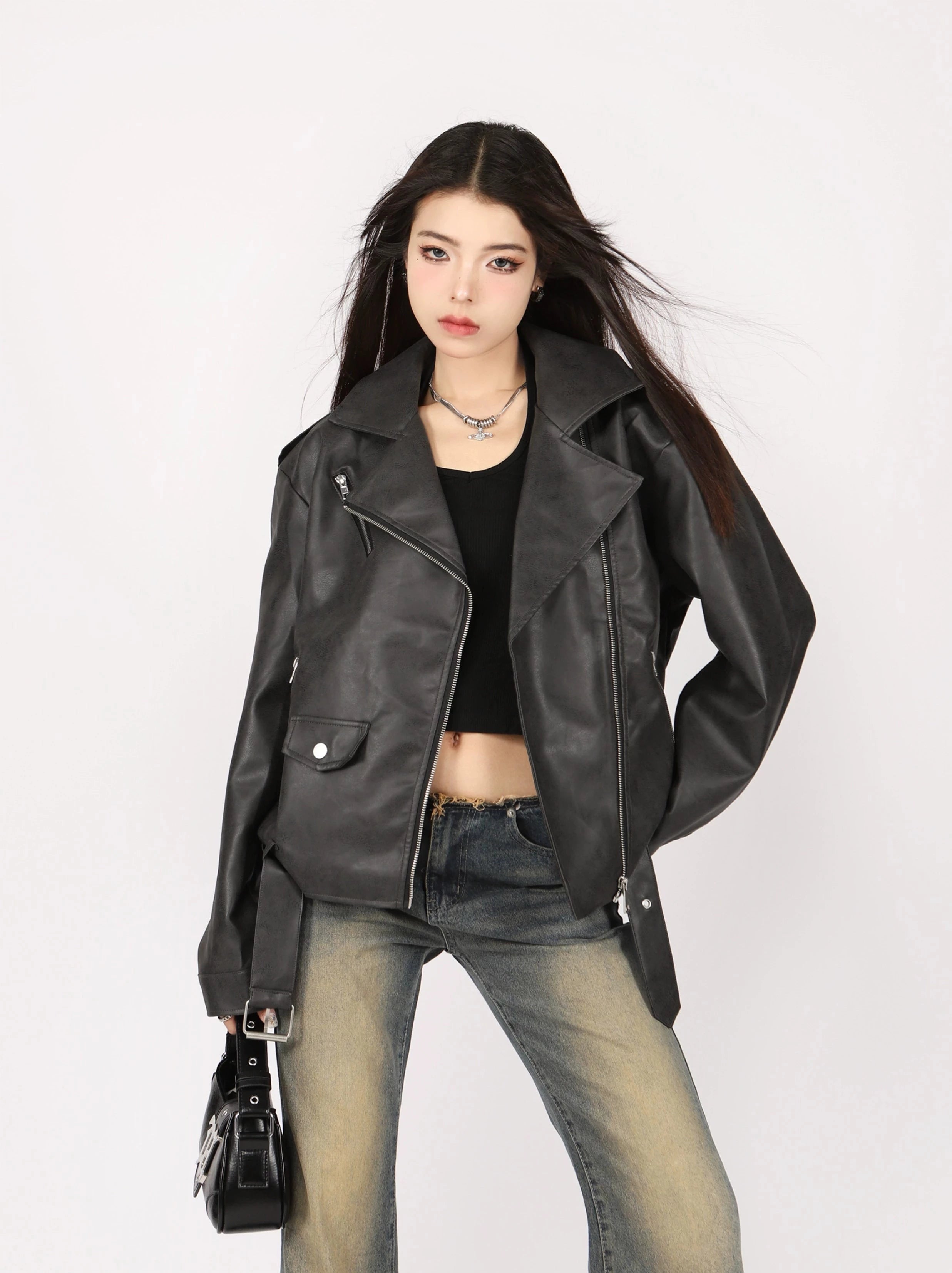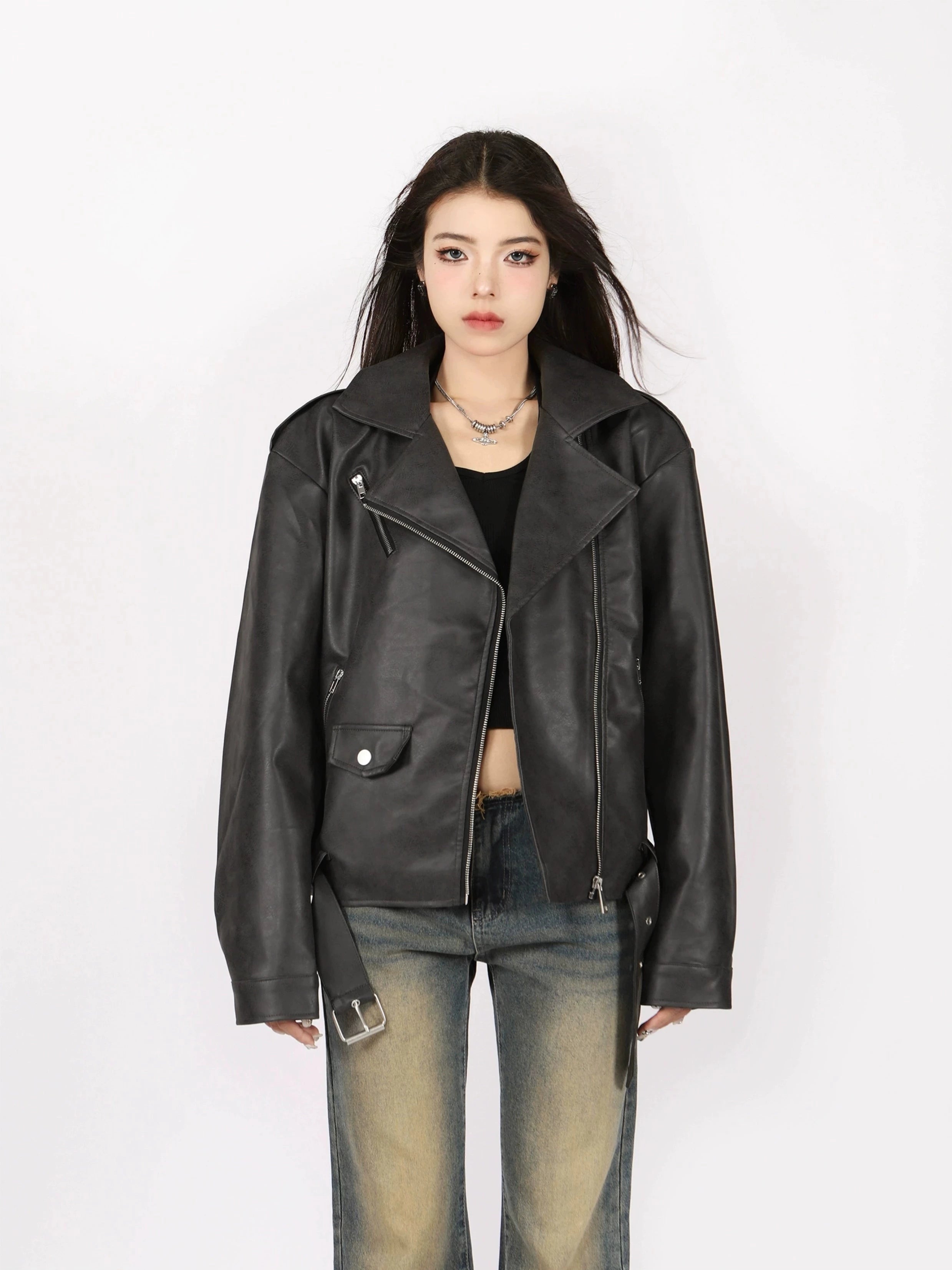 Read full Return PolicyA sleek and stylish addition to any wardrobe, this mid-crop, faux leather biker jacket features a lapel design and black leather for a classic, American retro motorcycle look. Offering superior warmth and comfort in cool weather, this PU short jacket is sure to become one of your go-to pieces for fall!