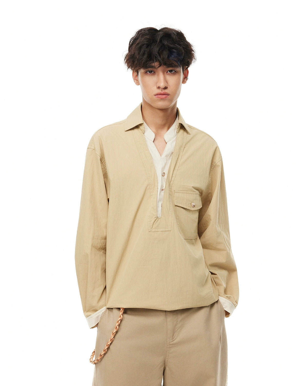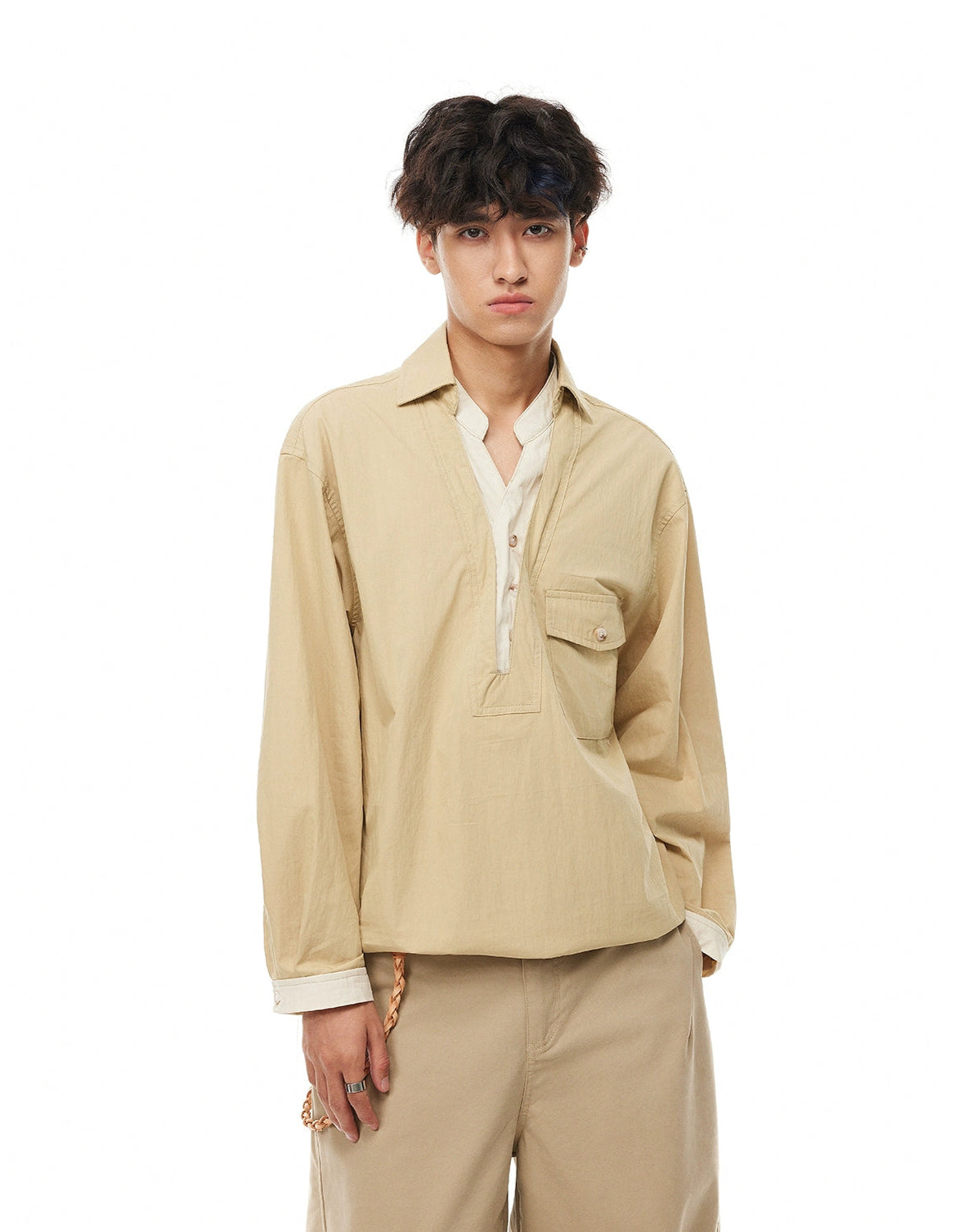 Read full Return PolicyThe Mock Layered Popover Shirt with Button Neck gives off an effortless layered look without the bulk, making it a sharp and functional option for everyday wear.