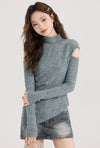 Mock Neck Ribbed Hem Asymmetric Cold Shoulder Top
