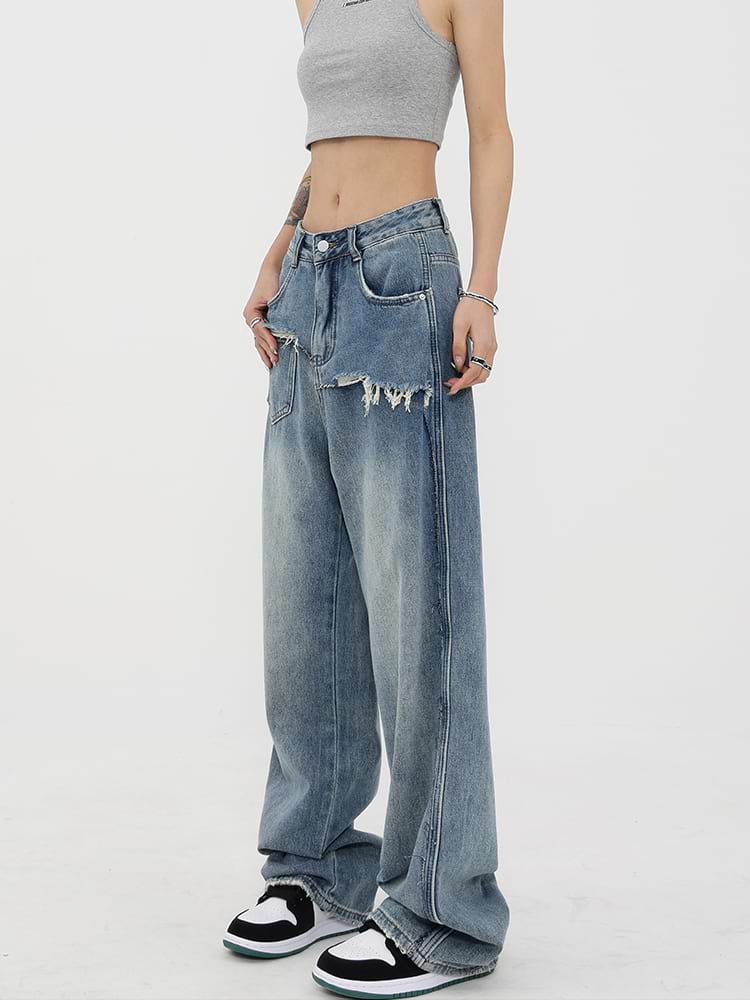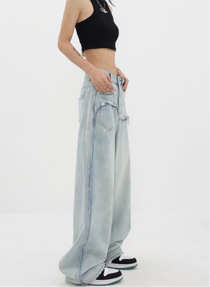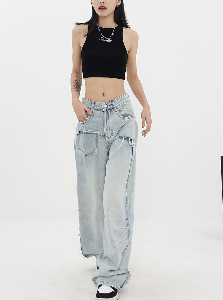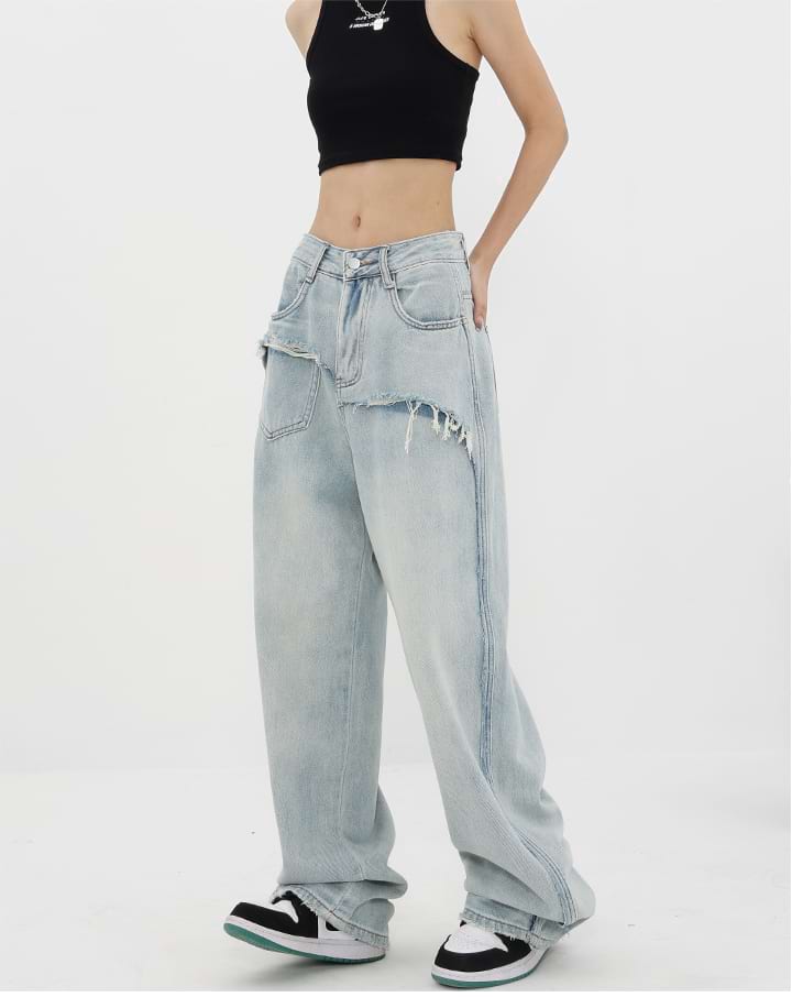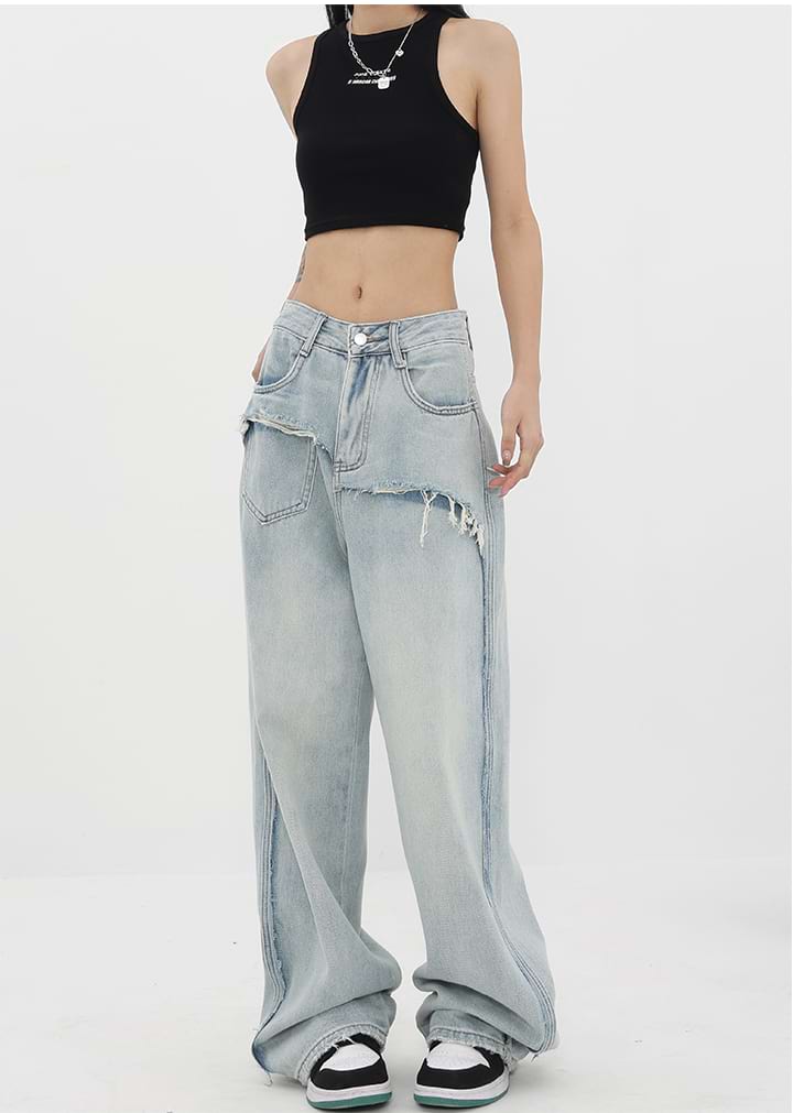 Read full Return PolicyShop nightcity for the perfect distressed pair of jeans. Our Mock Two-Piece Faded Distressed Jeans were made for the modern-day fashionista. Featuring a mid-rise waist and wide leg, these jeans are the perfect companion for any casual summer look. Dress them up with heels and a chic blouse, or down with sneakers and a crop top. Get the perfect blend of fashion and comfort with these jeans — add them to your wardrobe today!