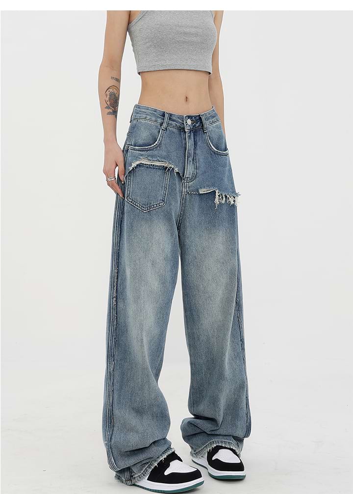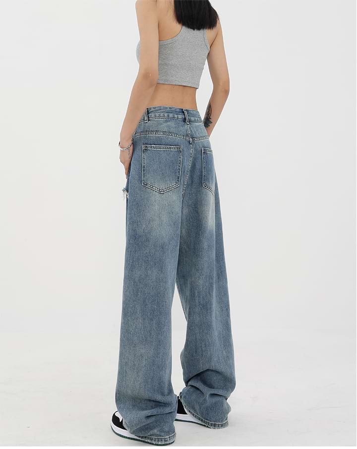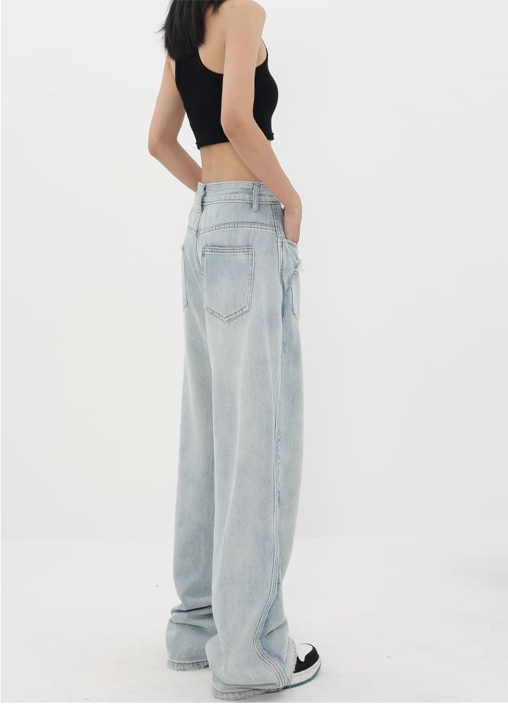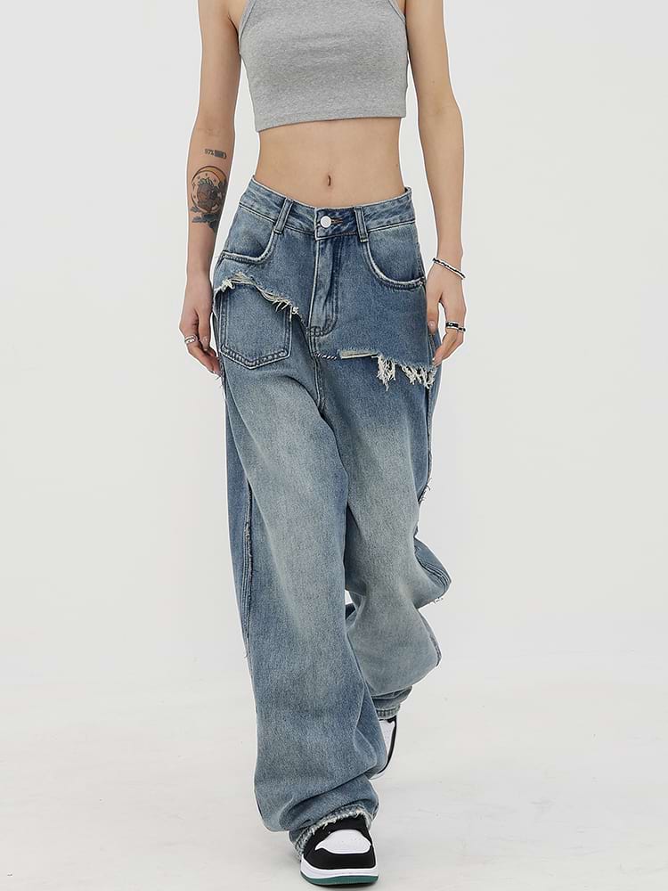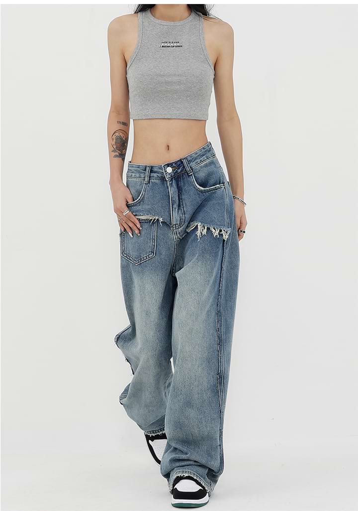 Read full Return PolicyShop nightcity for the perfect distressed pair of jeans. Our Mock Two-Piece Faded Distressed Jeans were made for the modern-day fashionista. Featuring a mid-rise waist and wide leg, these jeans are the perfect companion for any casual summer look. Dress them up with heels and a chic blouse, or down with sneakers and a crop top. Get the perfect blend of fashion and comfort with these jeans — add them to your wardrobe today!