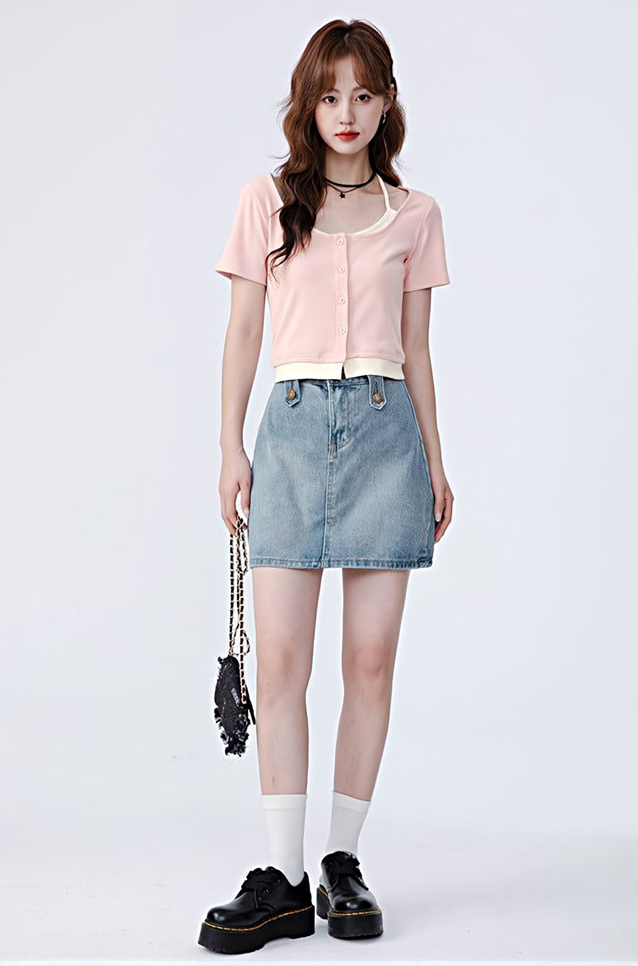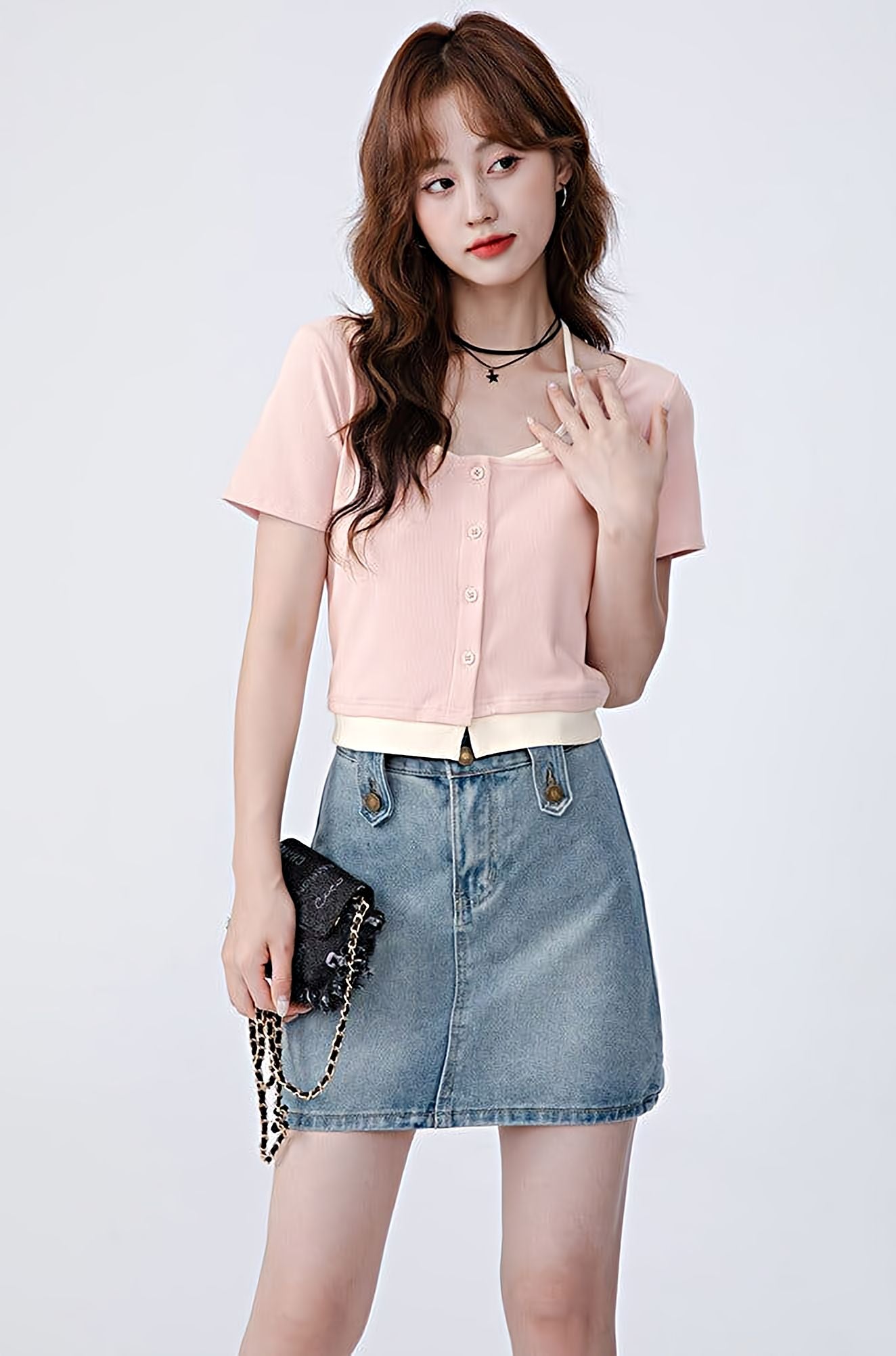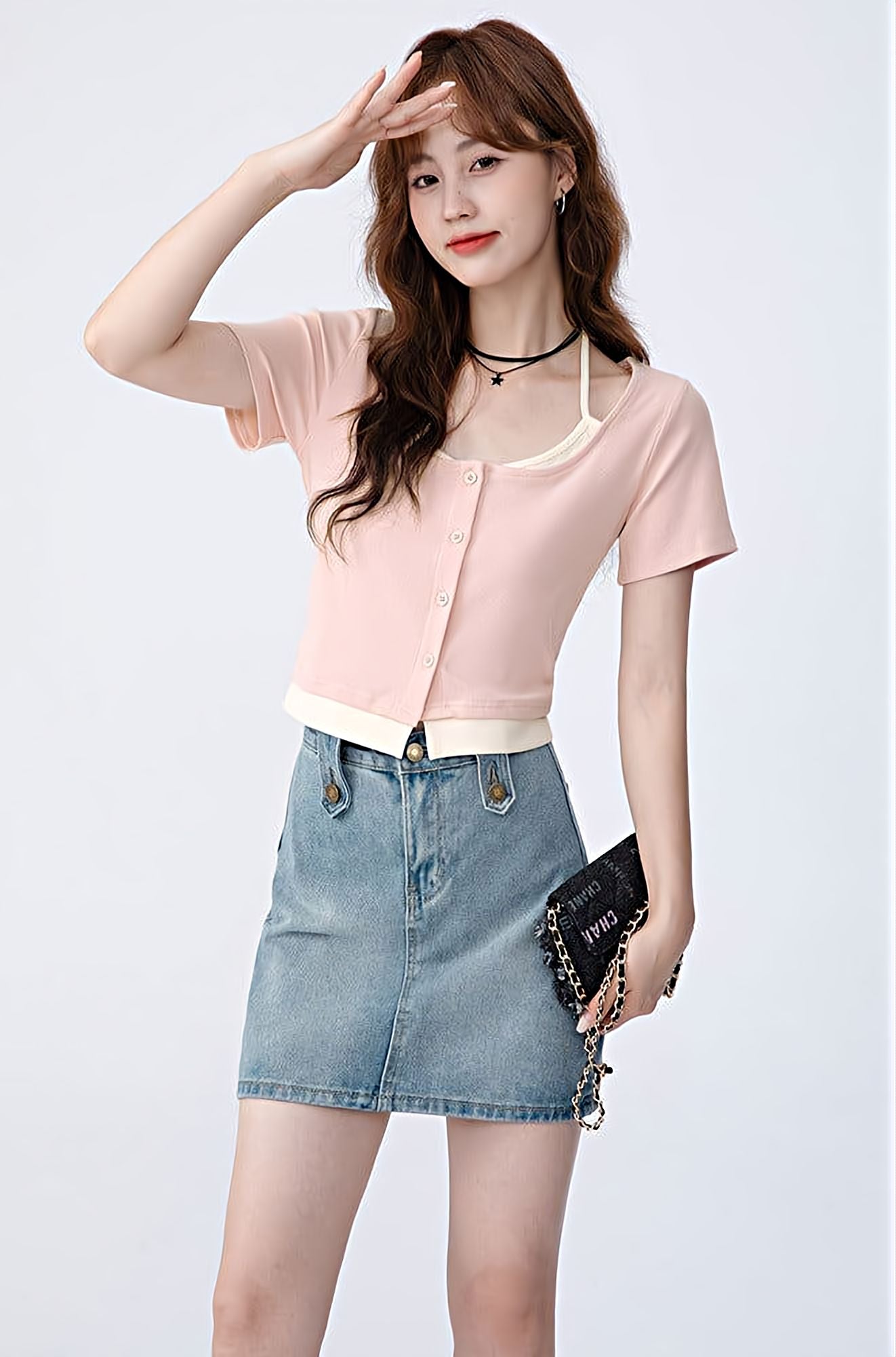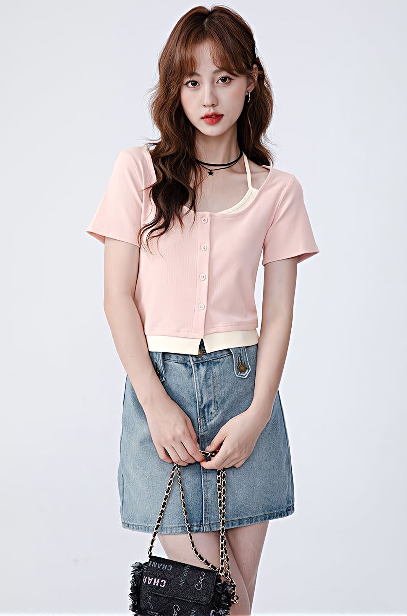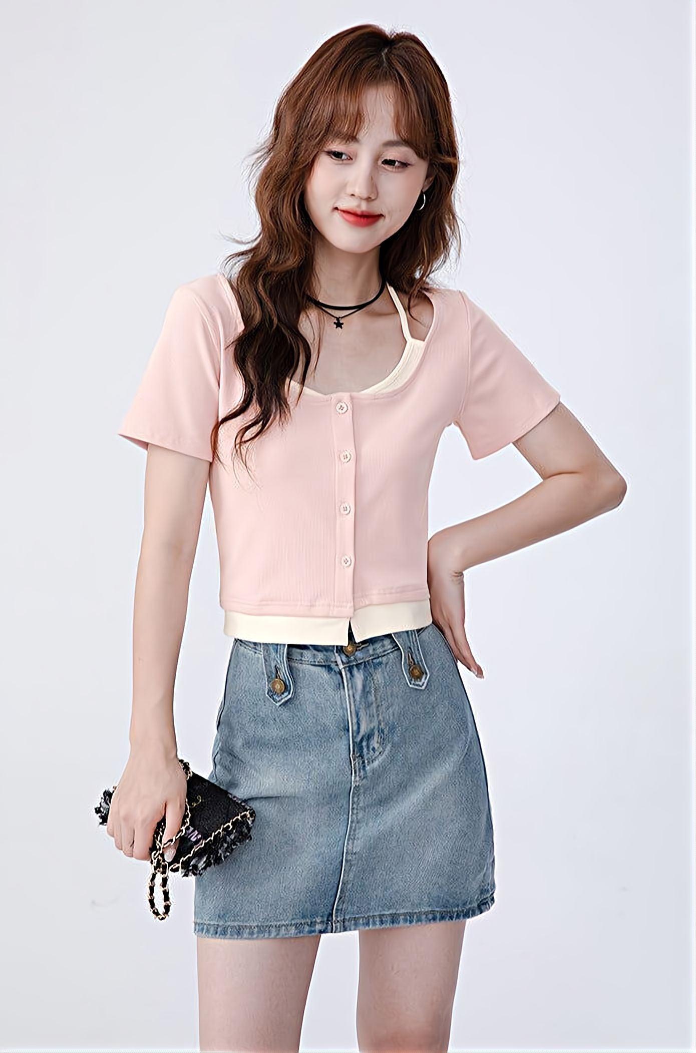 Read full Return PolicyBe prepared for any occasion in this Mock Two-Piece Short Sleeve Top. Its versatile design pairs comfortably with skirts, shorts, and any type of pant, allowing you to build an effortlessly casual look. It also features a unique halter string, making it stand out in any ensemble.