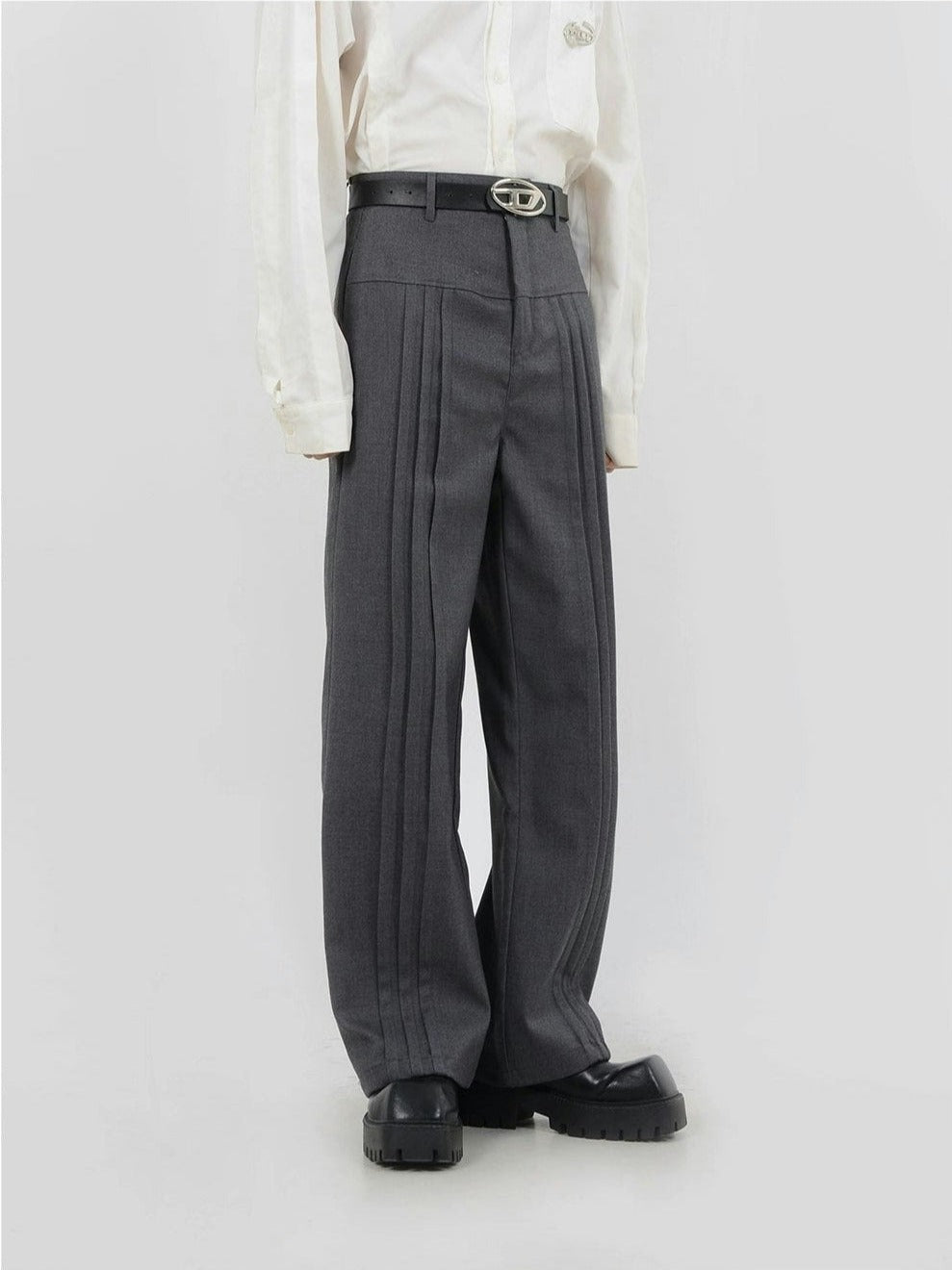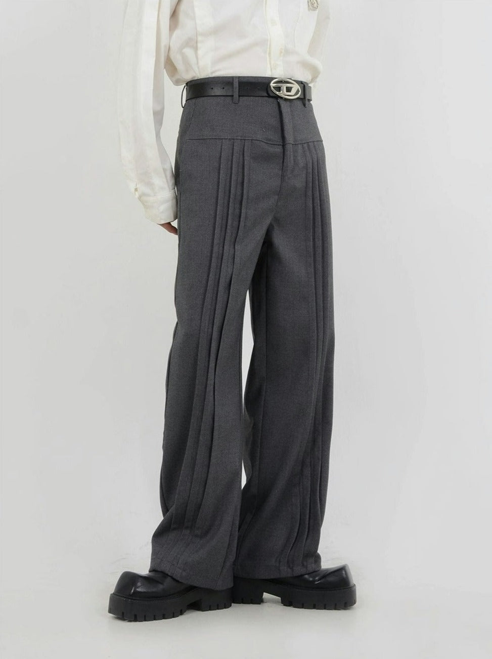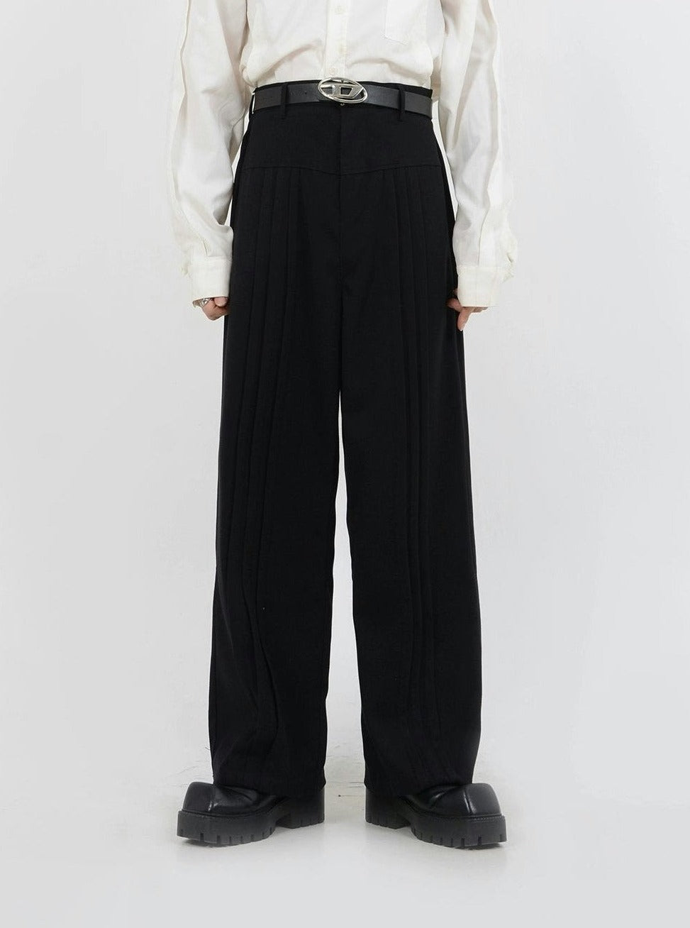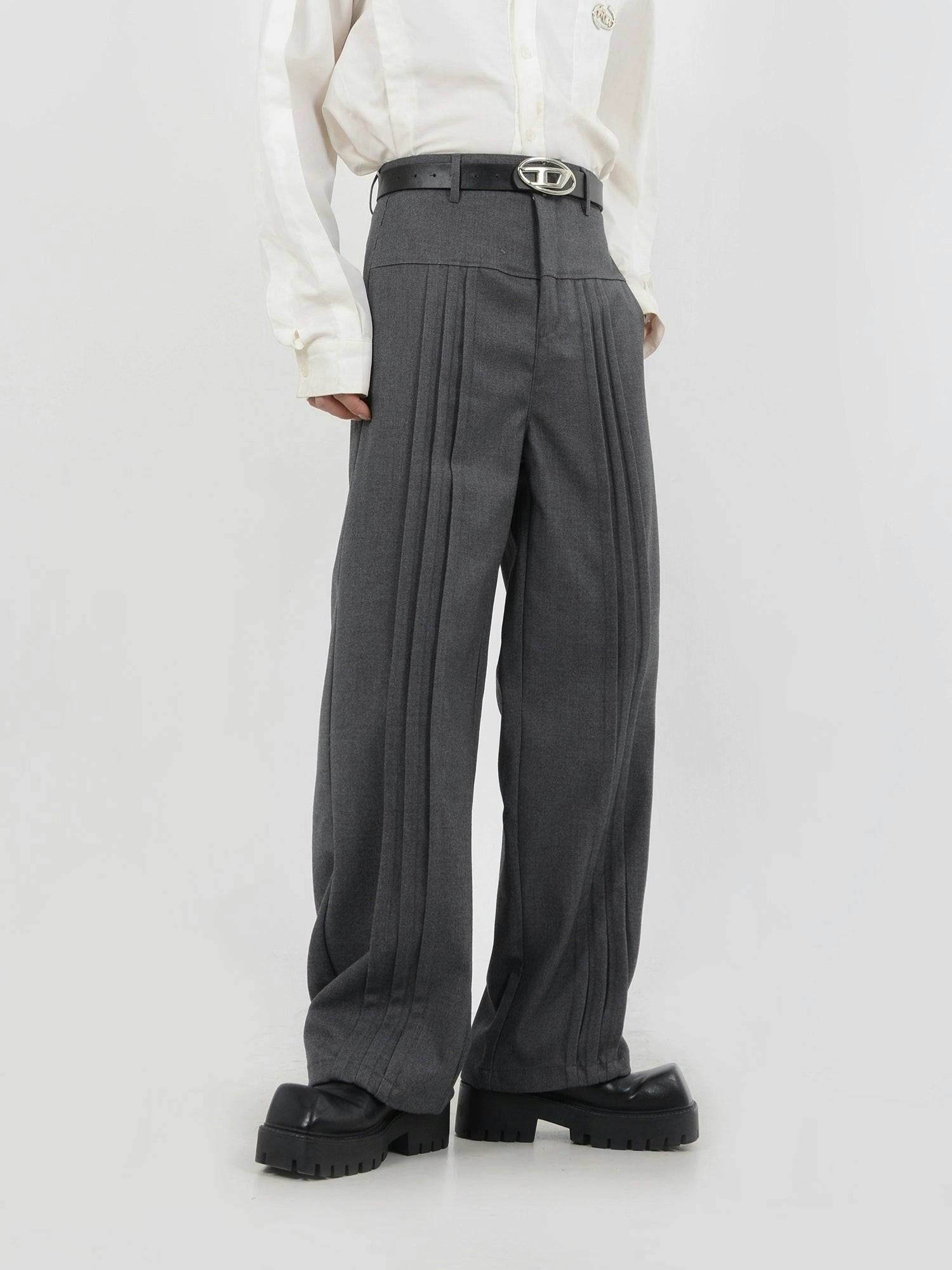 Multi-Pleated Wide-Leg Trousers with Waist Detail