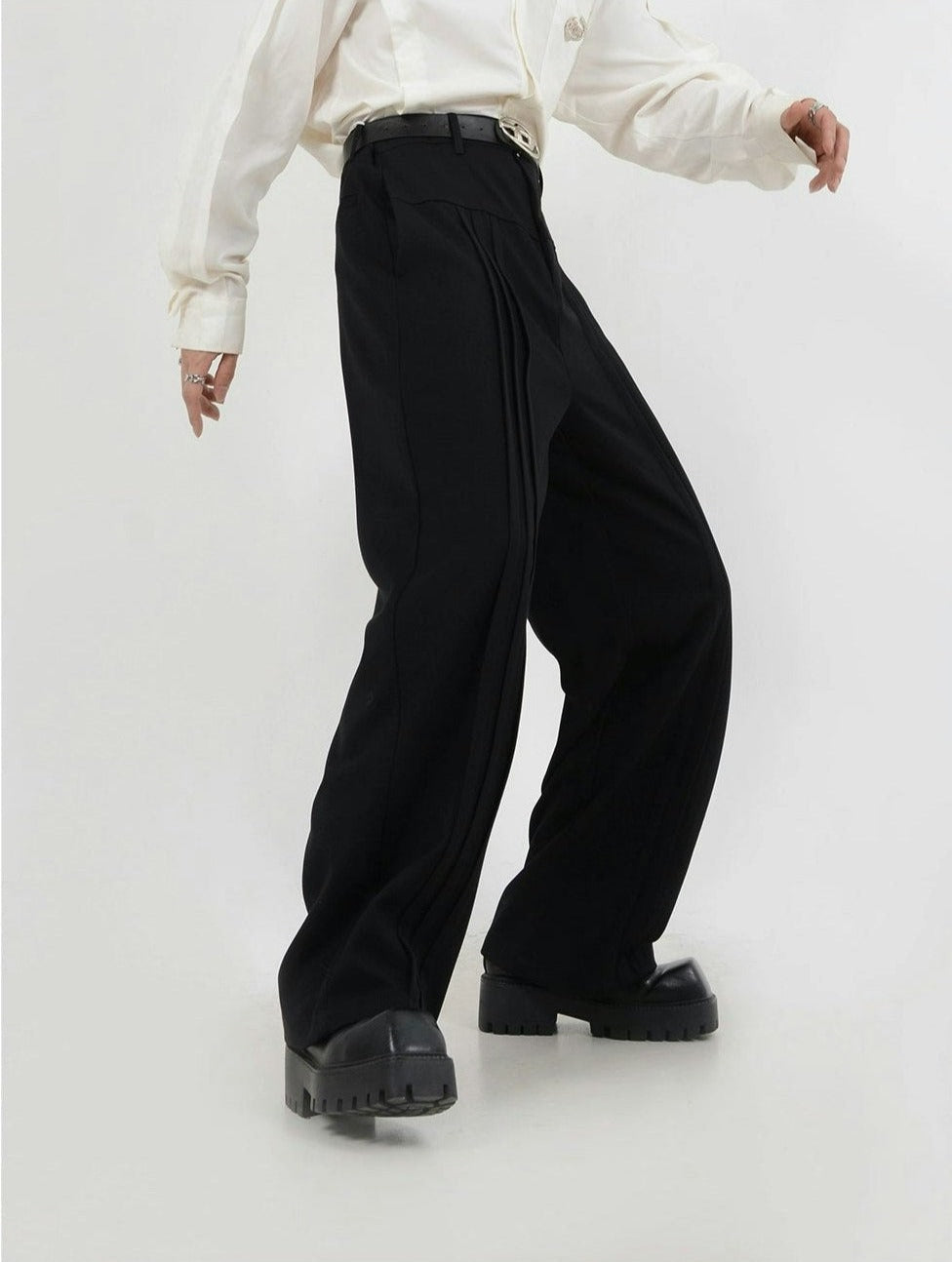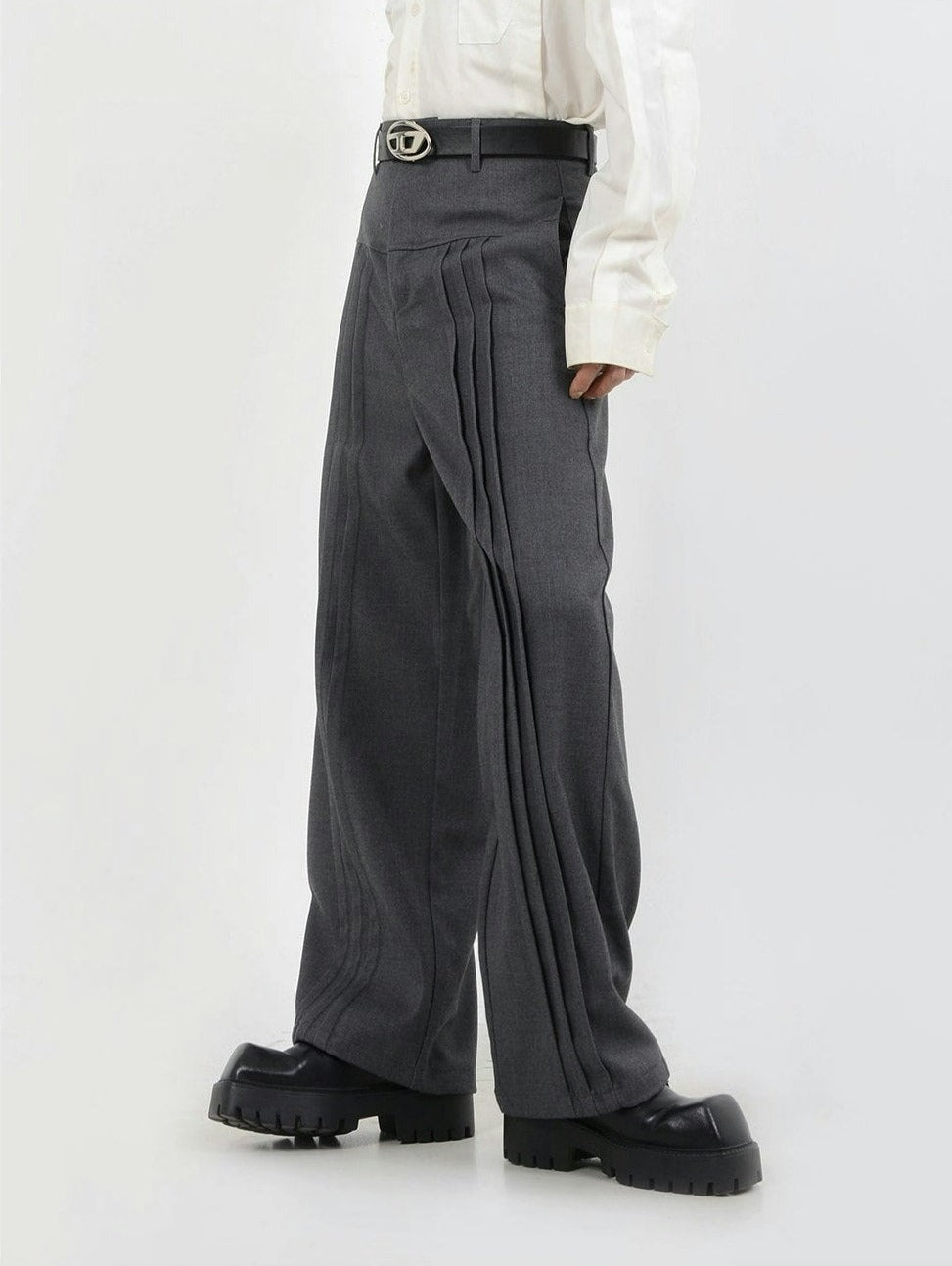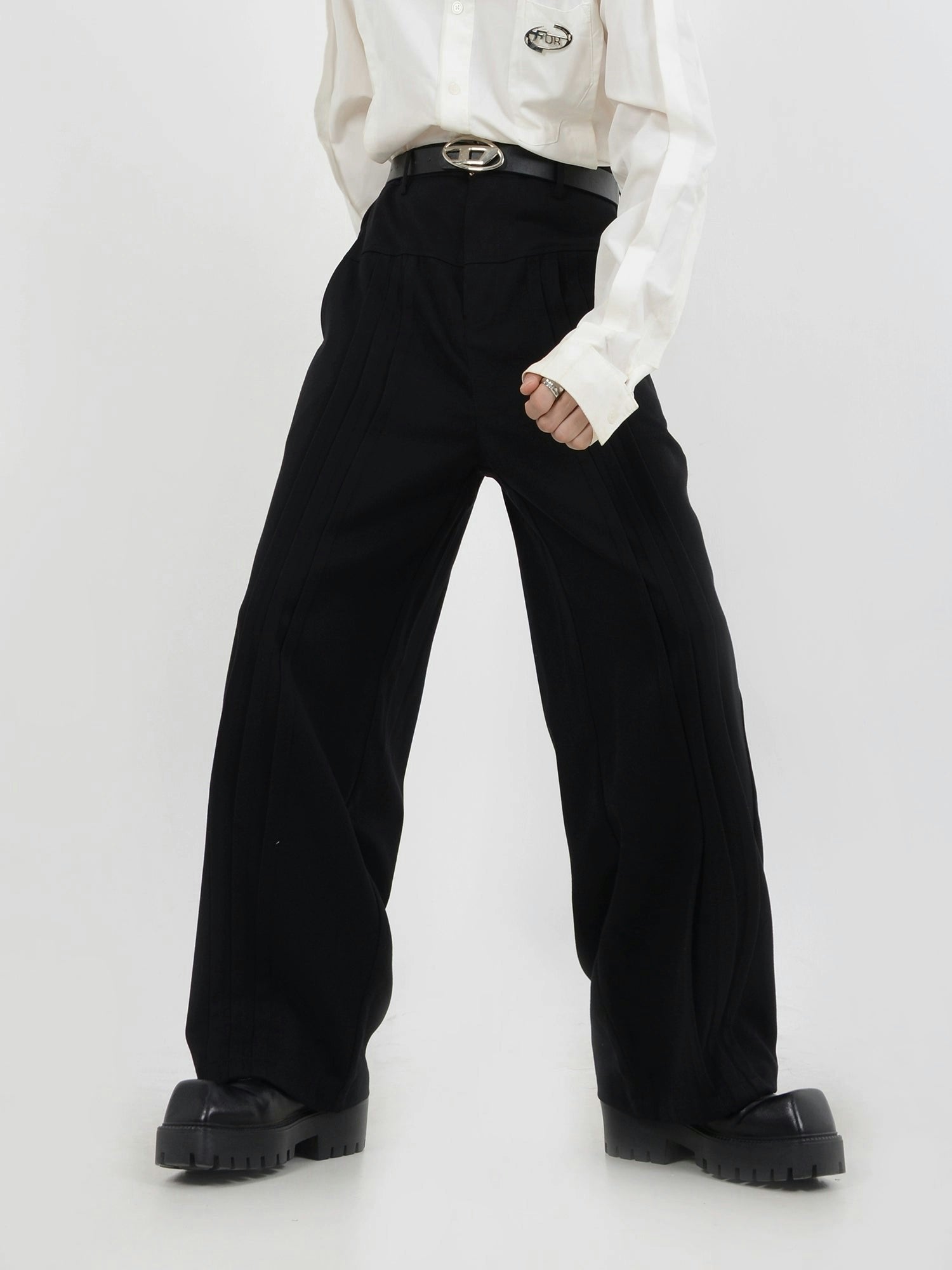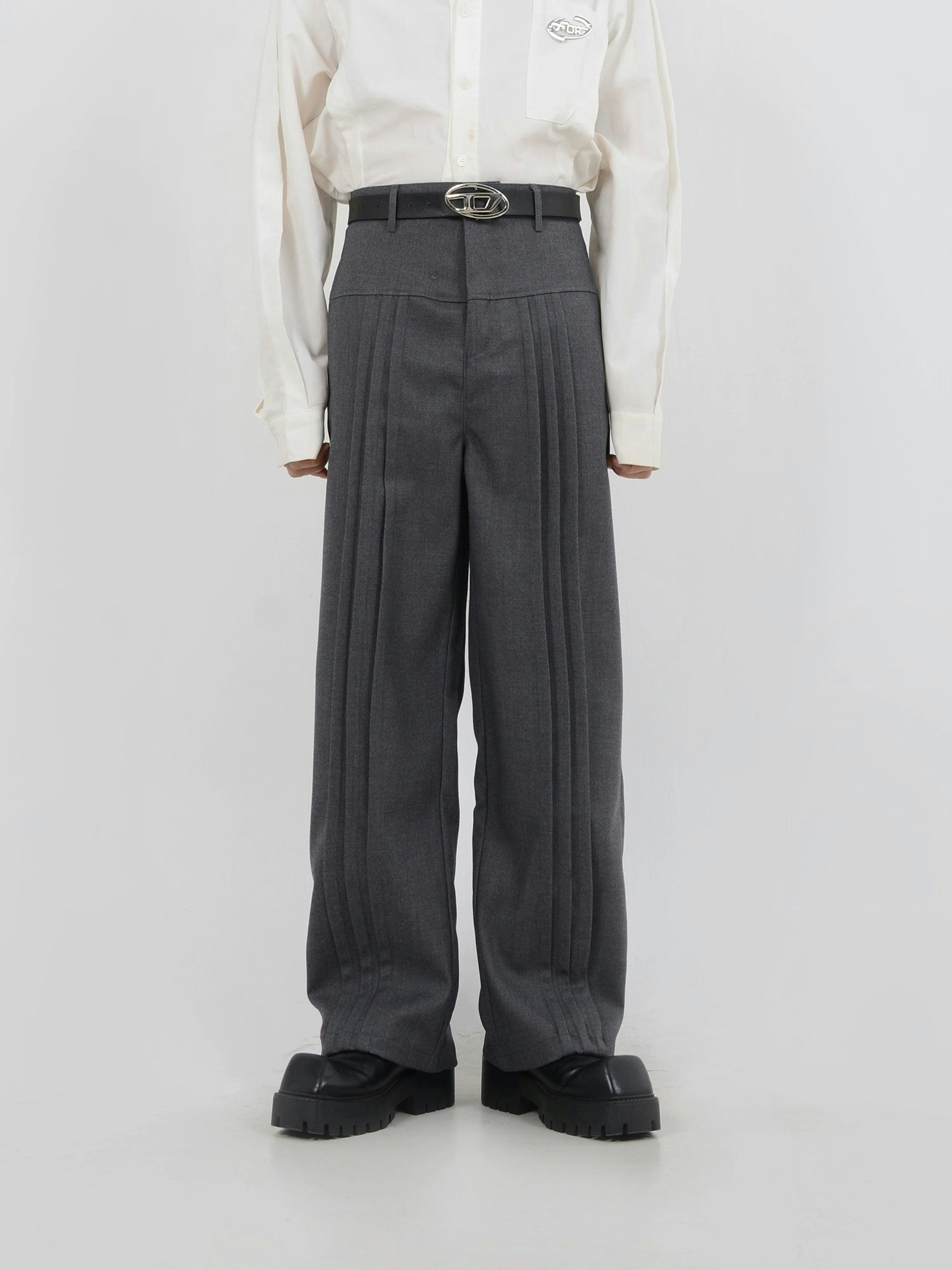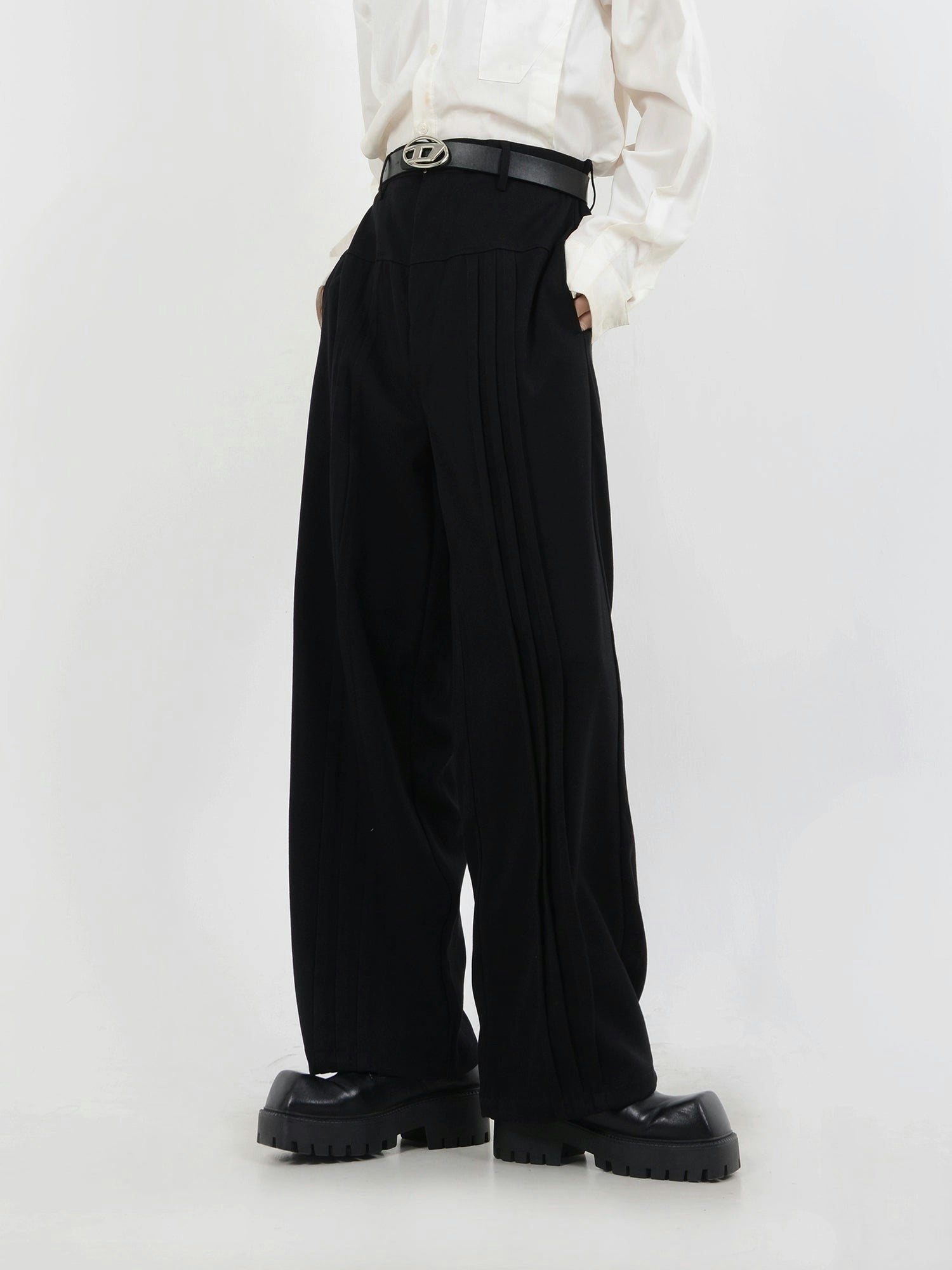 Multi-Pleated Wide-Leg Trousers with Waist Detail