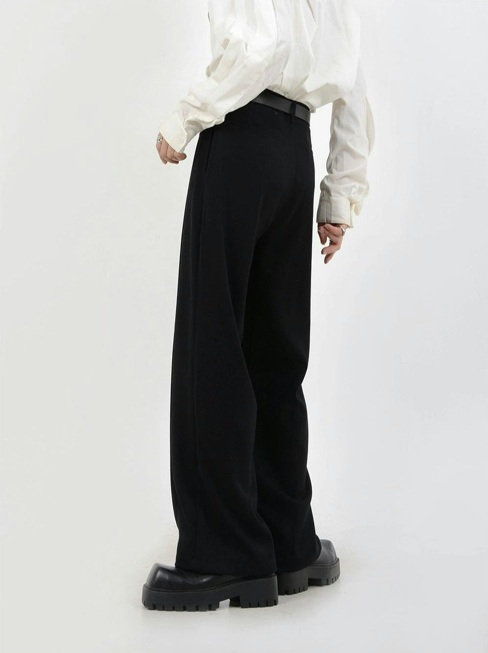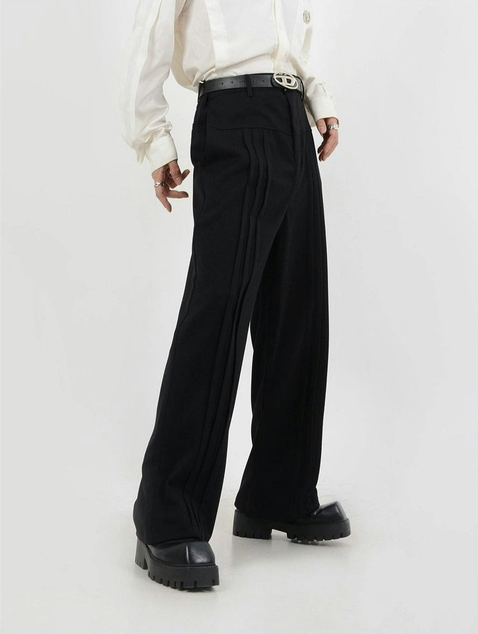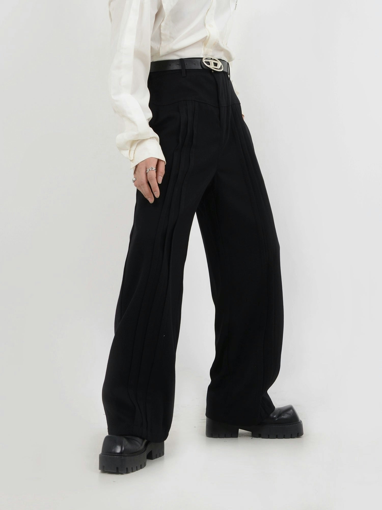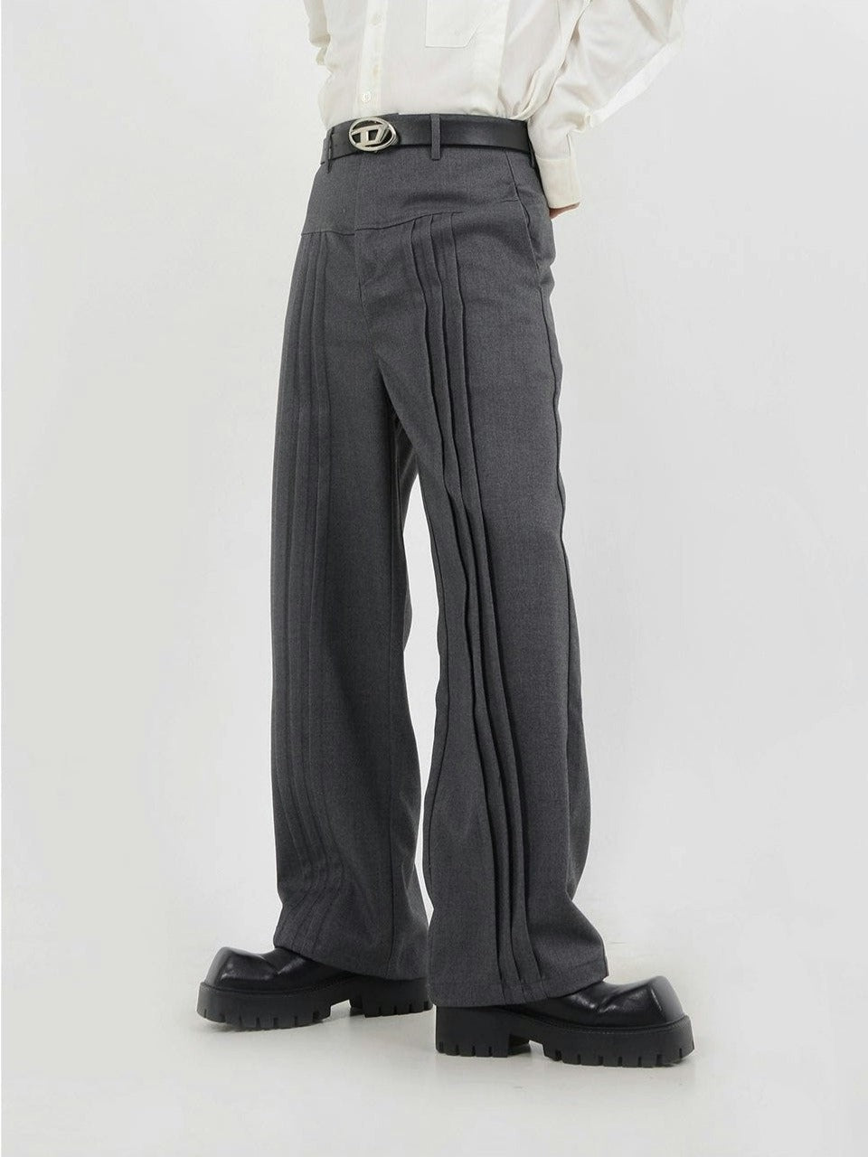 Multi-Pleated Wide-Leg Trousers with Waist Detail