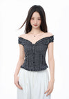 Off-Shoulder Plaid Top with Front Buttons and Ruffle Edges