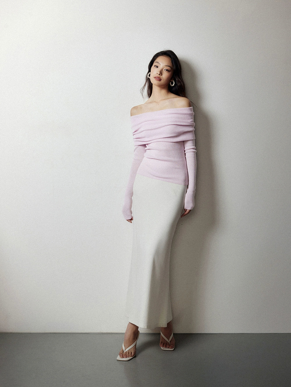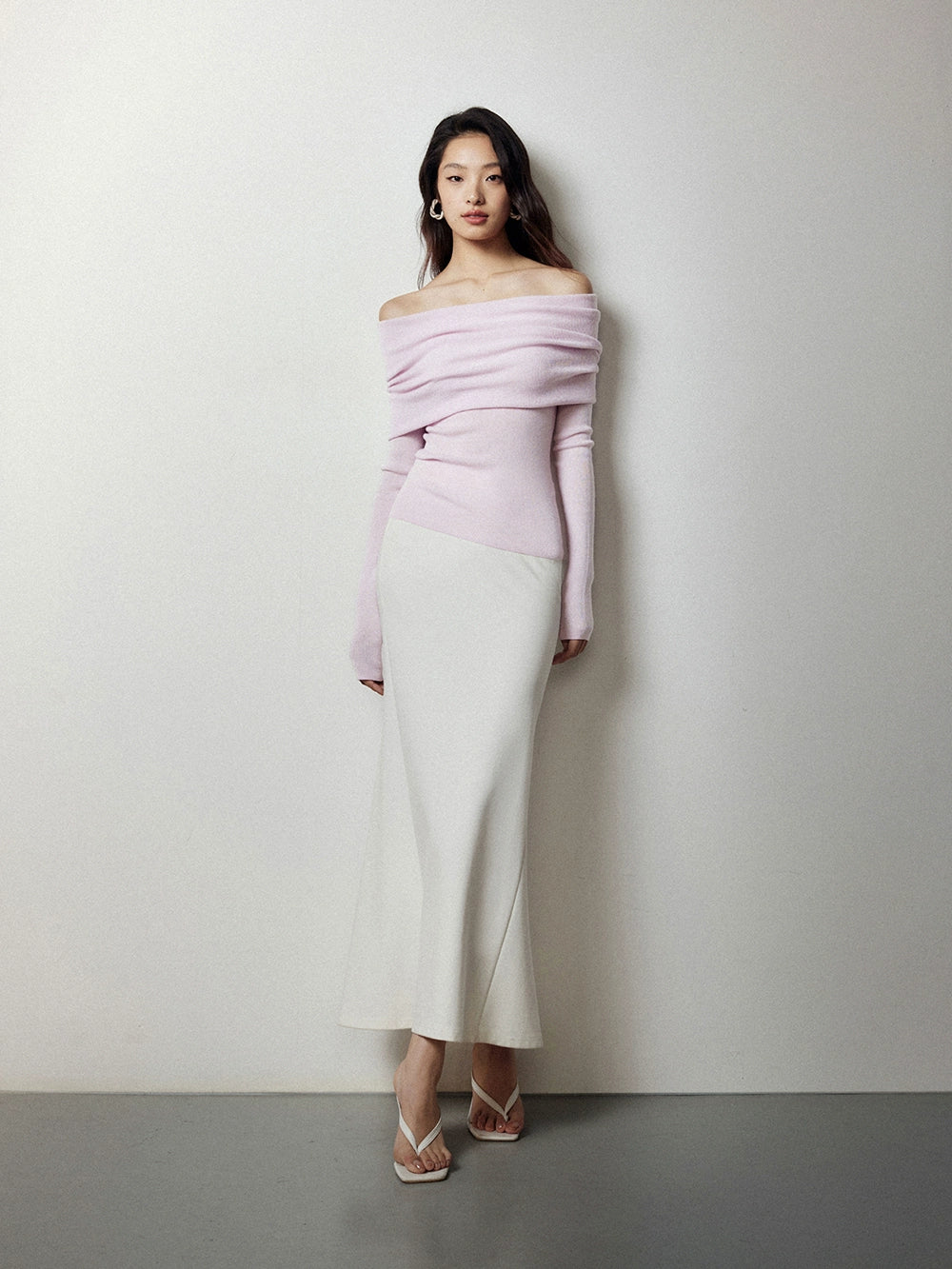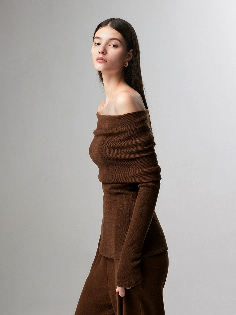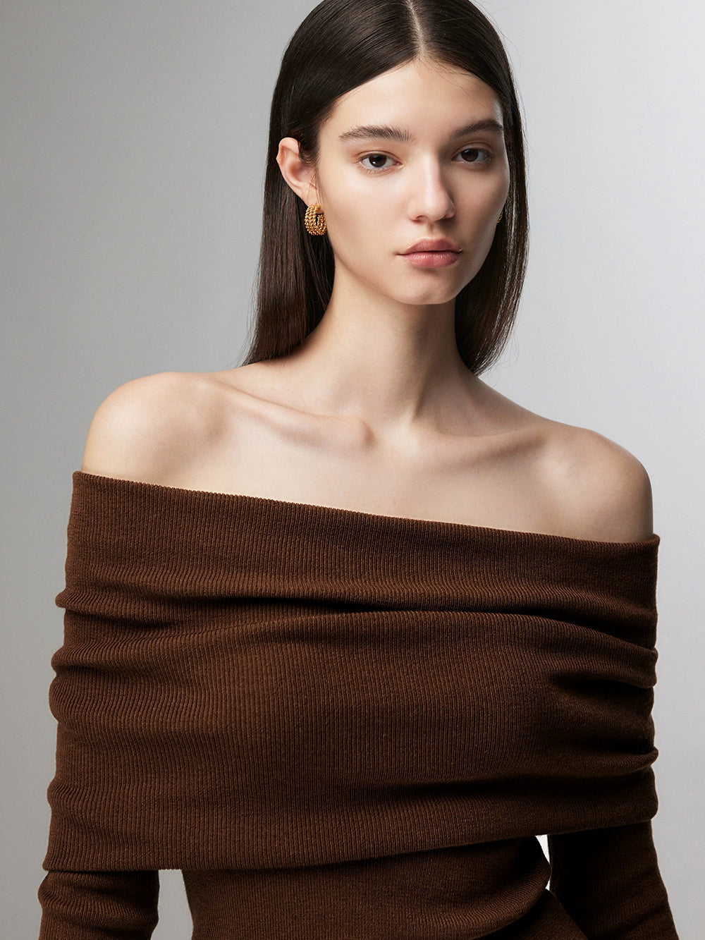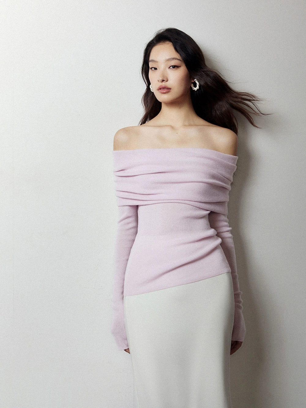 Off-Shoulder Ribbed Knit Layered Long Sleeve Sweater