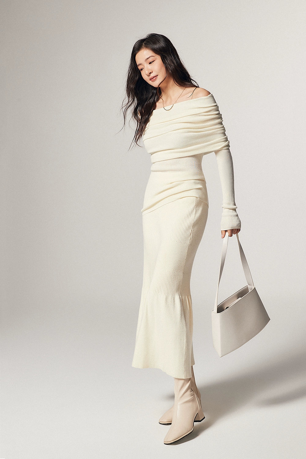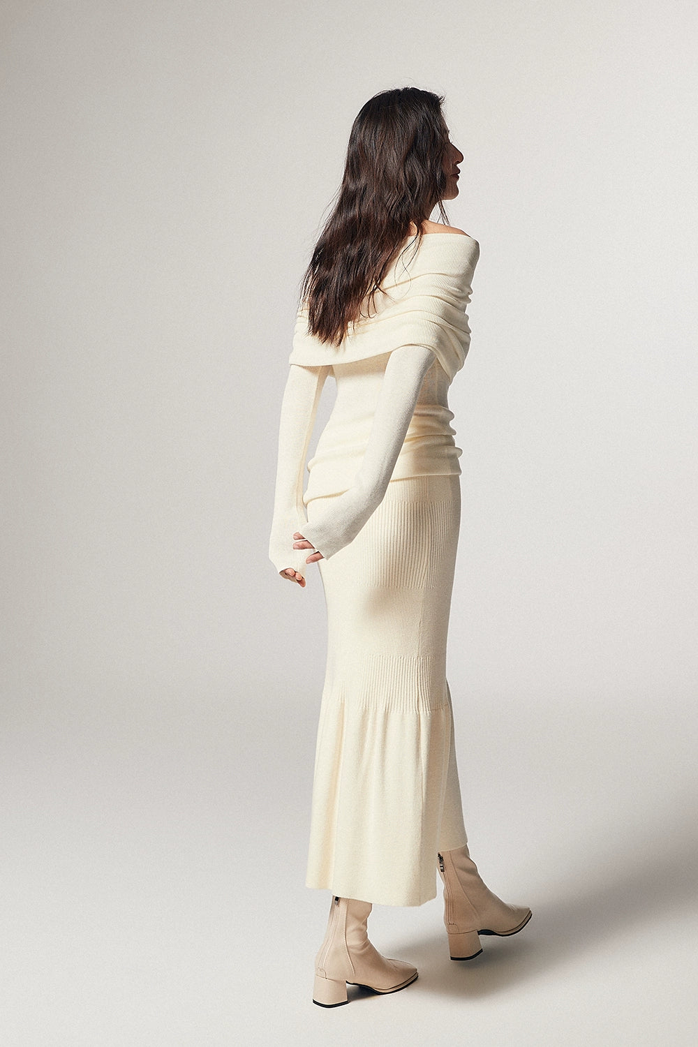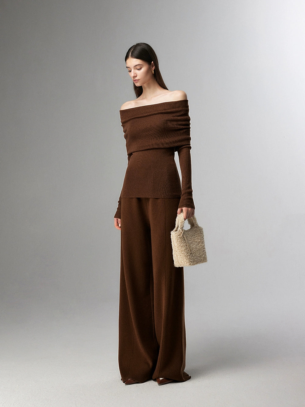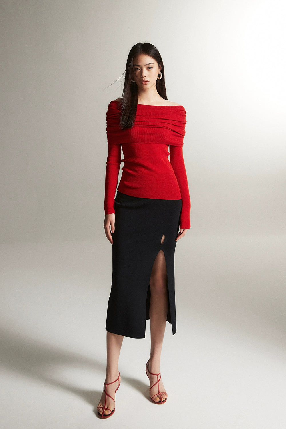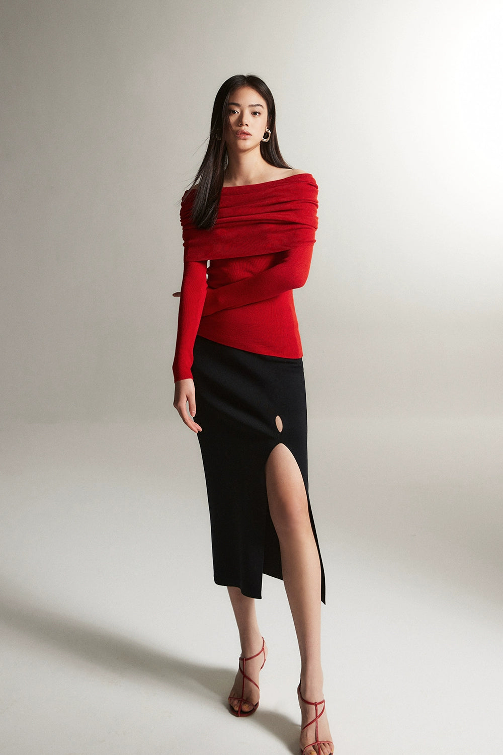 Off-Shoulder Ribbed Knit Layered Long Sleeve Sweater