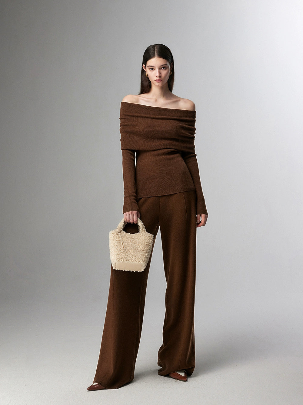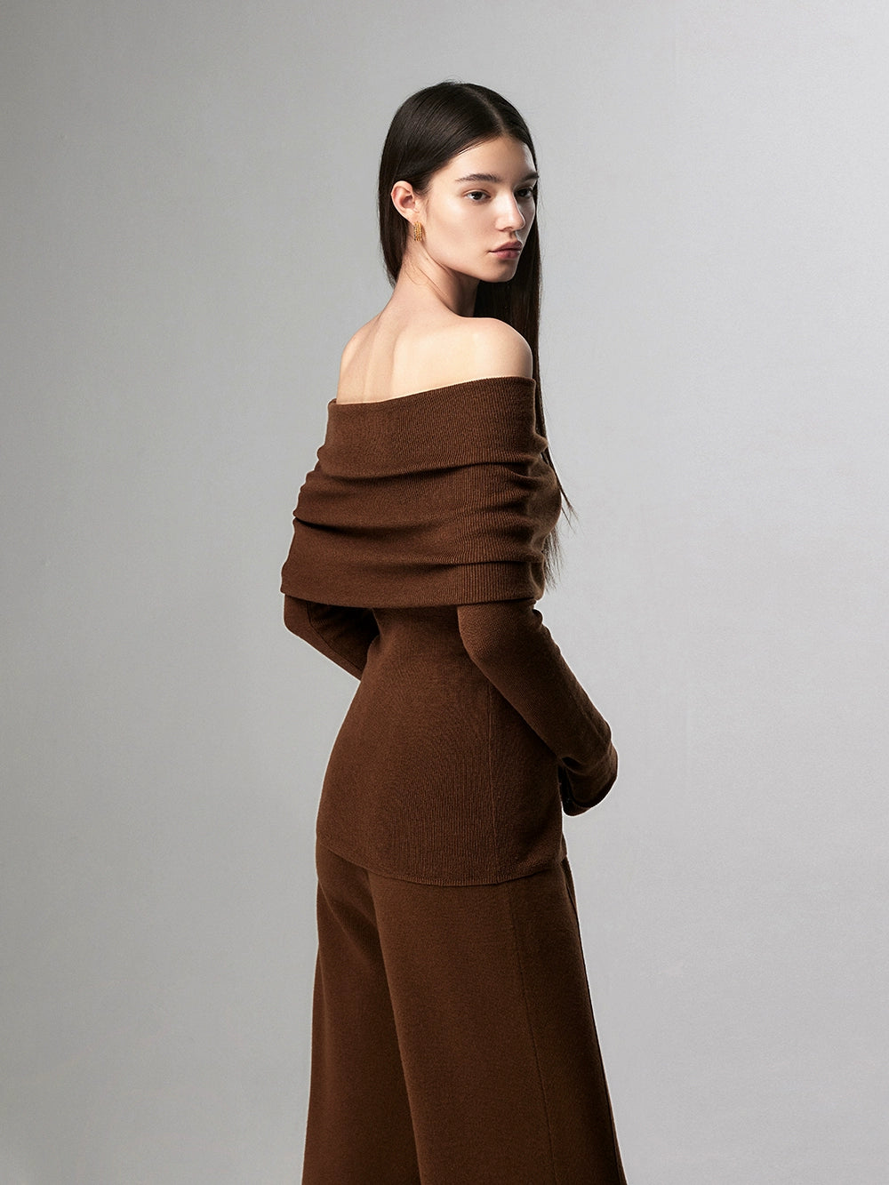 Crafted from a blend of acrylic, polyester, nylon, and a touch of wool, this sweater offers both comfort and style. The off-shoulder design with a free lapel allows for a relaxed yet chic look, while the intricate knit pattern adds texture and a subtle hint of luxury. Its snug fit accentuates your silhouette without restricting movement, making it a statement piece that's both fashionable and functional.