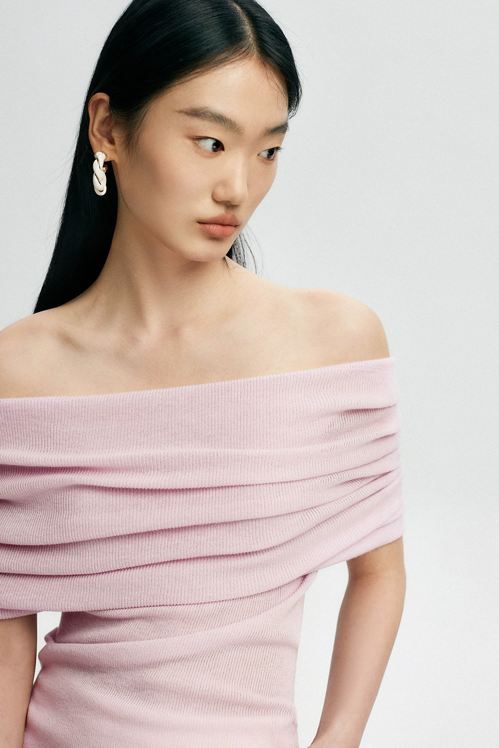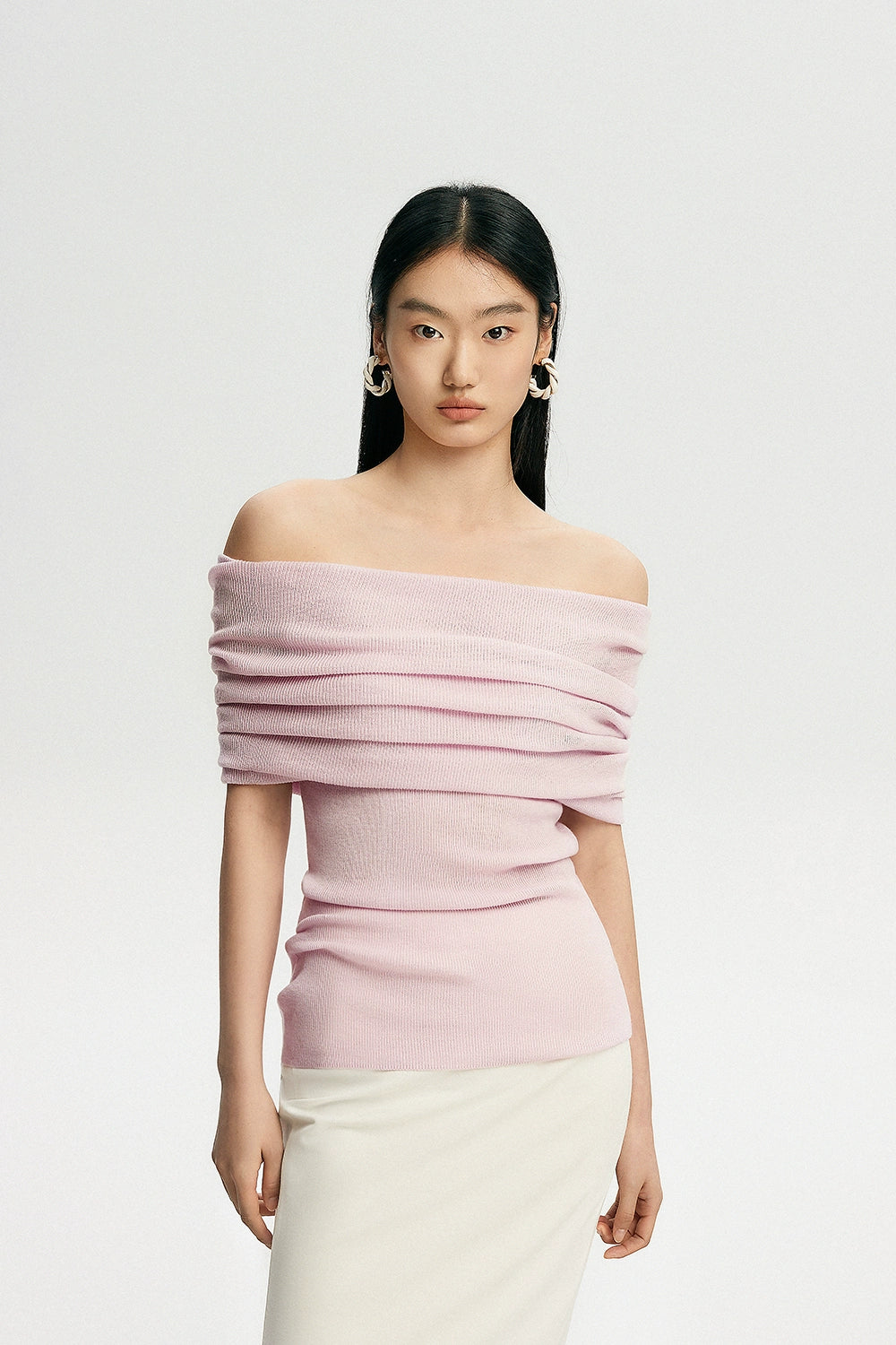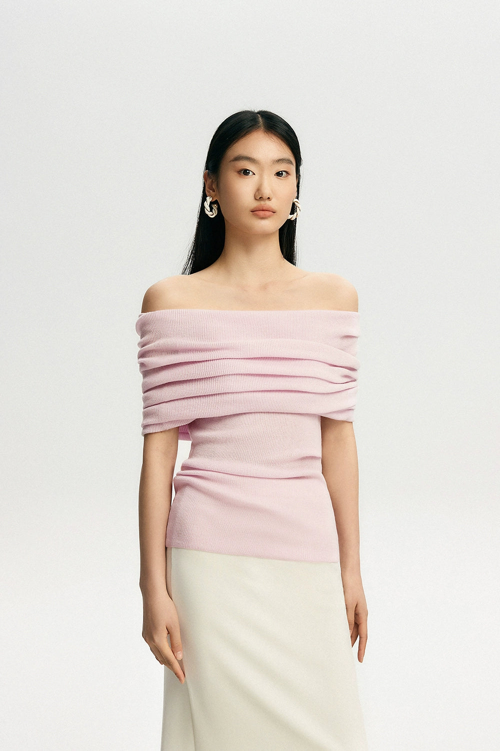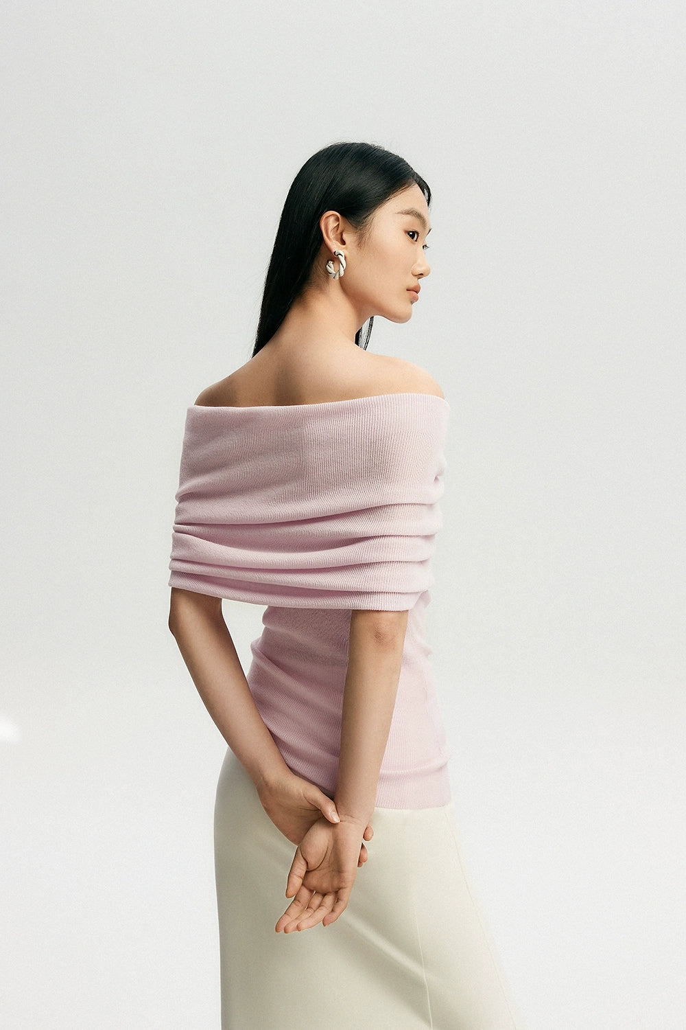 Crafted with a blend of polyester, acrylic, nylon, and a touch of cotton wool, this top features a ribbed knit pattern that accentuates your silhouette softly. Its off-shoulder design can be worn as a subtle hint of allure or adjusted to create a stunning neckline, making it a canvas for self-expression and style.