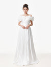 Crafted from a smooth, satin-inspired fabric with a gentle sheen, its off-the-shoulder shape and floral appliqué detail add a refined texture without overdoing it. Thoughtful pleating through the bodice and skirt enhances the A-line fit, making it feel structured but easy to move in. Whether you're heading to a formal event, engagement dinner, or a night that deserves something elevated, this dress balances softness and strength with precision.