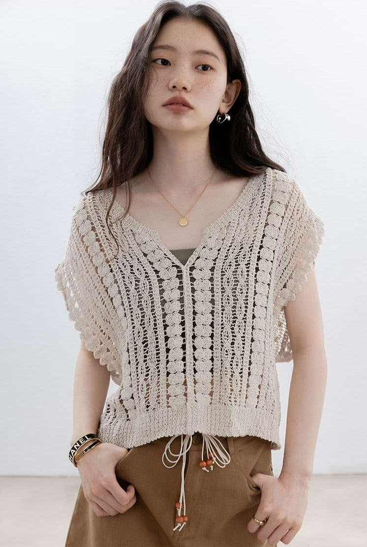 Read full Return PolicyStay cool and stylish with the Open Knit Crochet Vest. This versatile piece is perfect for hot weather, as its breathable layer keeps you comfortable. Its chic design pairs easily with skirts and shorts for a timeless look. Add this piece to your wardrobe today.