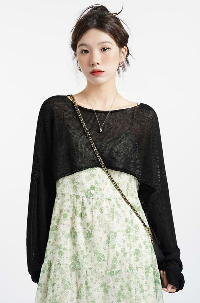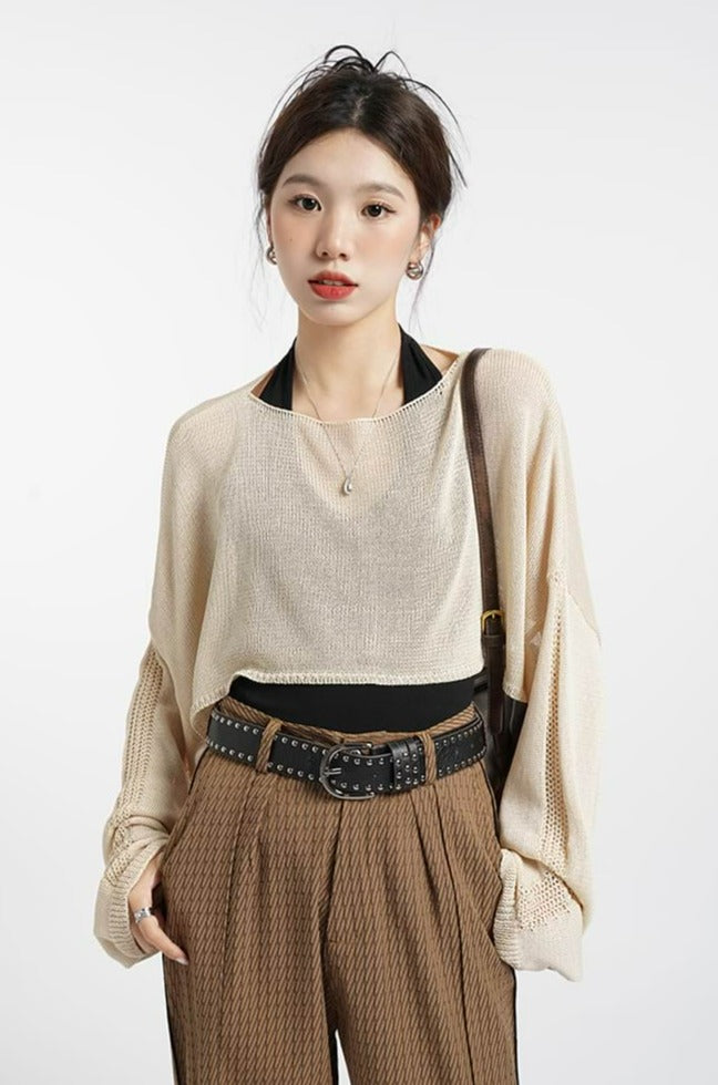 Open Knit Oversized Crop Sweater