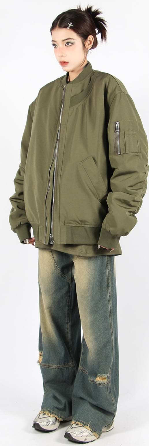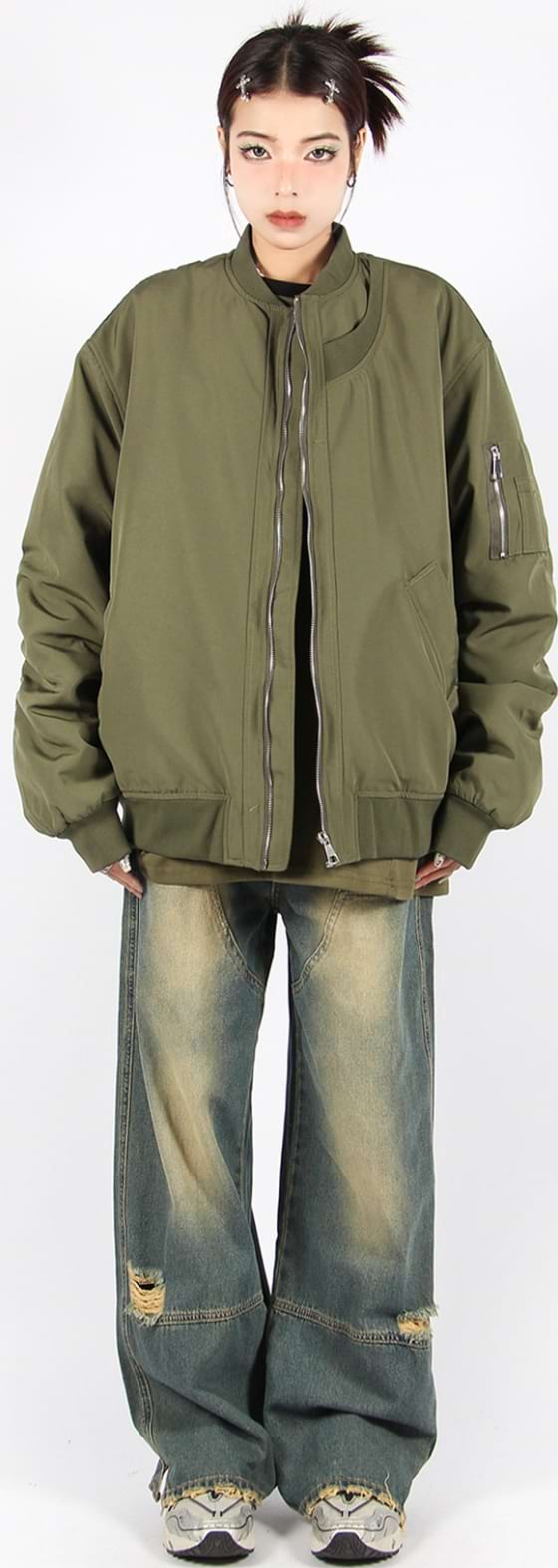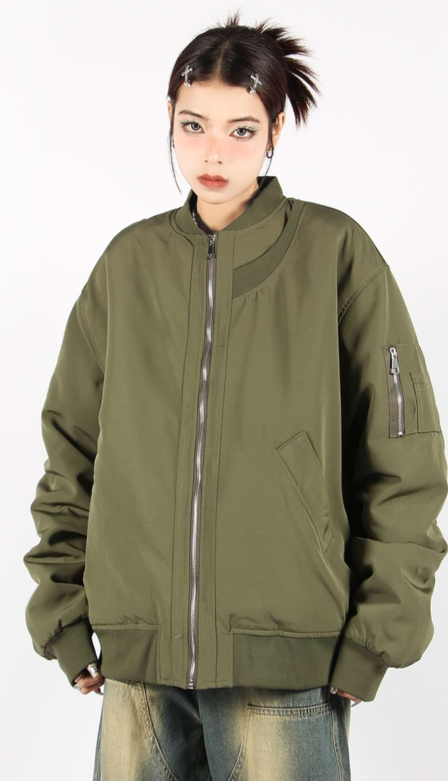 Read full Return PolicyTransform your wardrobe and keep your style game strong with this oversized bomber jacket from nightcity clothing. Whether you’re looking for a layer to show off your favorite outfit or just an extra something for a casual day, this jacket will keep you looking and feeling confident. With an oversized fit and comfortable sleeve pocket, you can keep the zipper on or not. Show your style and stay comfortable with this versatile and timeless piece from nightcity clothing.