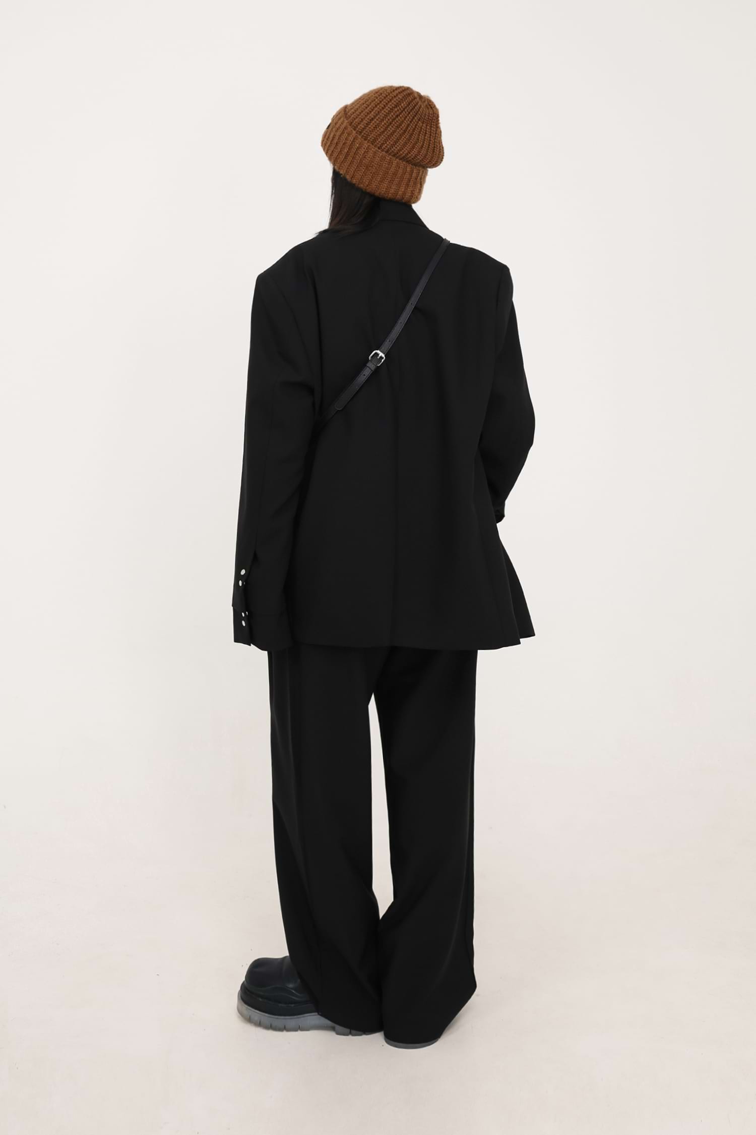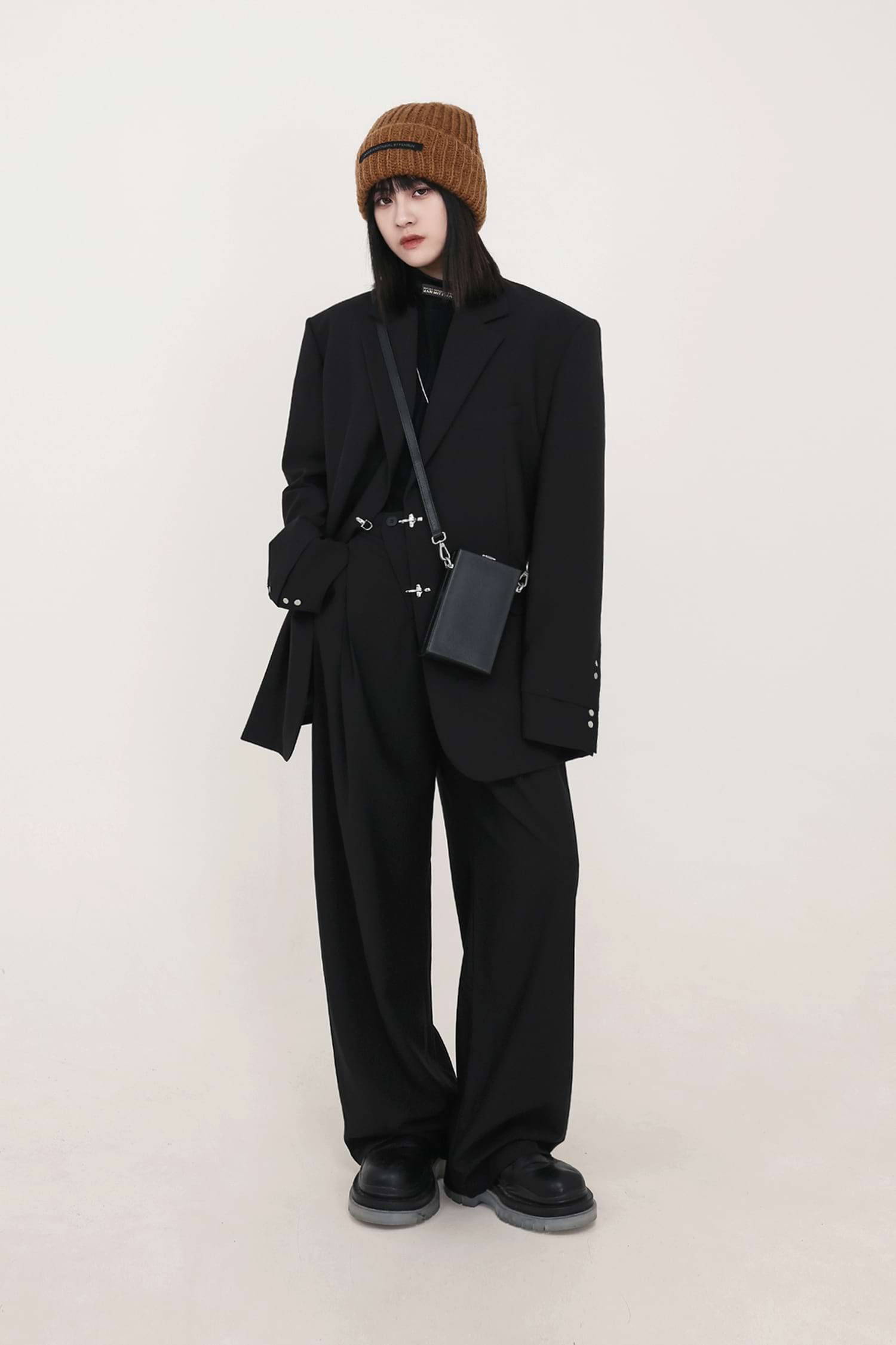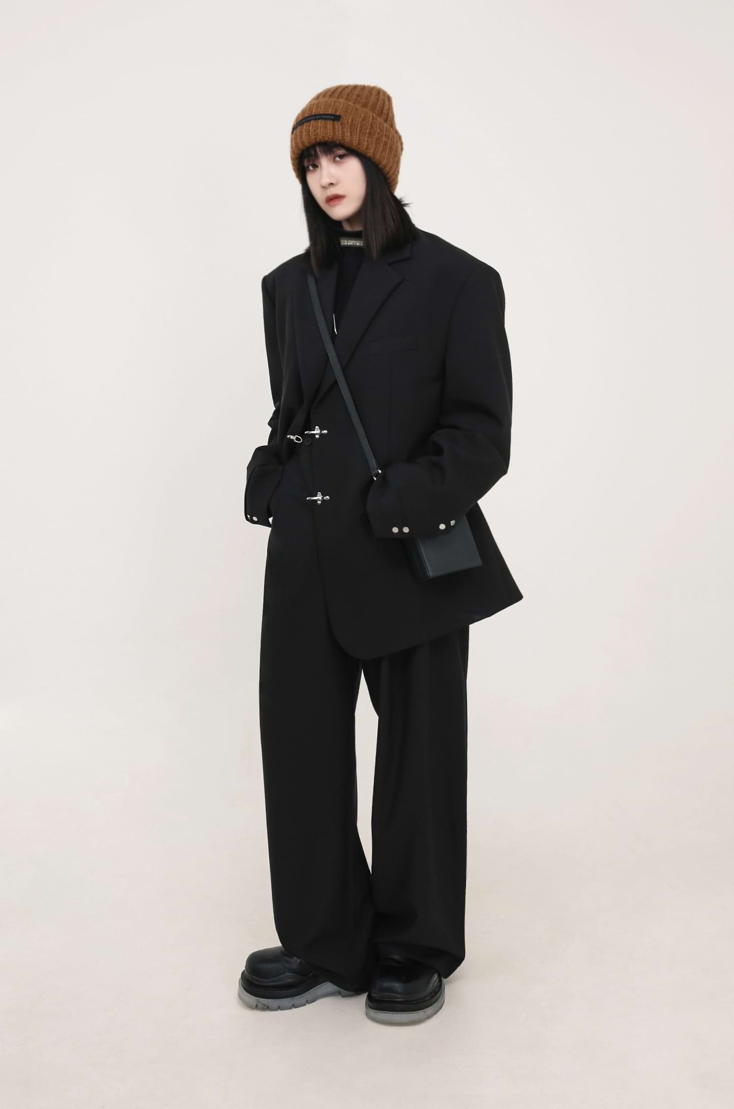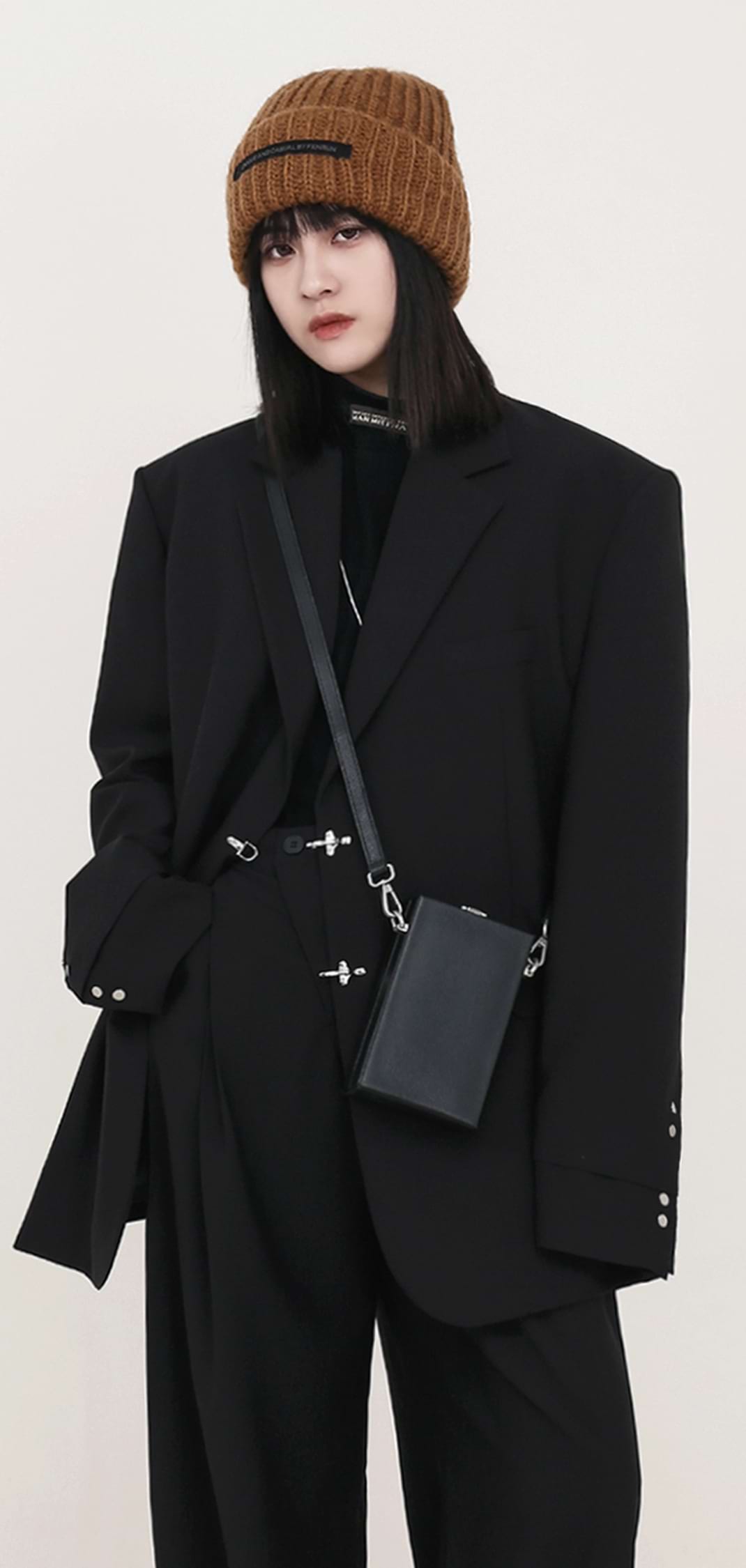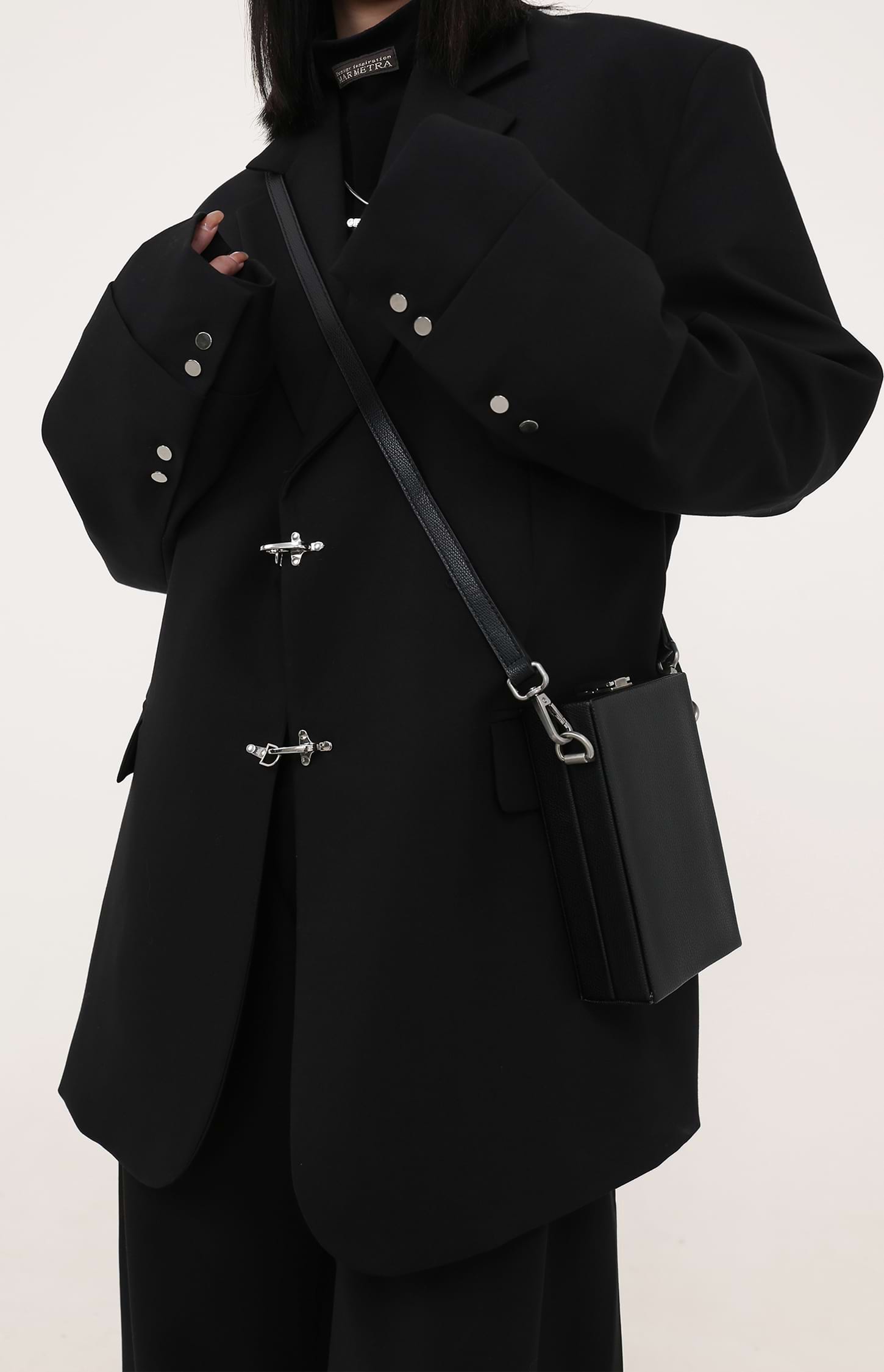 Oversized Boxy Blazer Coat with Silver Metal Accents