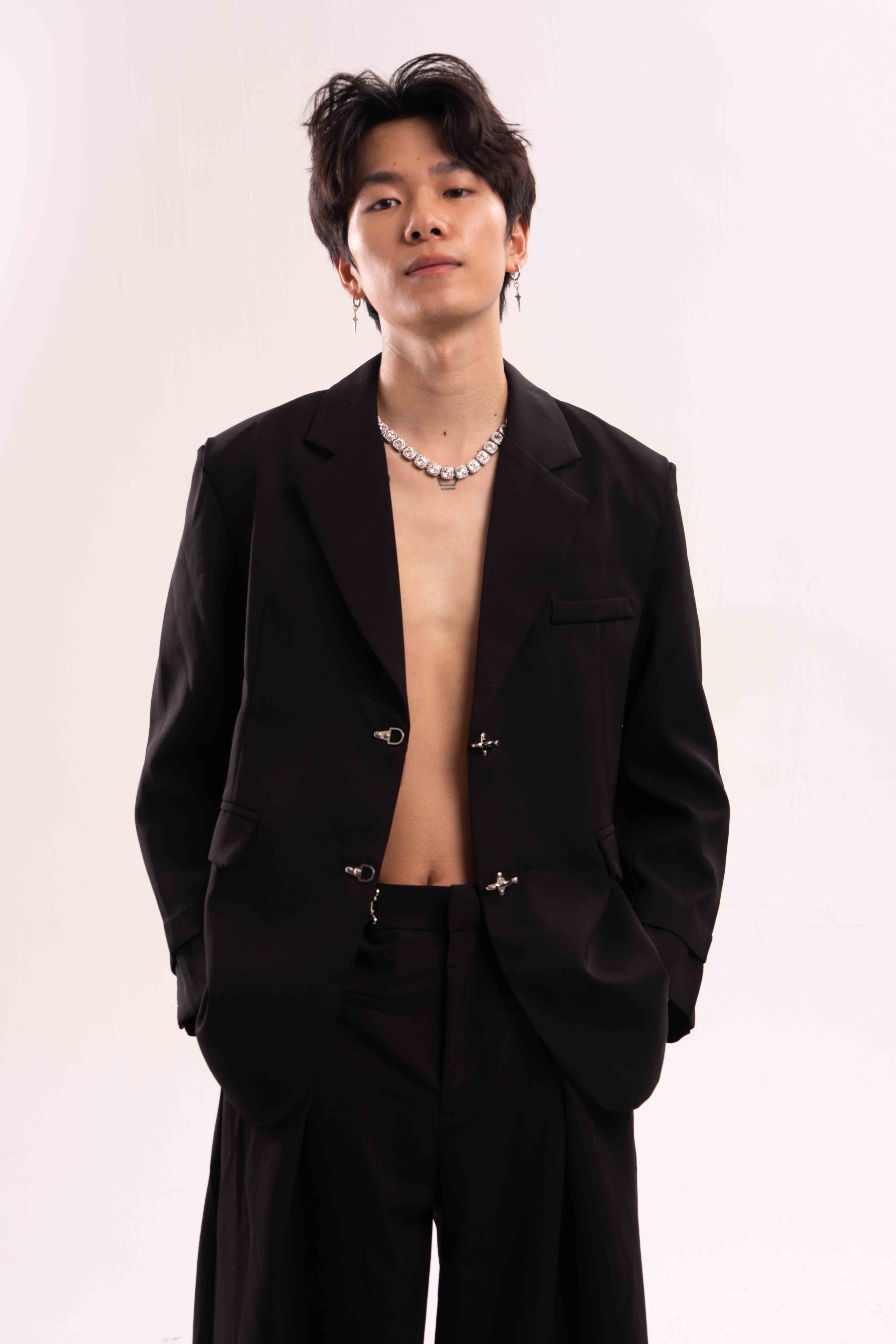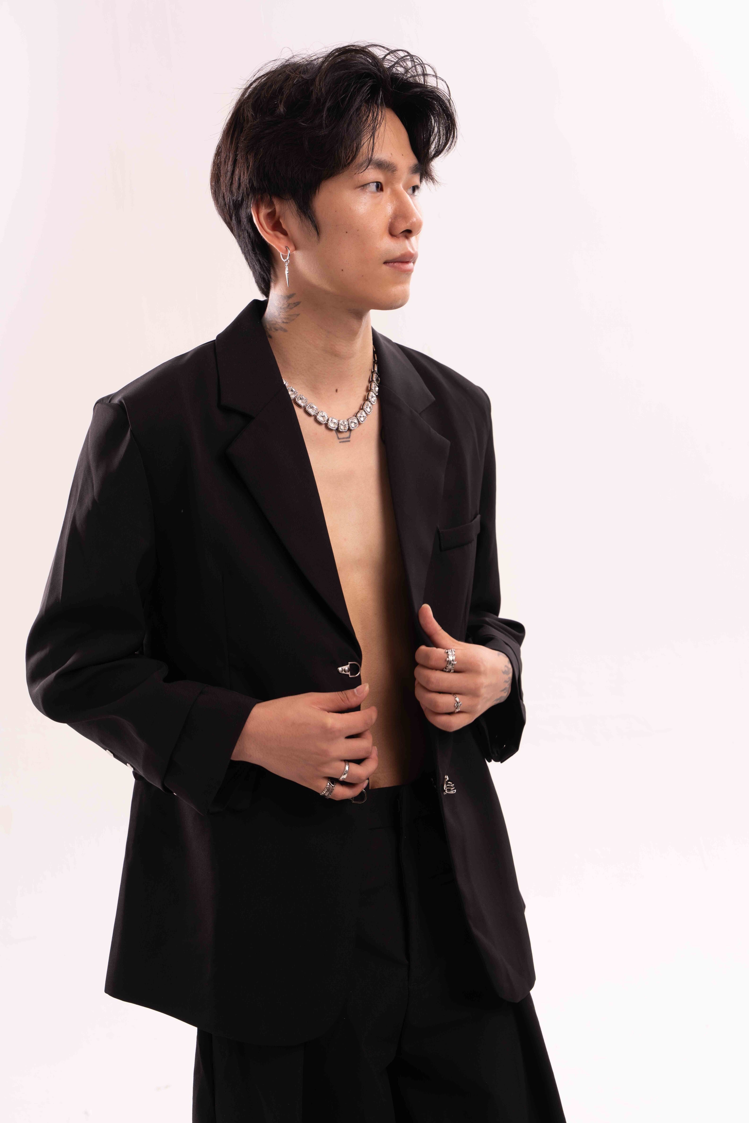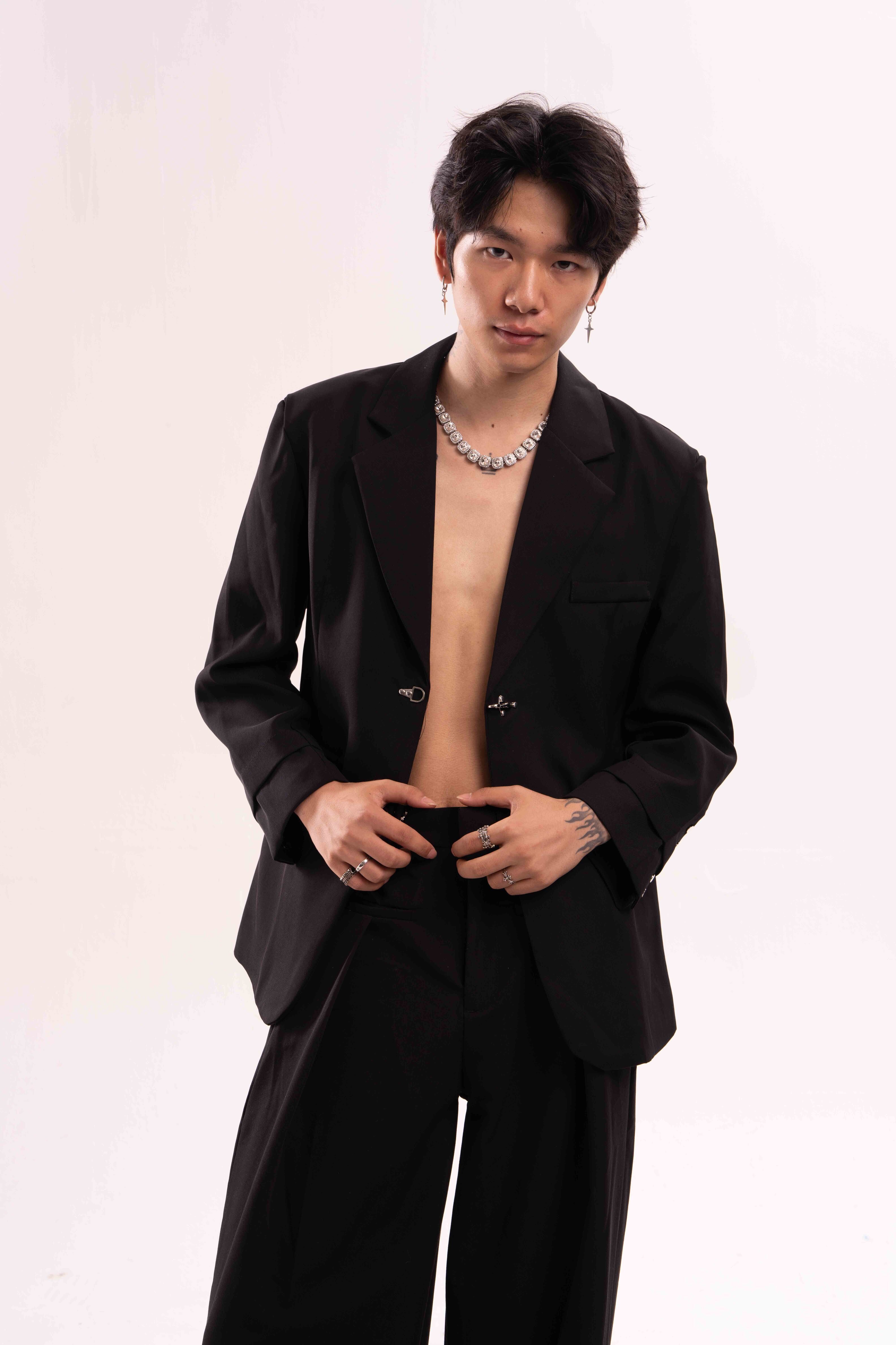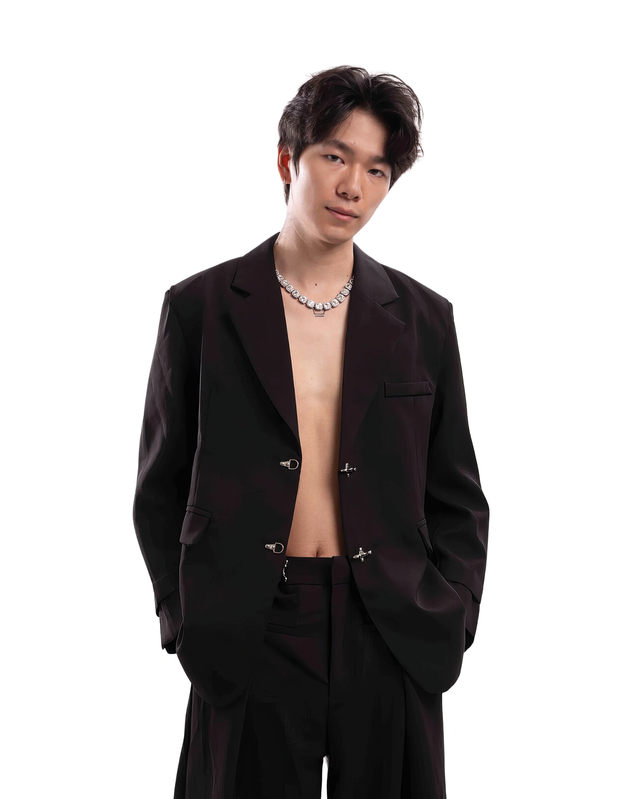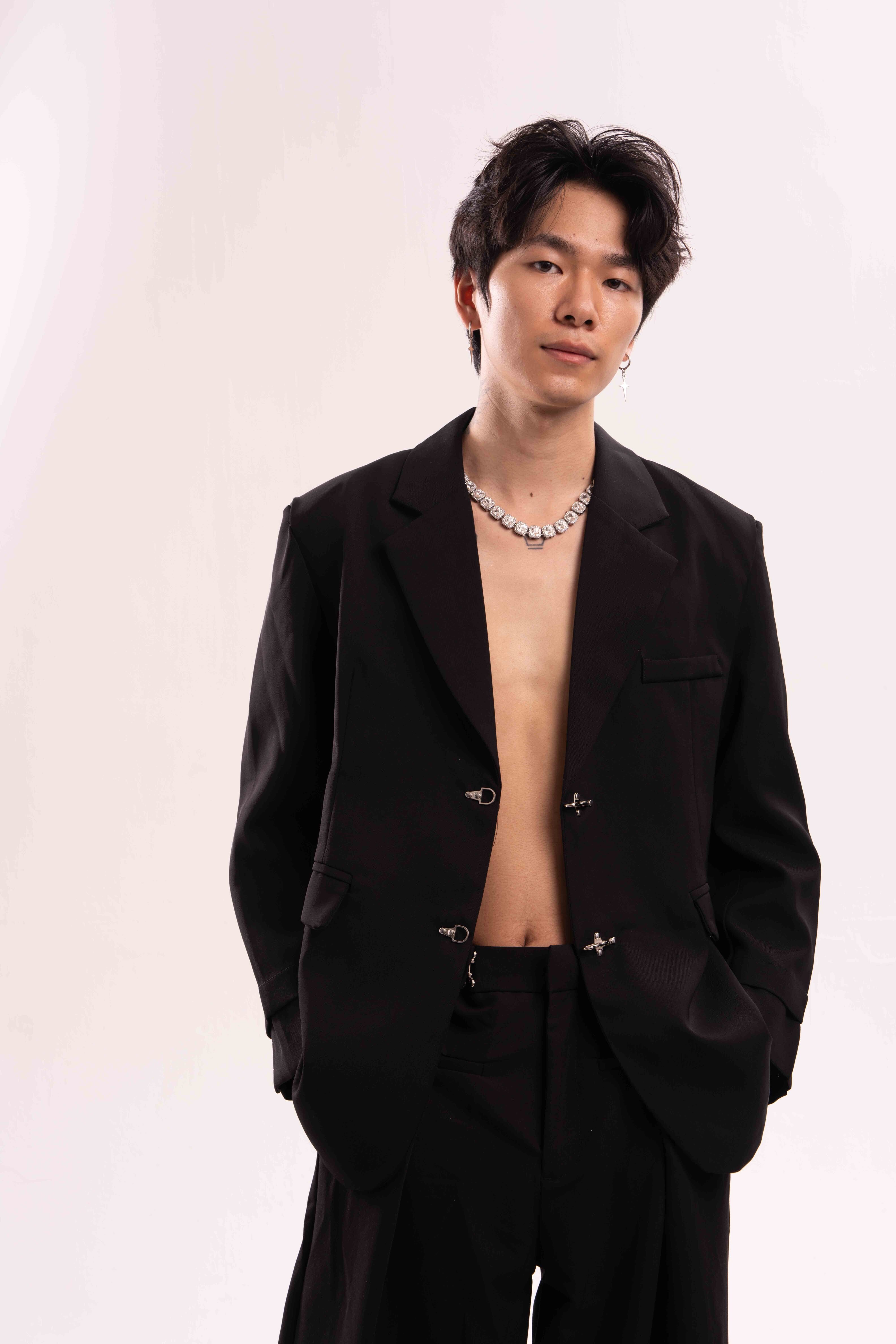 Crafted from premium materials, this blazer stands out with its unique silver buckled closures and mock-layered sleeves. Ideal for those who appreciate a blend of timeless tailoring and contemporary design touches. It's a statement piece that exudes confidence and serves both style and functionality.