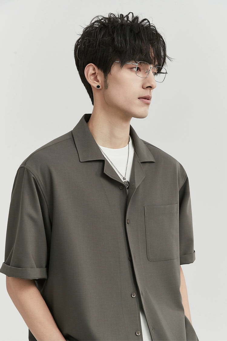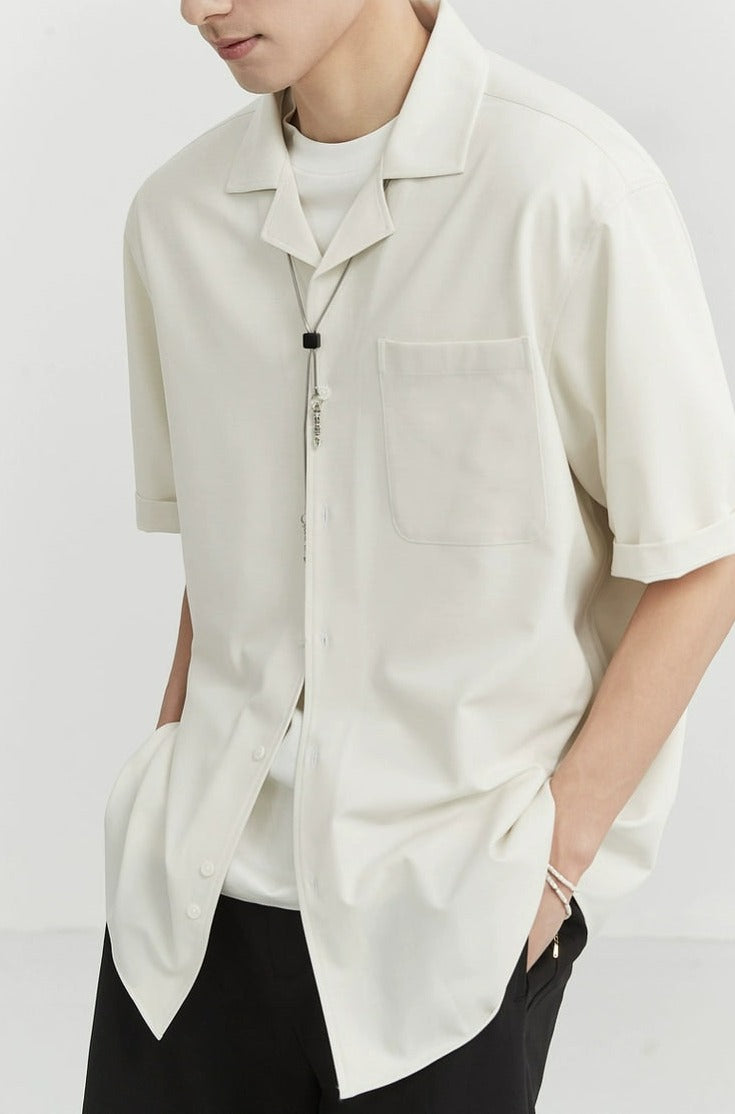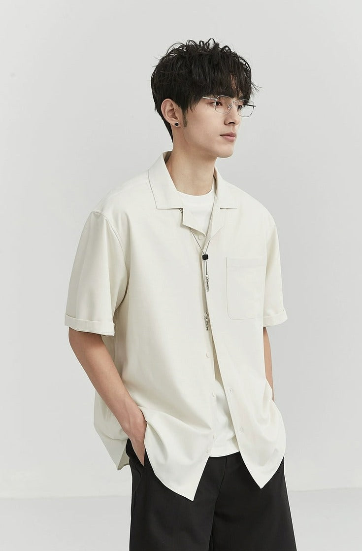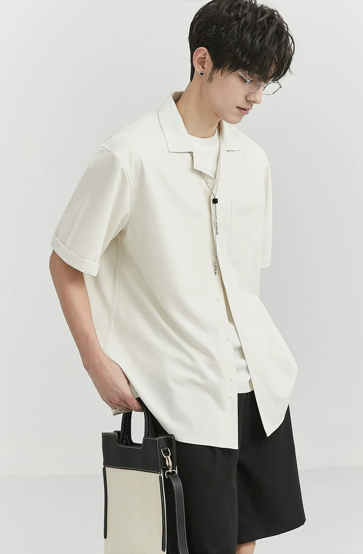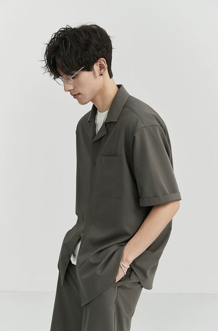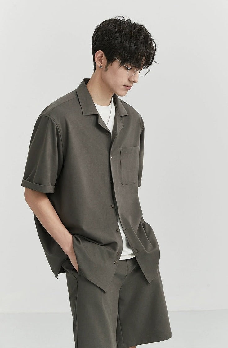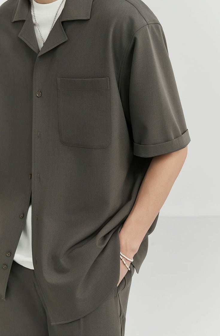 Oversized Camp-Collar Short Sleeve Button-Up Shirt