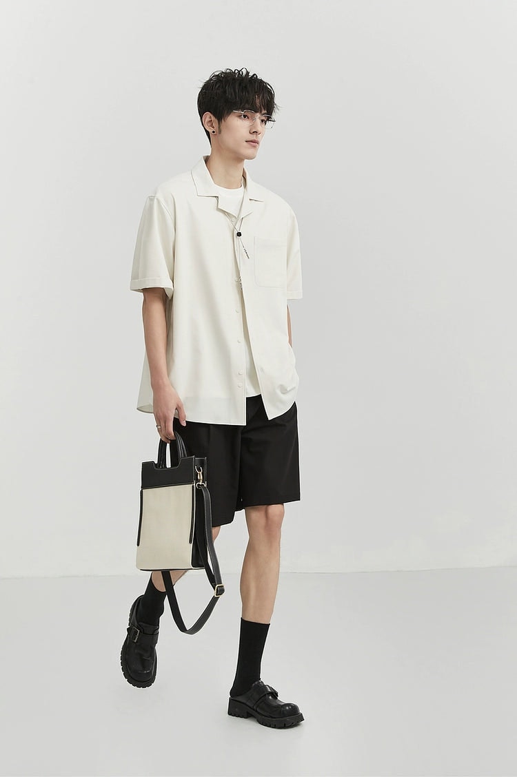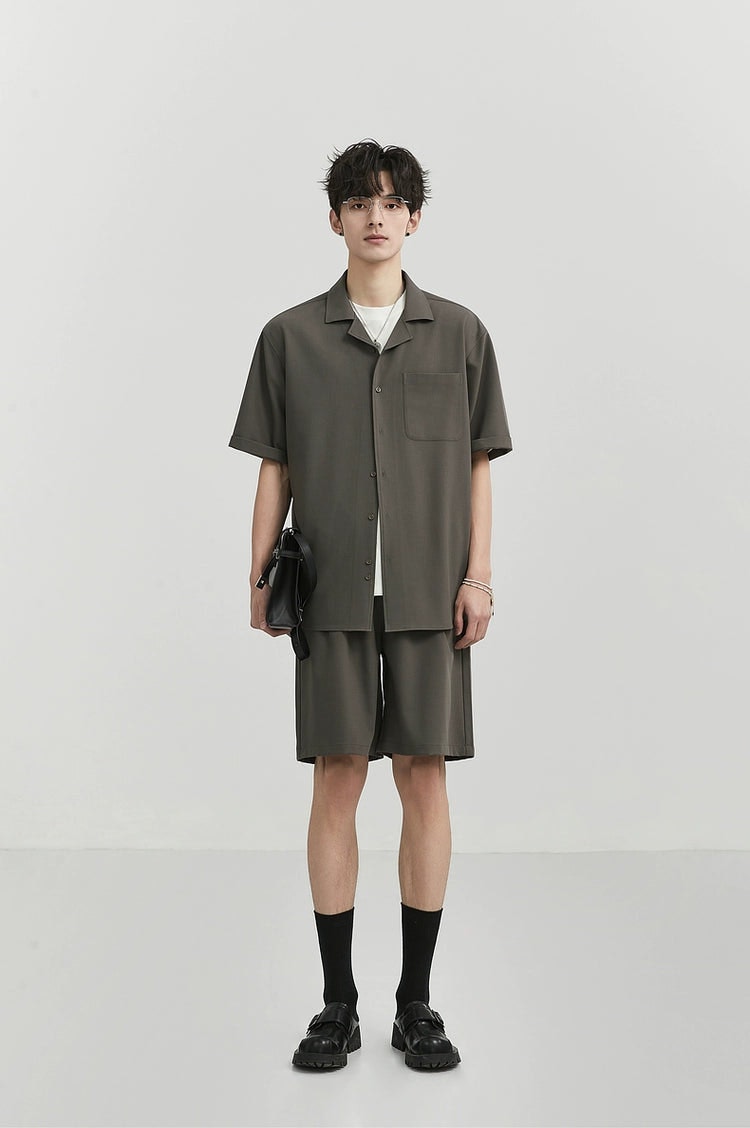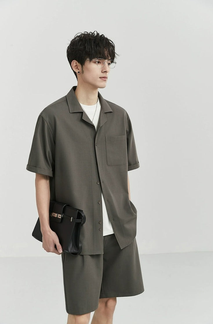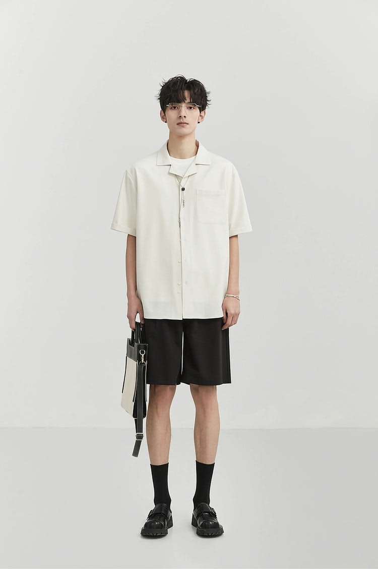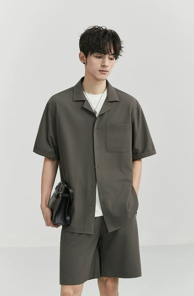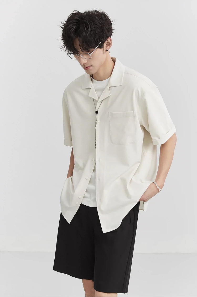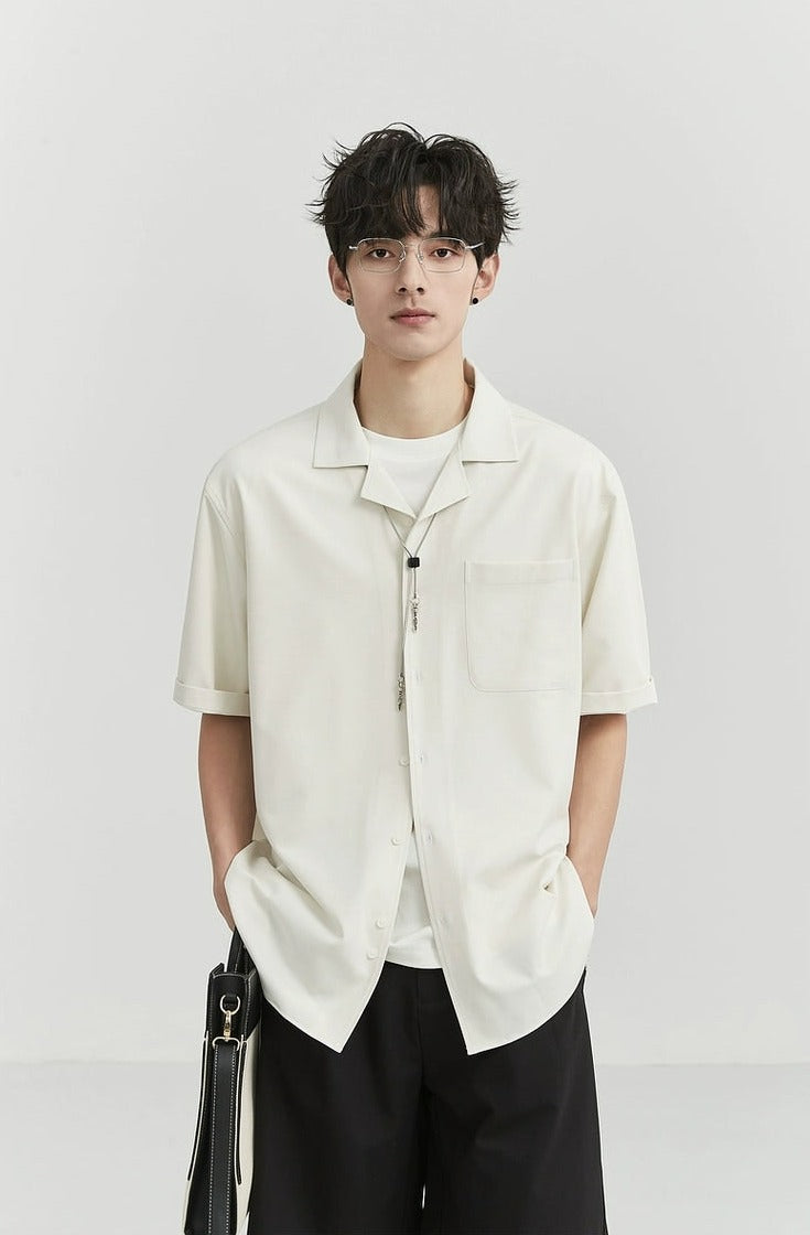 Oversized Camp-Collar Short Sleeve Button-Up Shirt