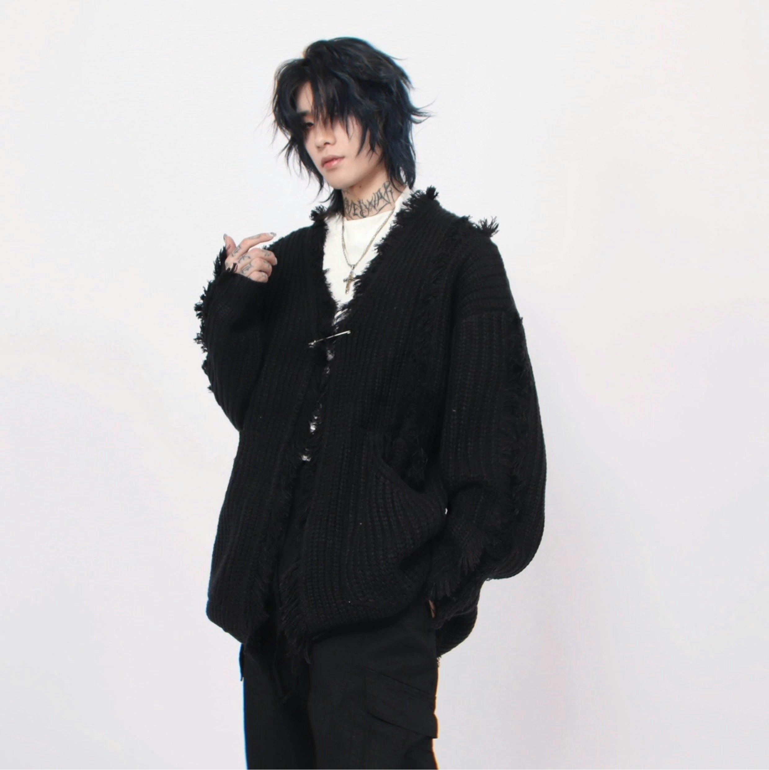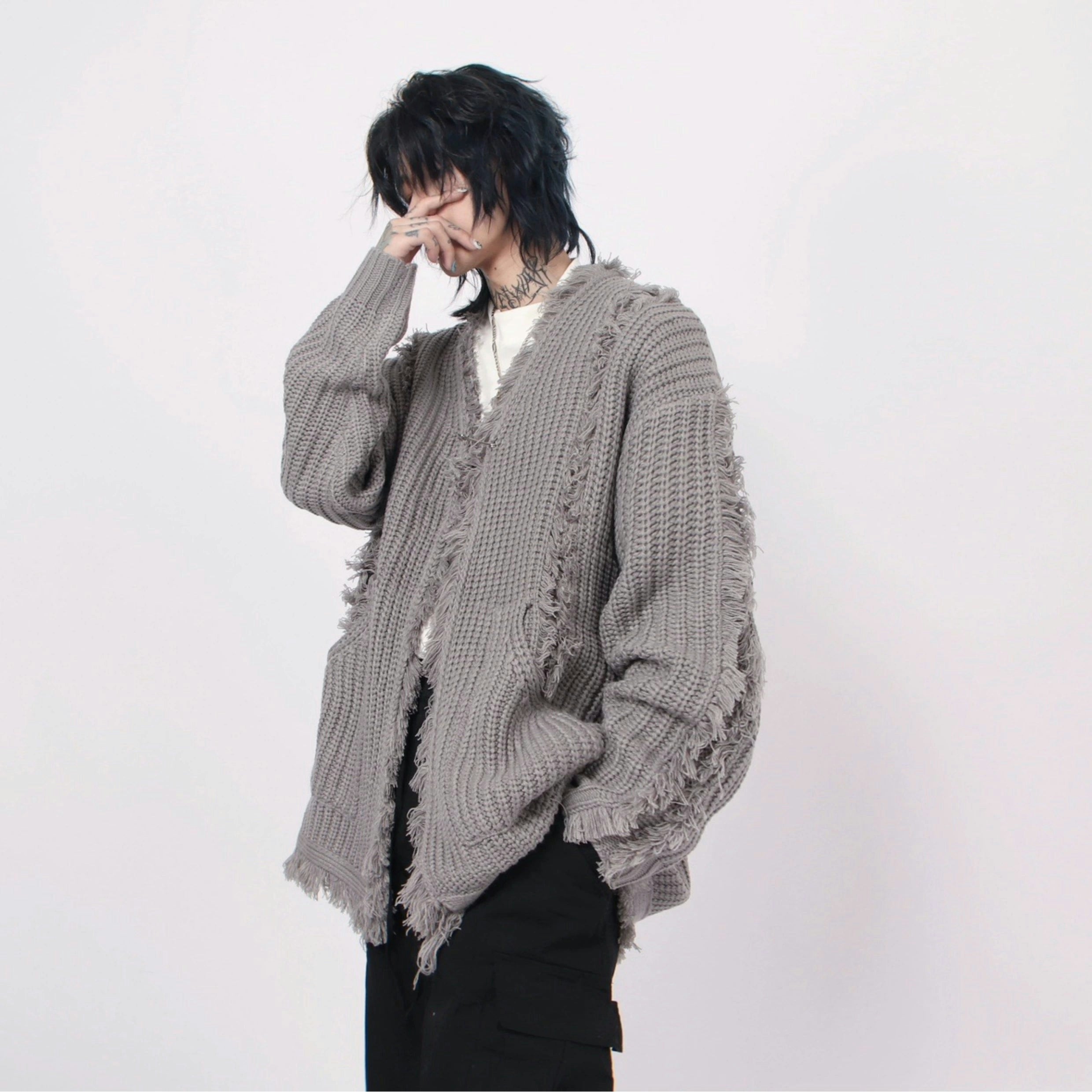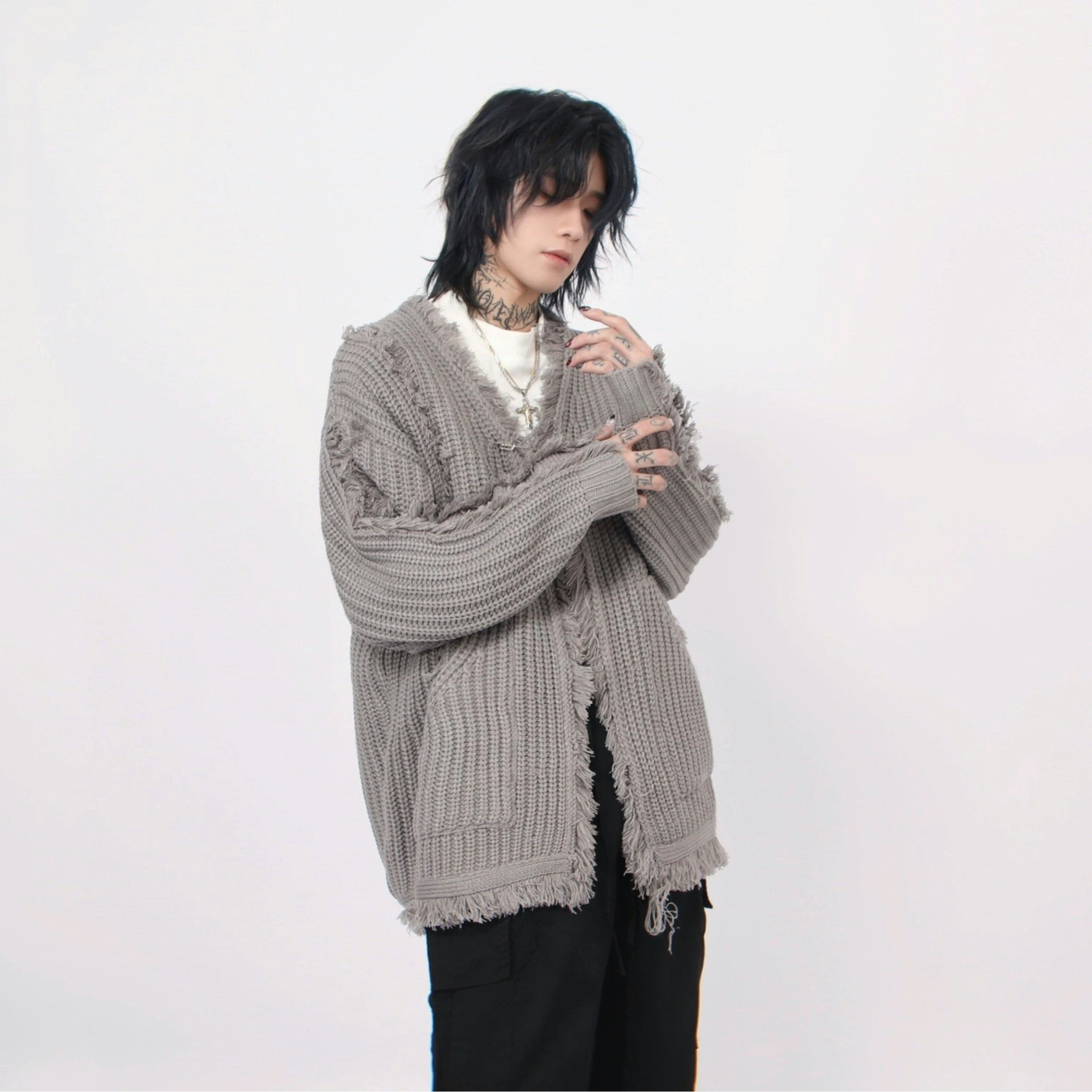 Read full Return PolicyRevamp your wardrobe with the ultimate off-duty piece, our Oversized Distressed Chunky Knit Cardigan. This cardigan is a seamless blend of comfort and rugged style.