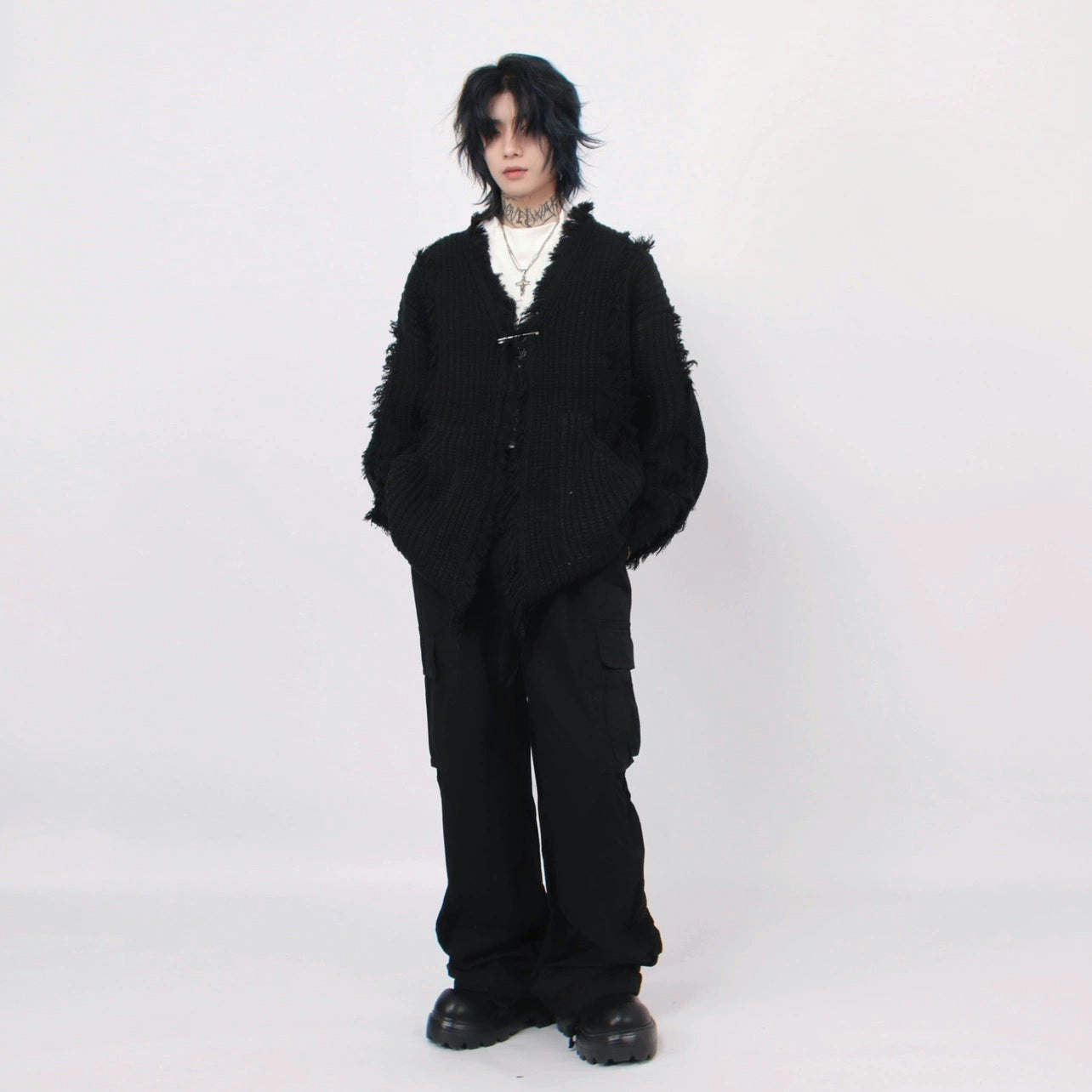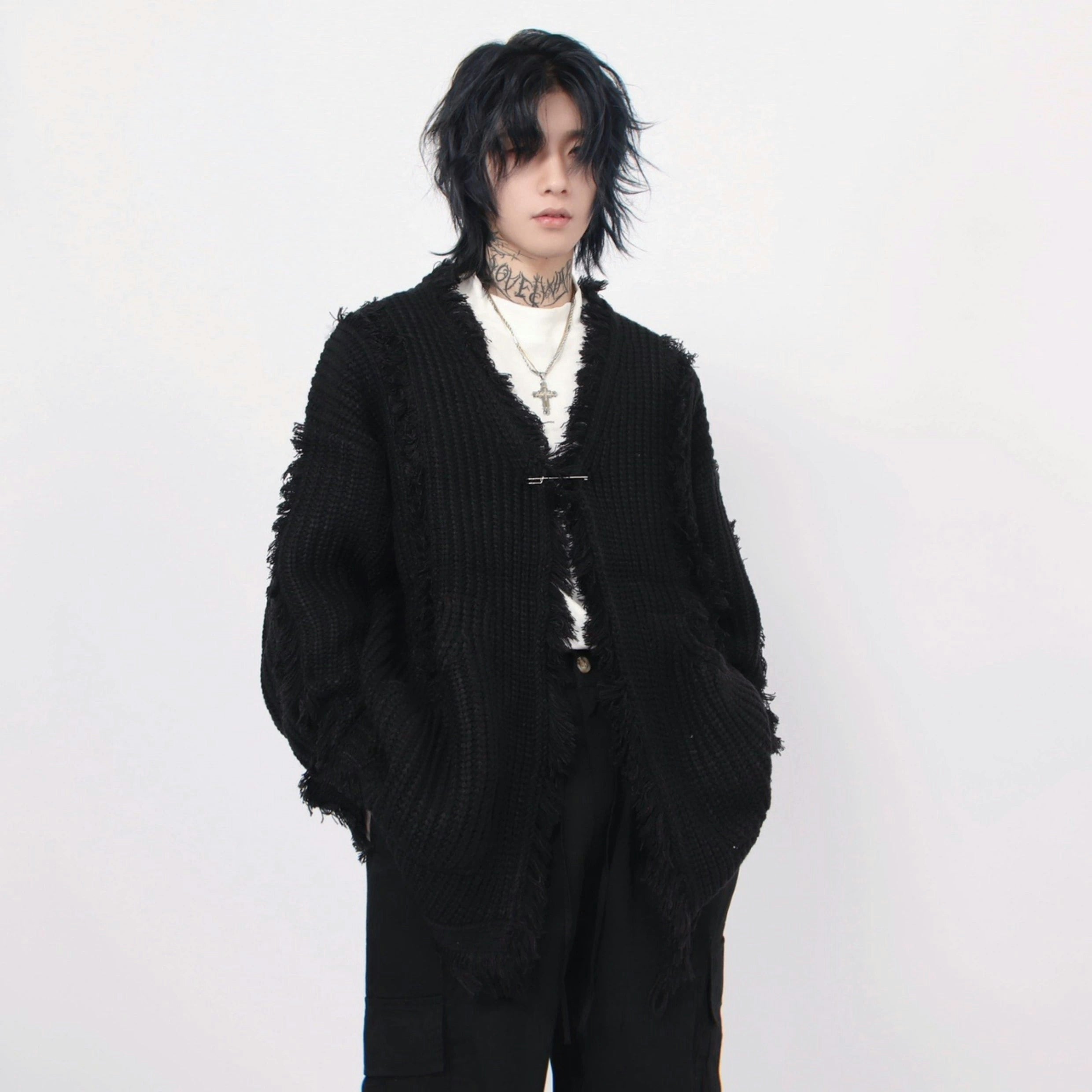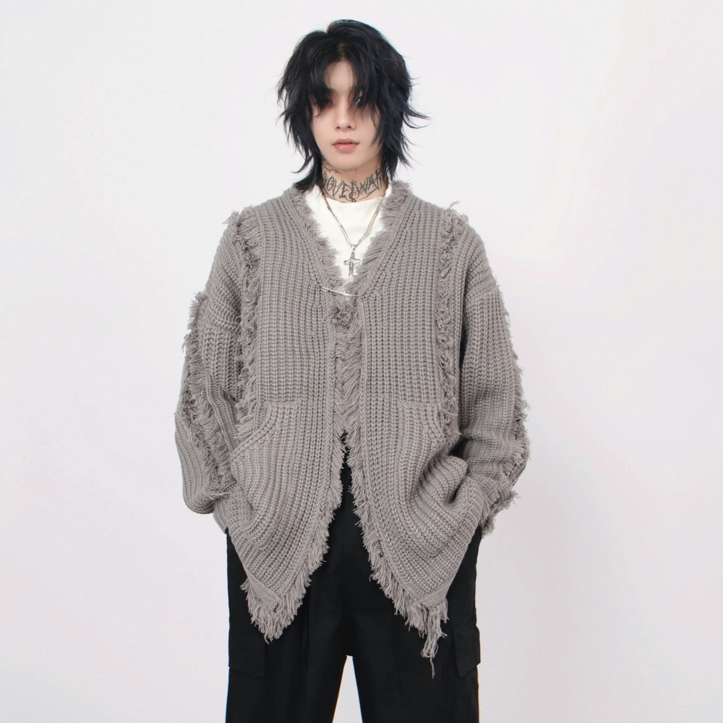 Read full Return PolicyRevamp your wardrobe with the ultimate off-duty piece, our Oversized Distressed Chunky Knit Cardigan. This cardigan is a seamless blend of comfort and rugged style.