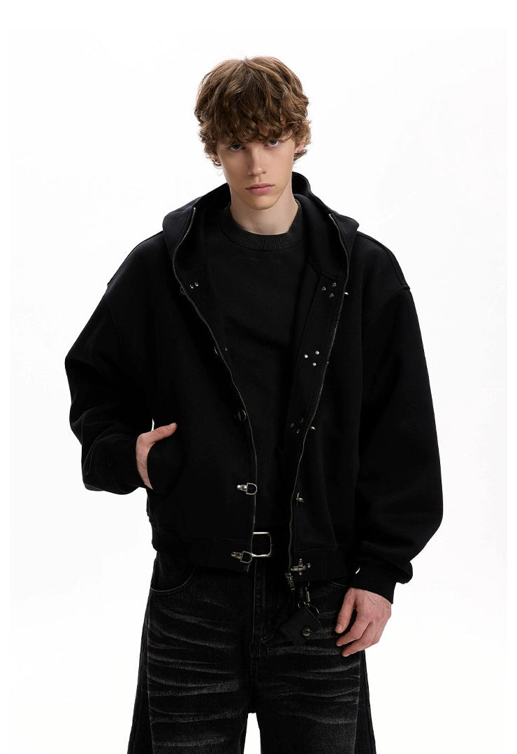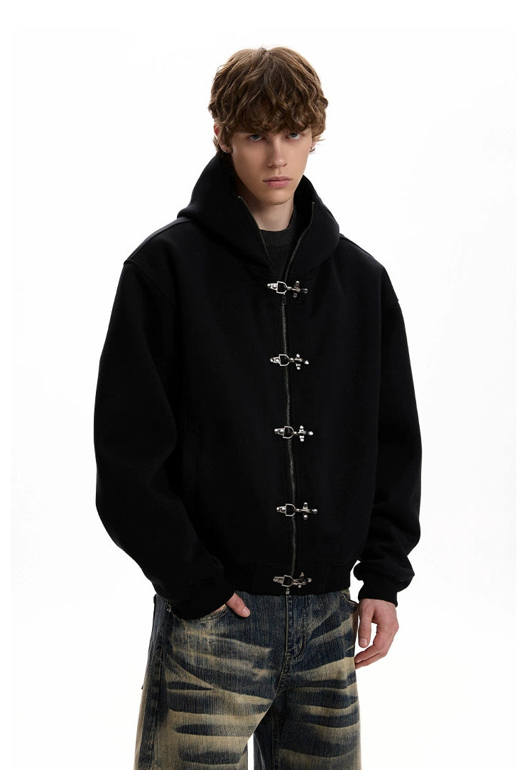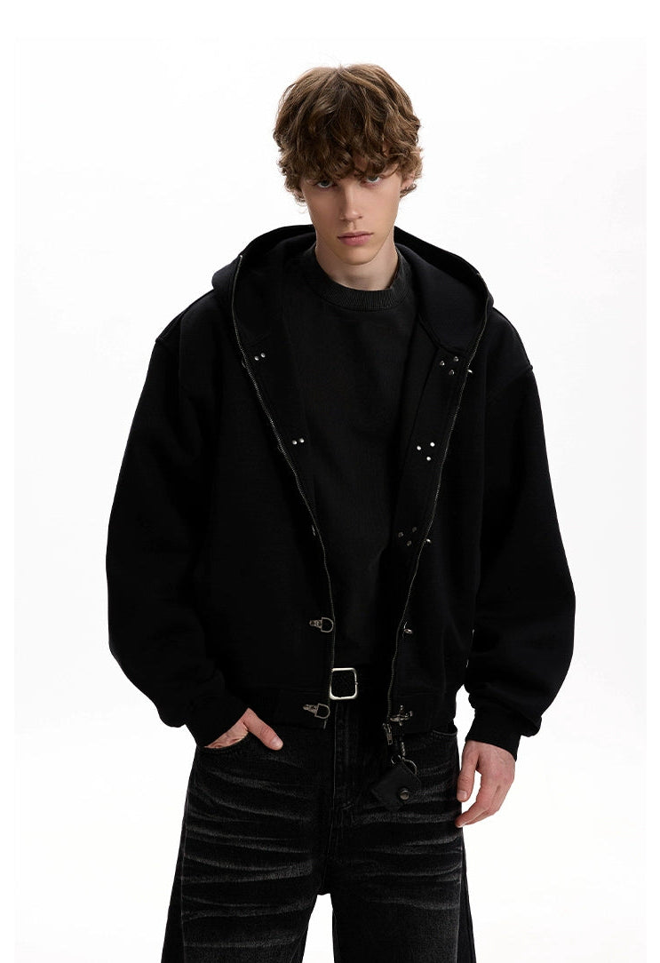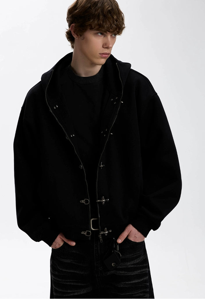 Read full Return PolicyThe Oversized Fireman Clasp Zip-Up Hooded Bomber Jacket is a standout piece with industrial hardware and a clean, structured silhouette that instantly elevates your outerwear rotation.