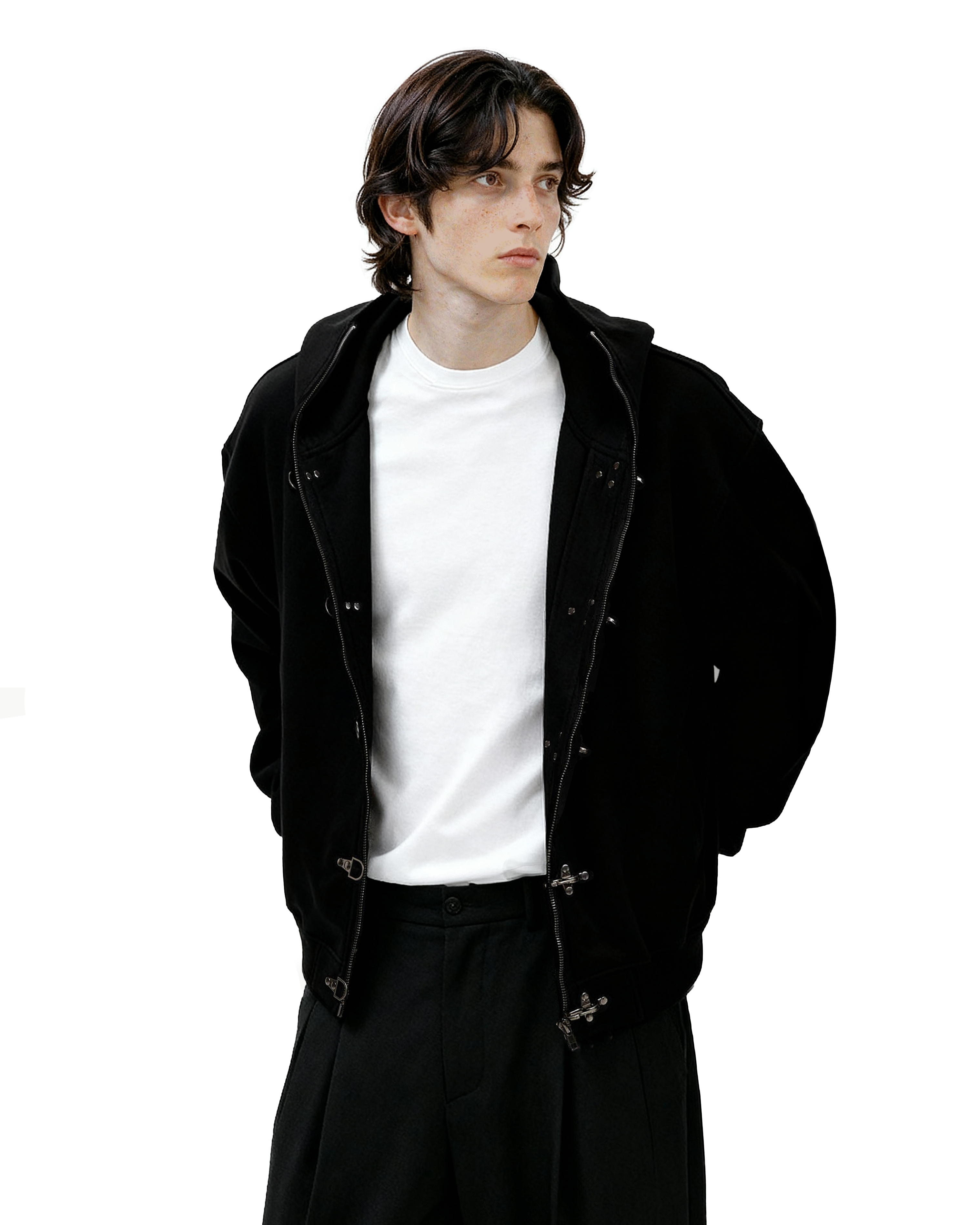 Read full Return PolicyThe Oversized Fireman Clasp Zip-Up Hooded Jacket is a standout piece with industrial hardware and a clean, structured silhouette that instantly elevates your outerwear rotation.