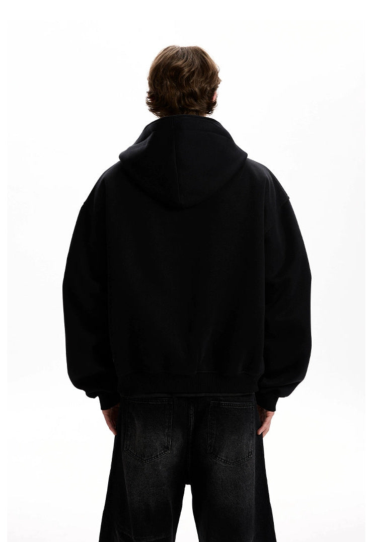 Oversized Fireman Clasp Zip-Up Hooded Bomber Jacket