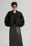Oversized Mid-Crop Bomber Jacket with Sleeve Zip Pocket