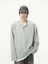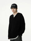 Oversized Mock-Layered Ribbed Knit Henley Top