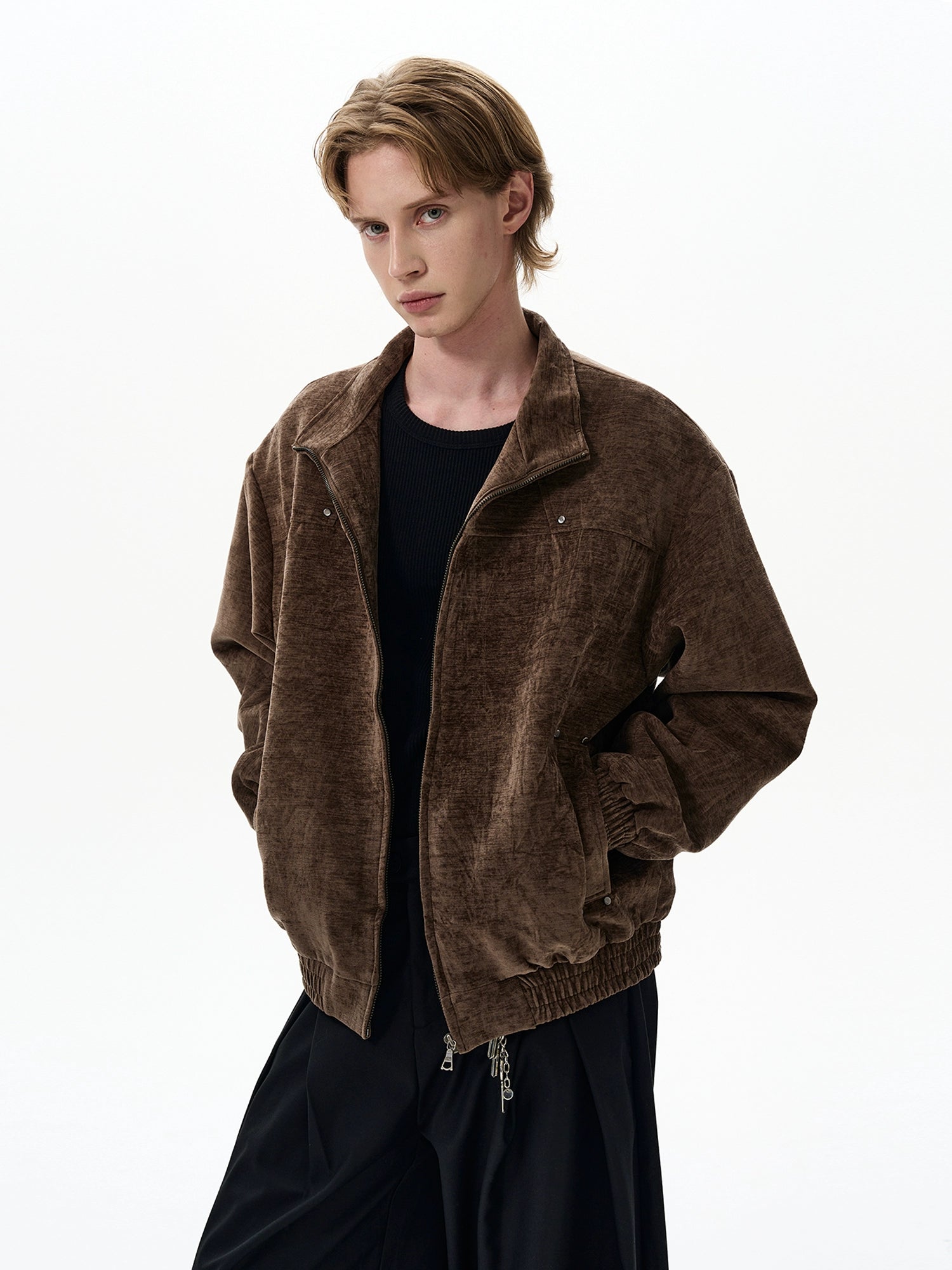 Oversized Panel Textured Zip-Up Elastic Trim Jacket