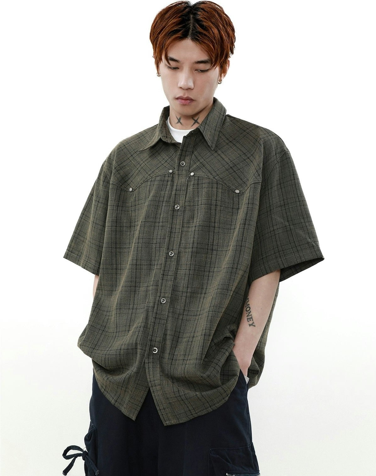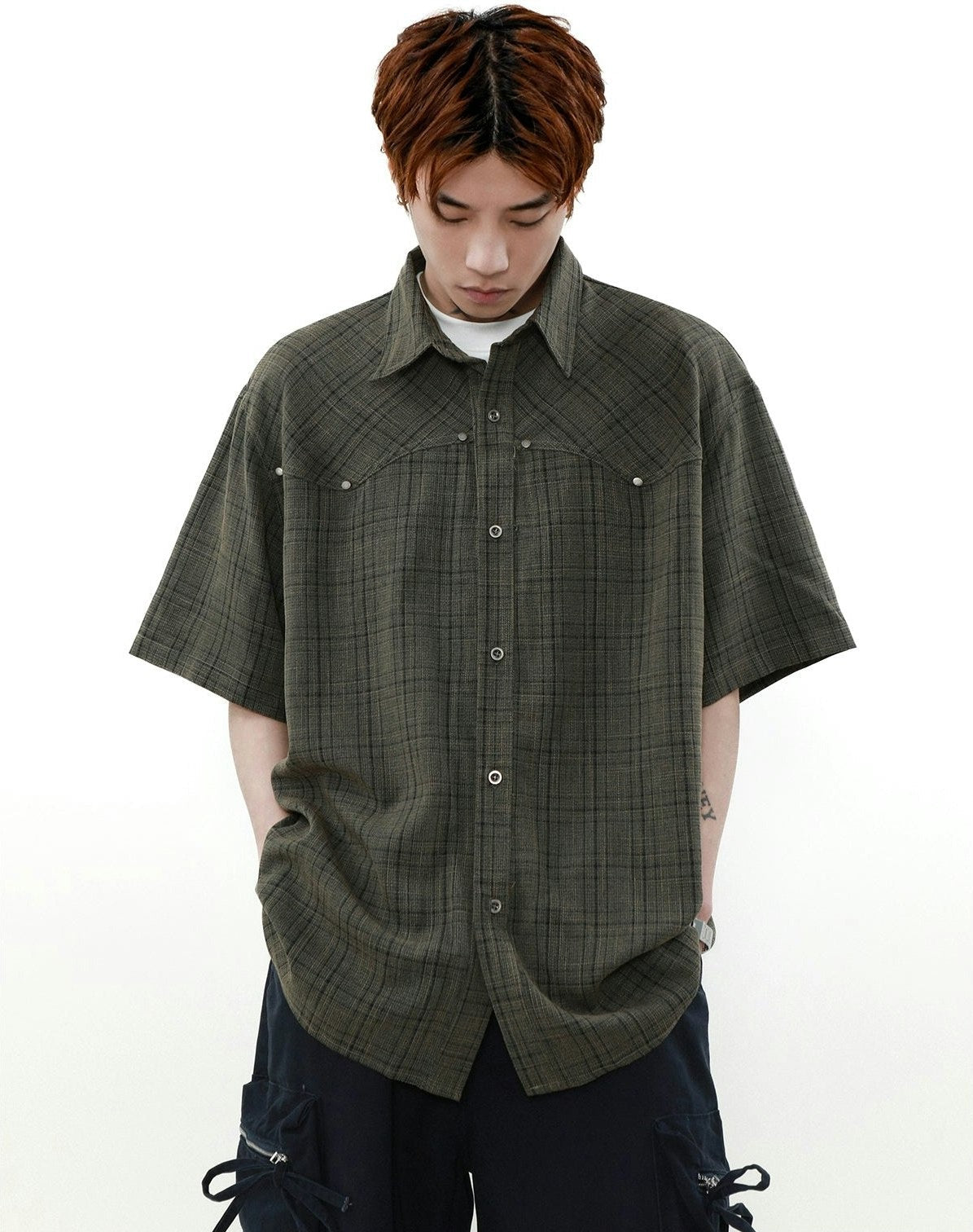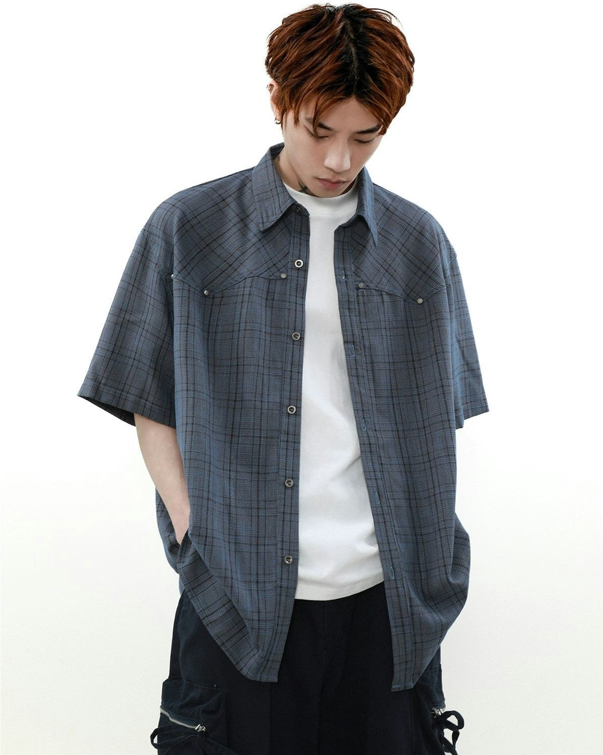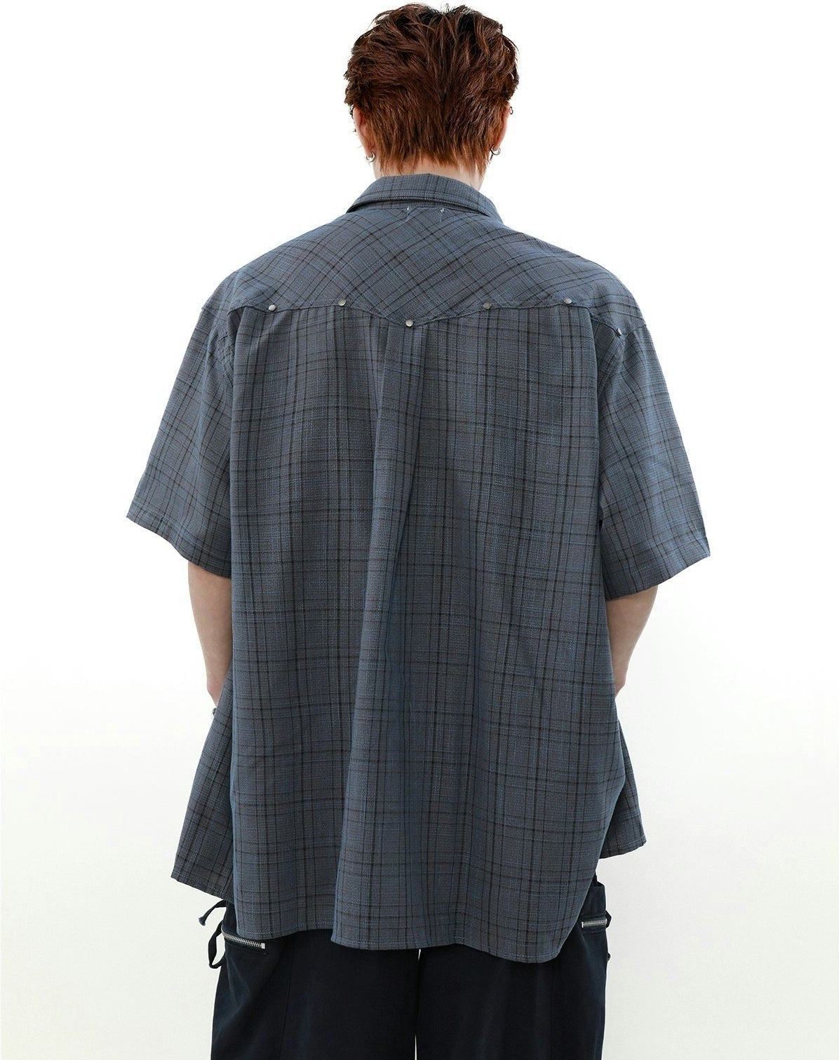 Oversized Plaid Button-Up Short Sleeve Shirt