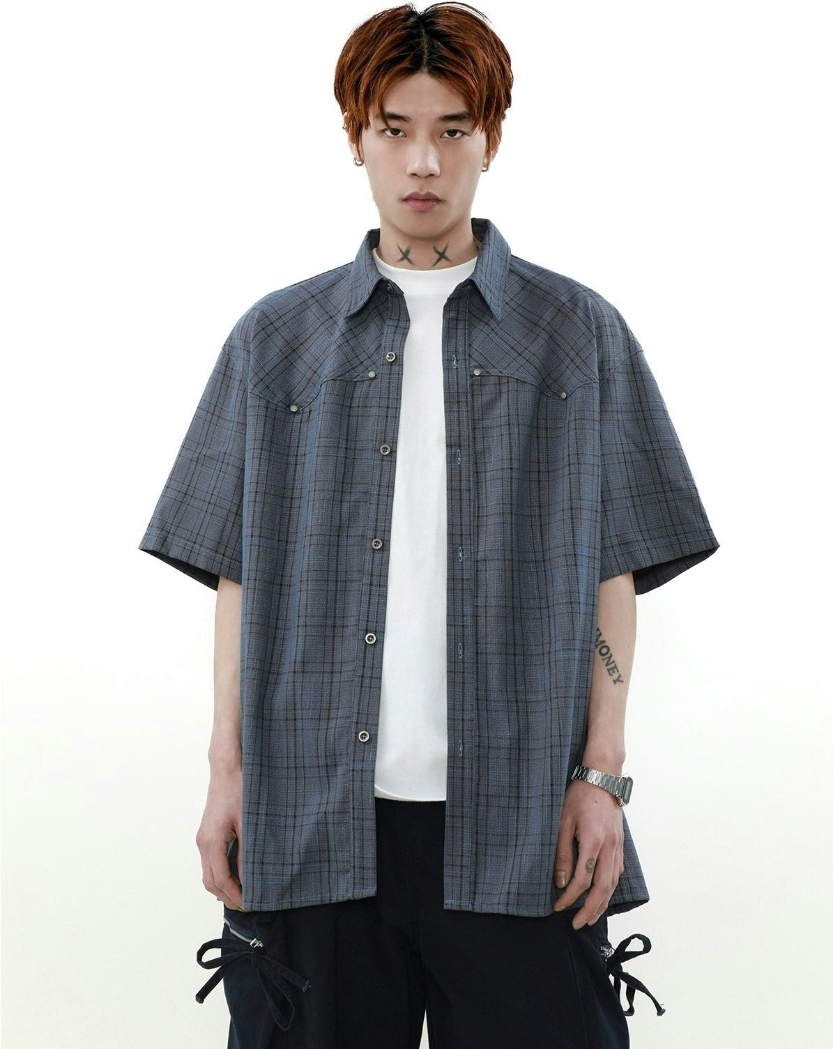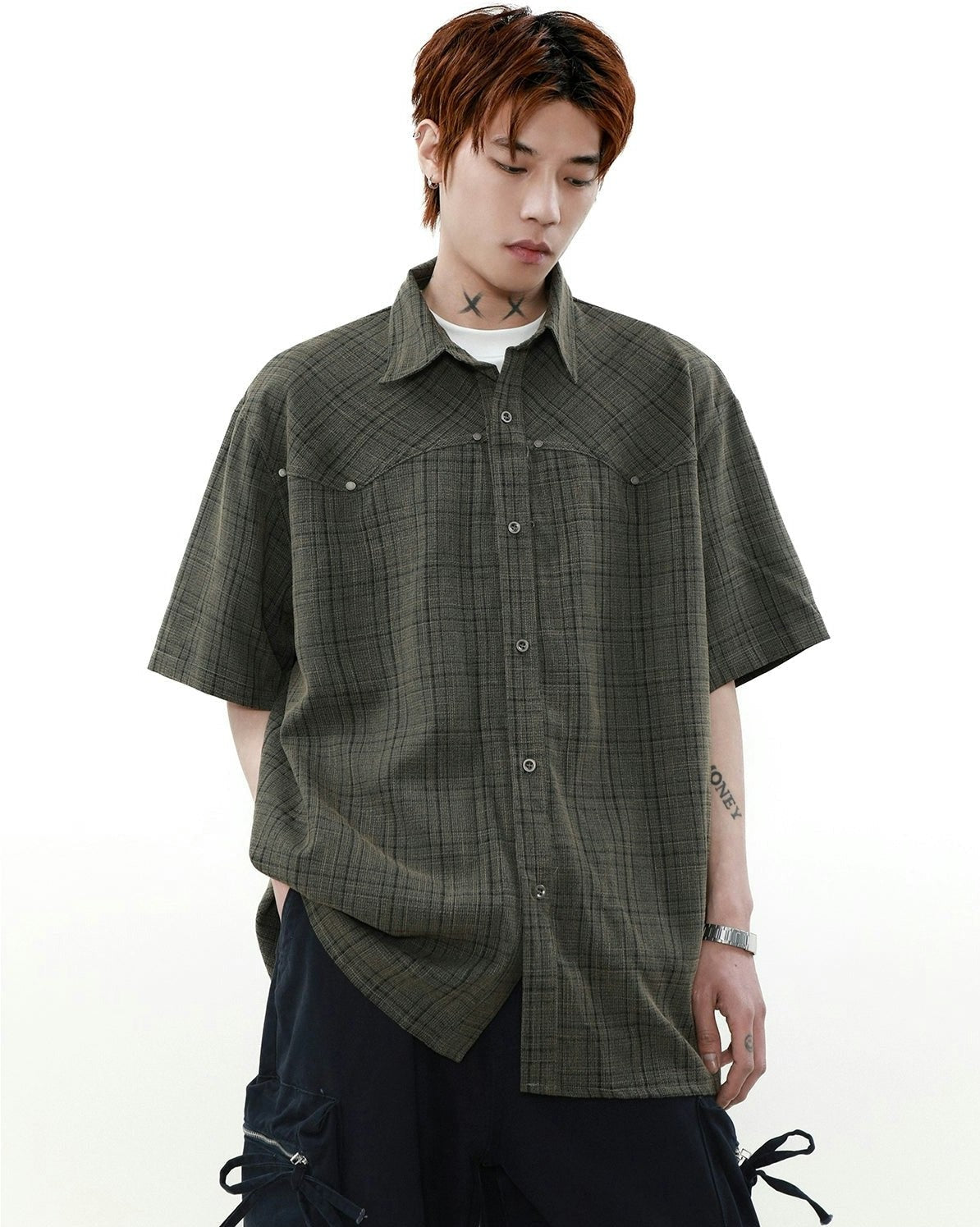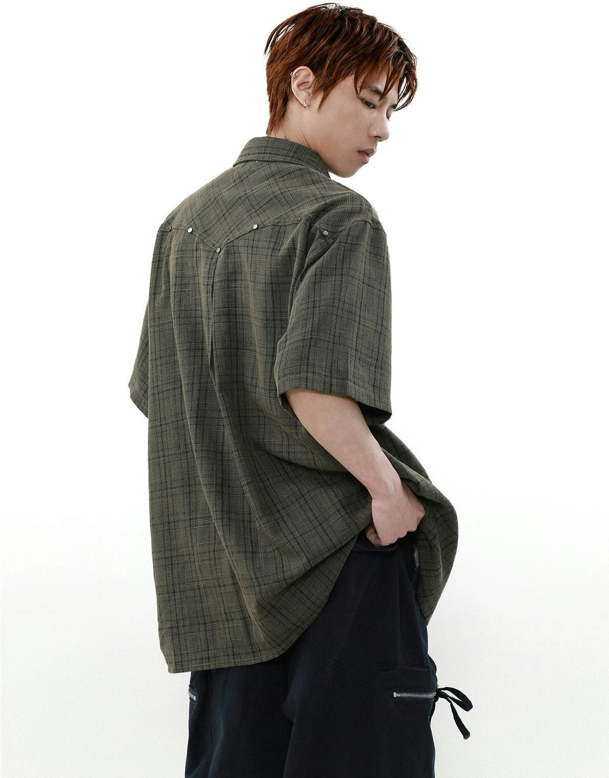Oversized Plaid Button-Up Short Sleeve Shirt