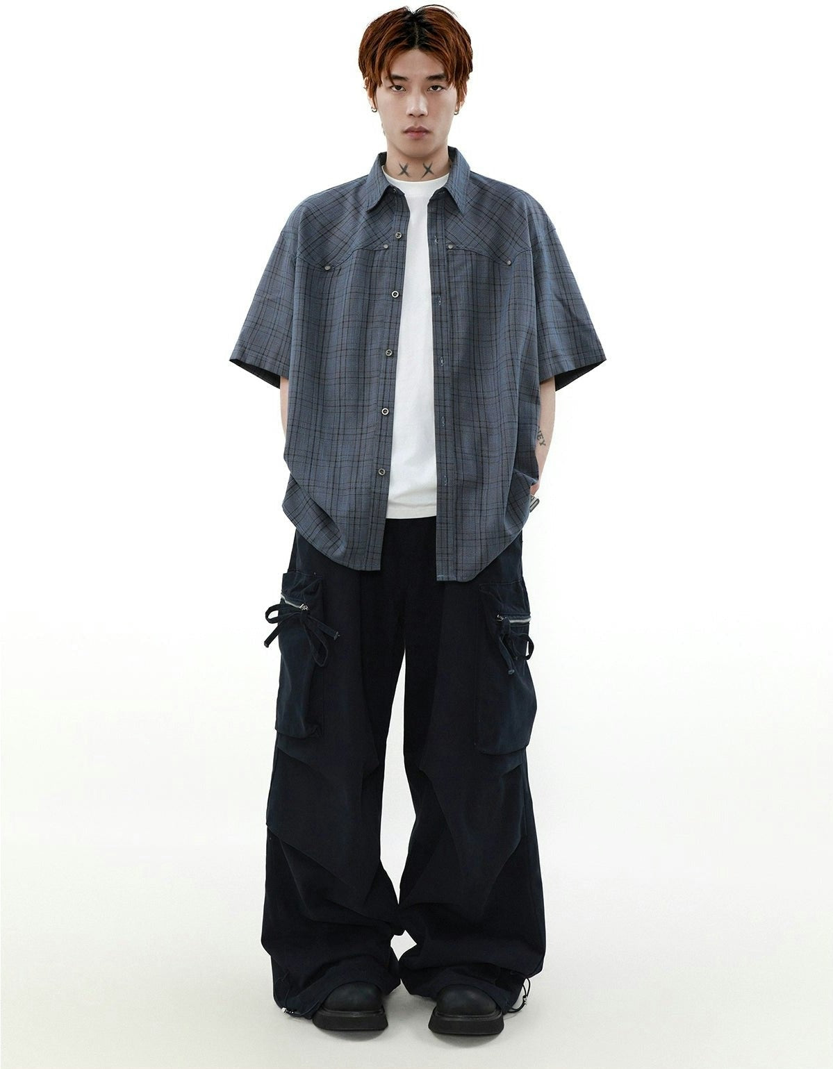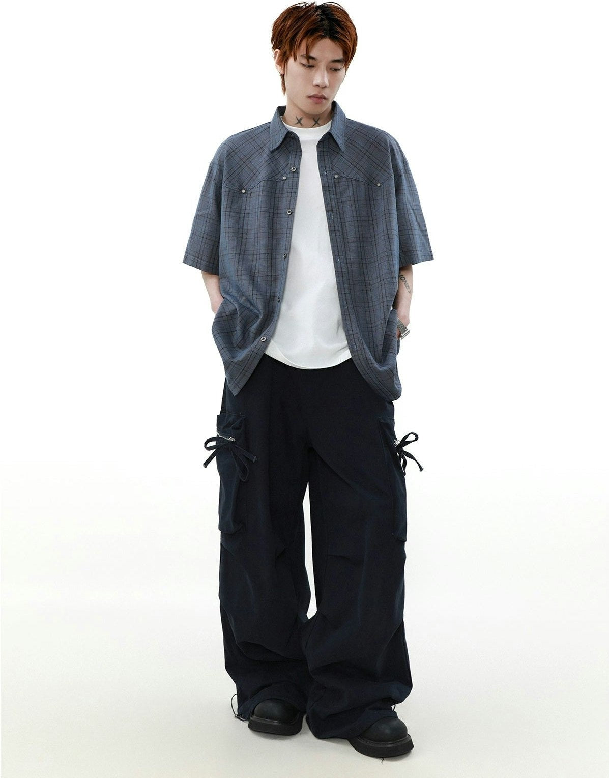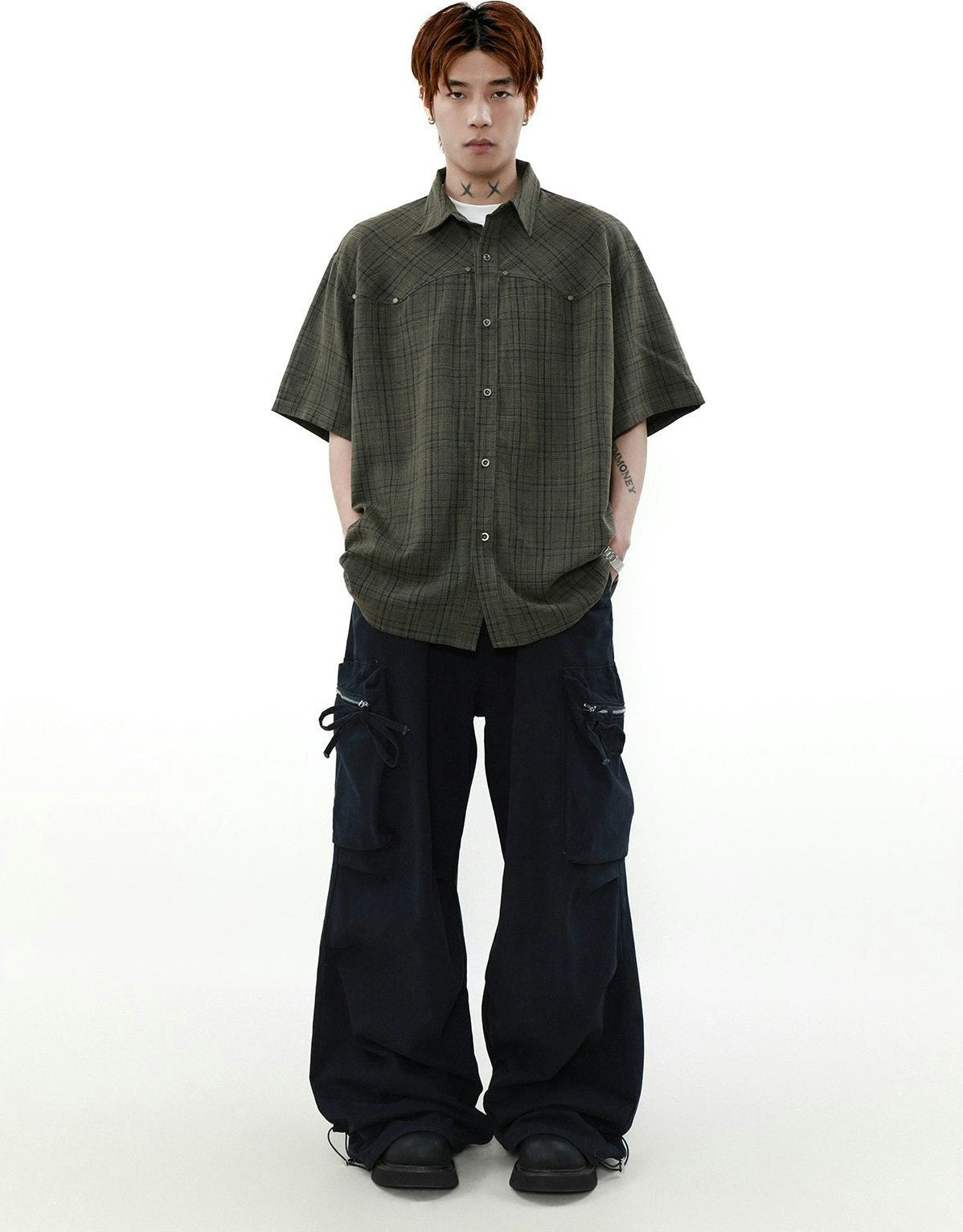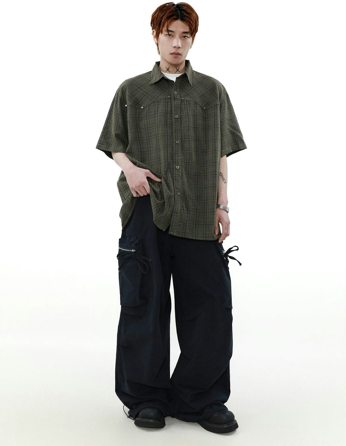 Oversized Plaid Button-Up Short Sleeve Shirt