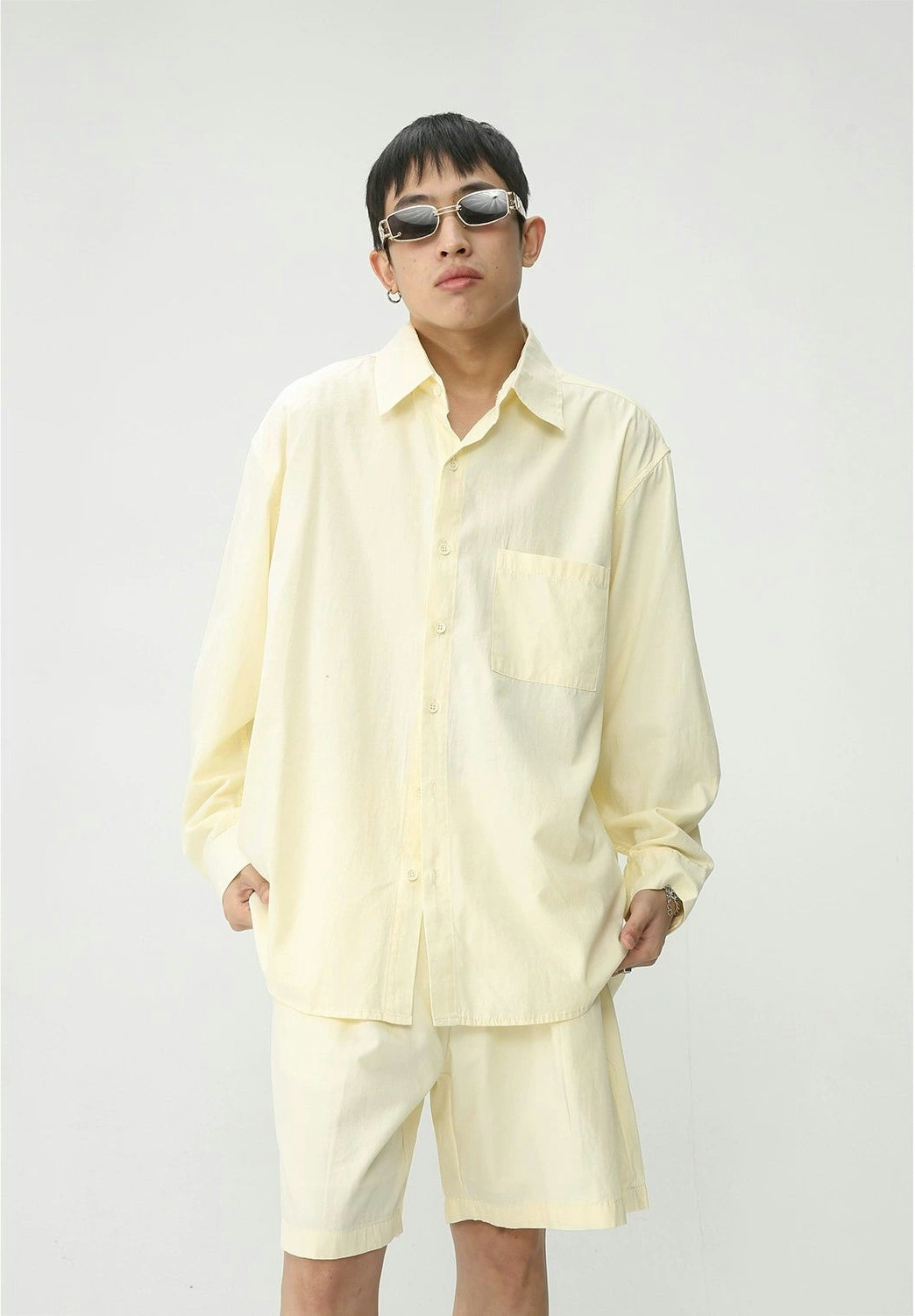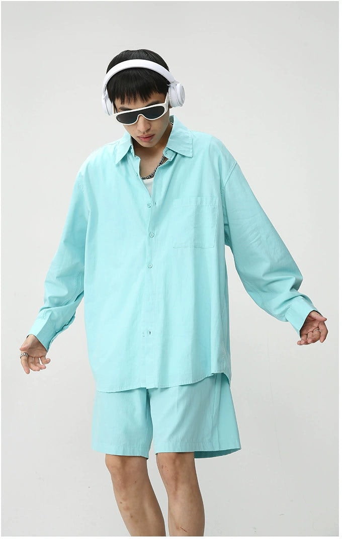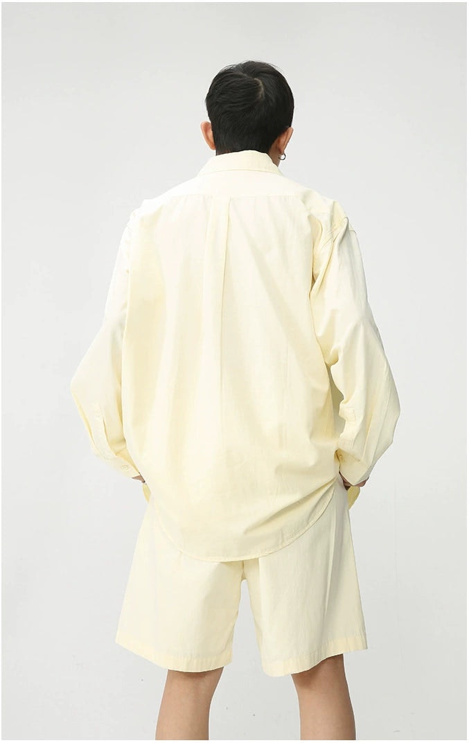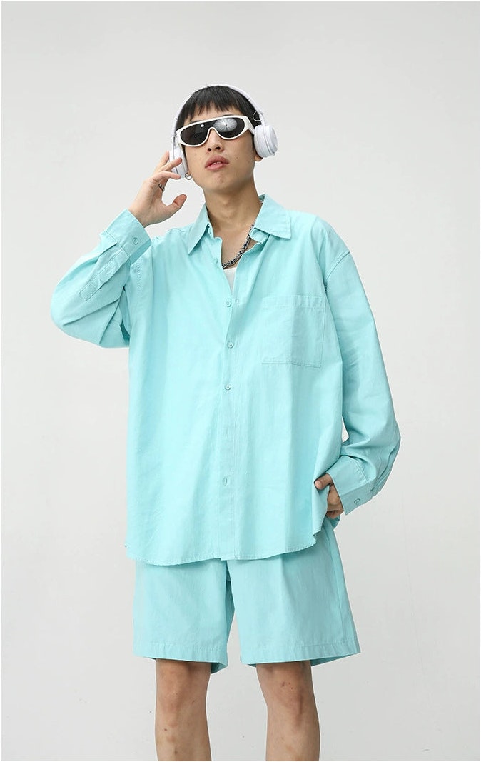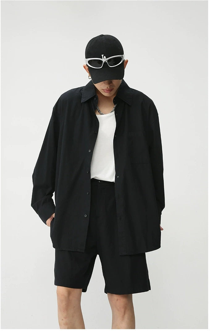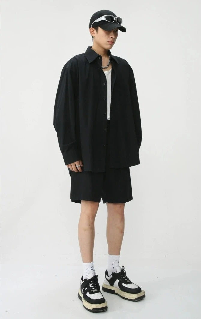 This co-ord set features an oversized shirt with a classic collar, giving it an edgy and contemporary look. Crafted from breathable fabric, the ensemble provides both comfort and durability. Distinctive design elements include spacious pockets and an easy-fit silhouette that caters to a relaxed yet professional aesthetic.