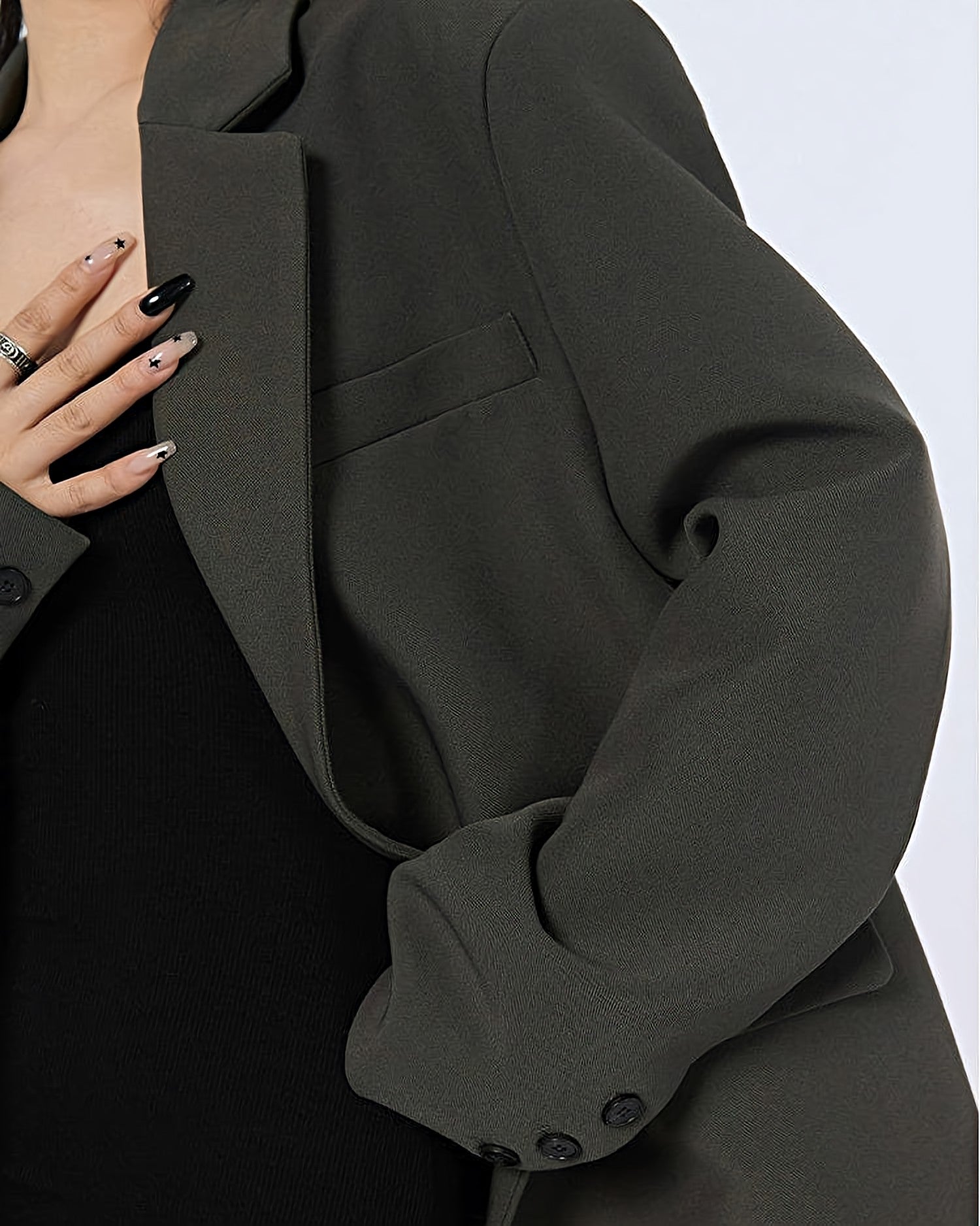 Read full Return PolicyElevate your wardrobe with the Oversized Solid Blazer with Notch Lapels – a piece that exudes quiet confidence. Crafted for comfort and style, its spacious design and sleek lines deliver an effortlessly cool silhouette, making it a versatile pick for both office chic and weekend vibes. Invest in this staple layer for a polished look that stands out with understated elegance.
