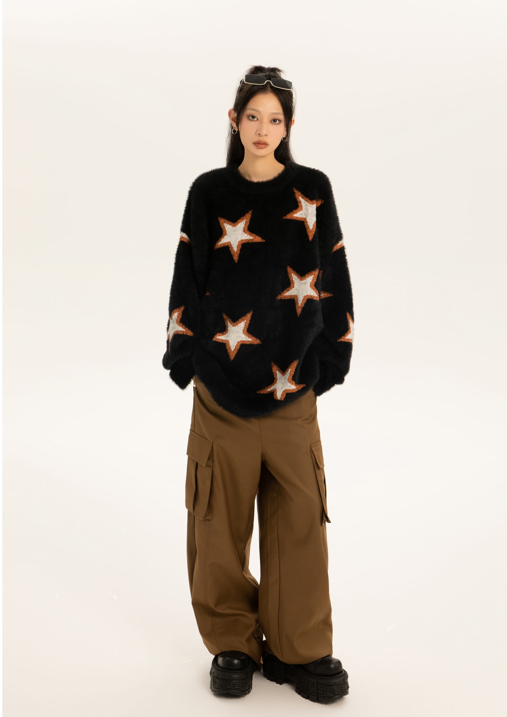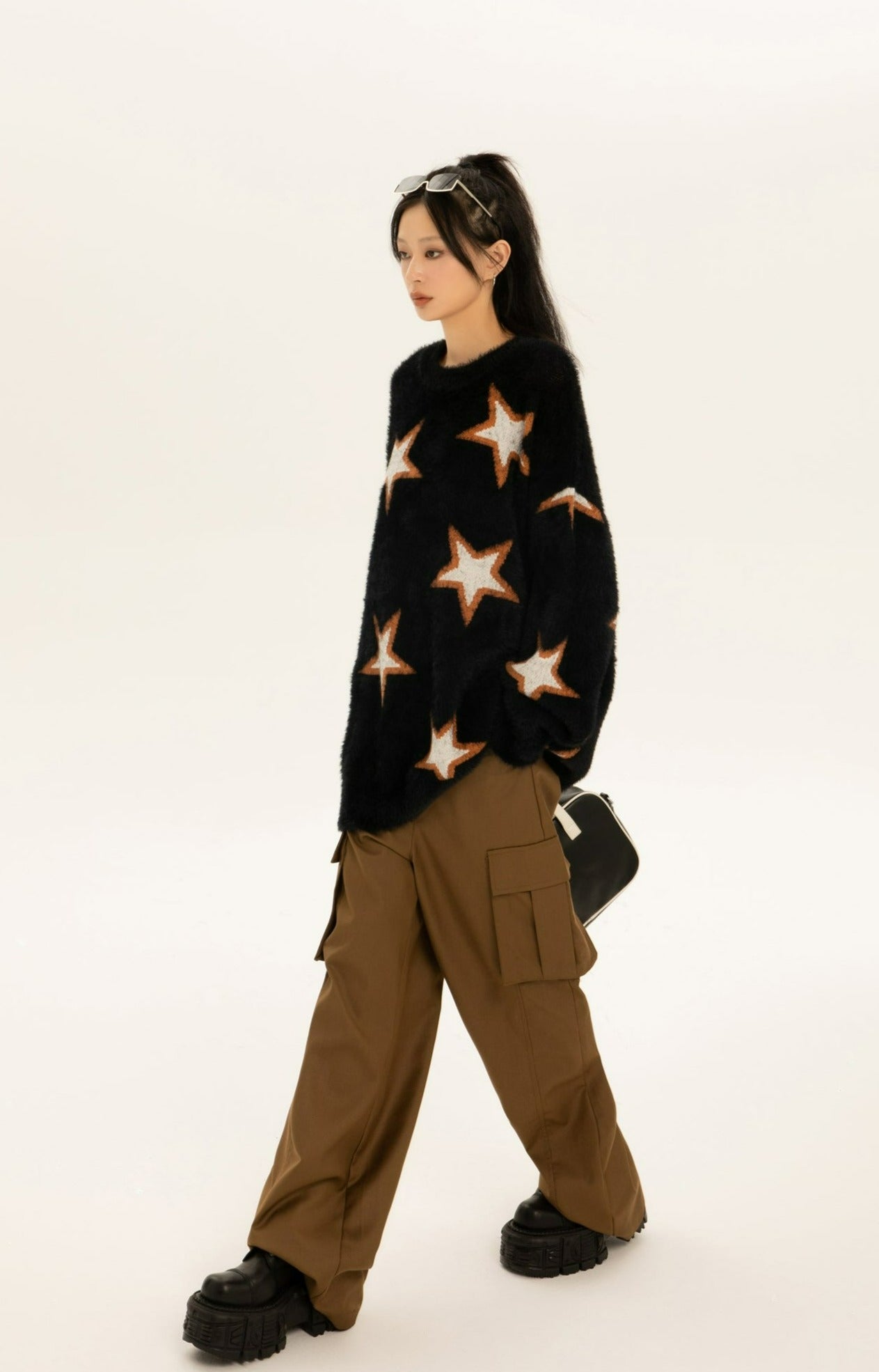 Read full Return PolicyThe Star Print Pullover is a must-have for a casual, cool look. This oversized pullover is designed with a comfortable fit that you can wear alone or layer over any pants. The star print gives it a touch of casual cool. So versatile and easy to wear, the Star Print Pullover is a must-have in your wardrobe.