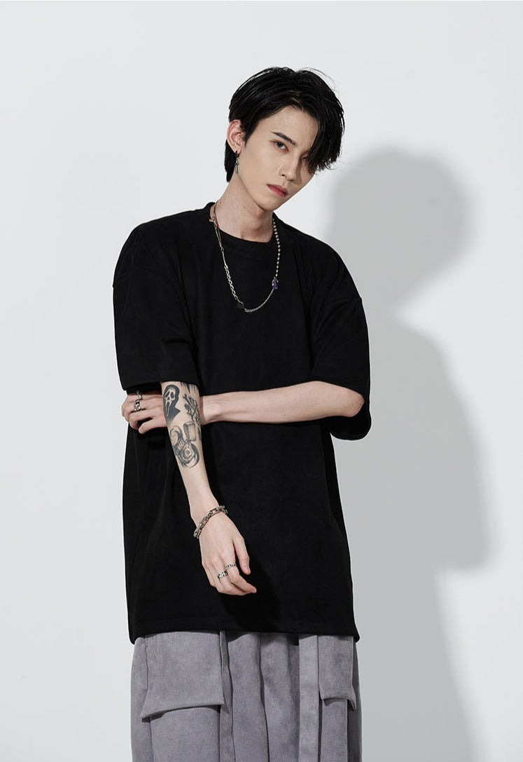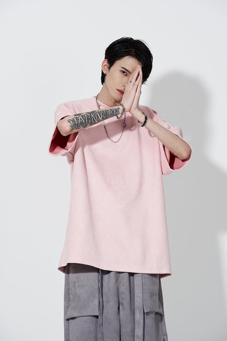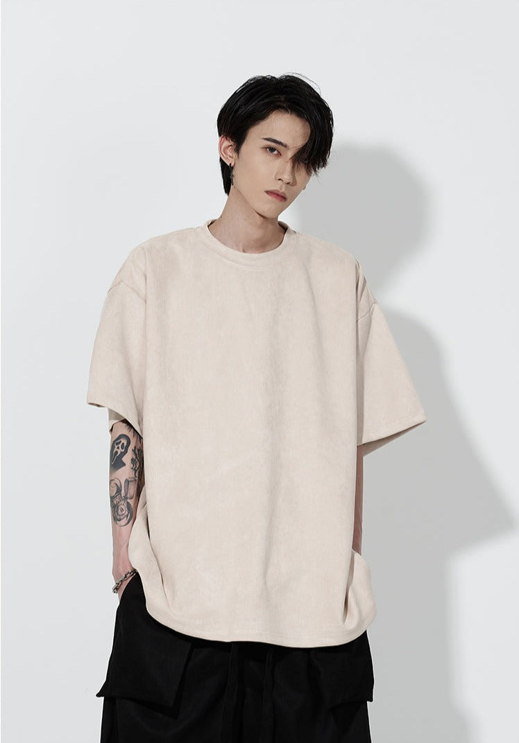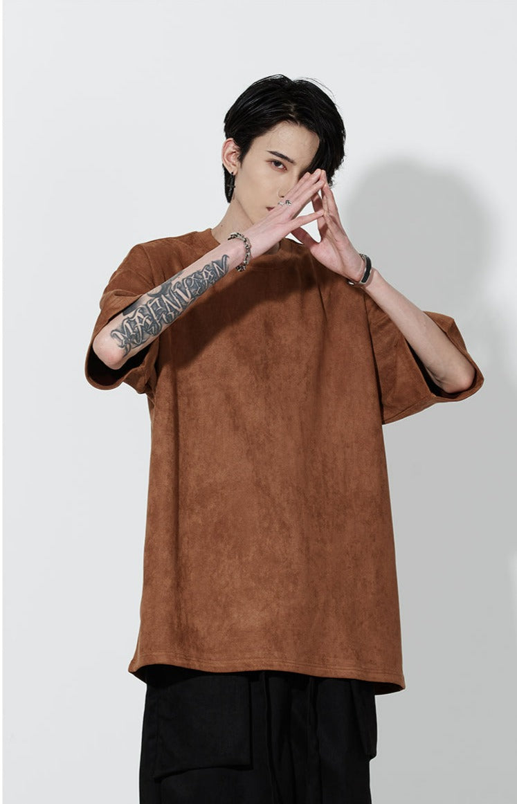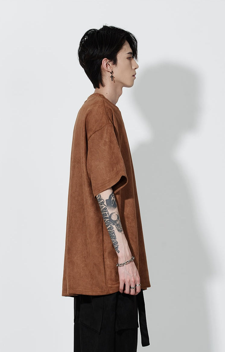 Read full Return PolicyThis oversized suede t-shirt is the perfect casual piece for any wardrobe. Soft and lightweight, it can be worn alone or easily layered beneath a coat or jacket for added warmth. Pair it with shorts or trousers for a versatile look that can be dressed up or down.