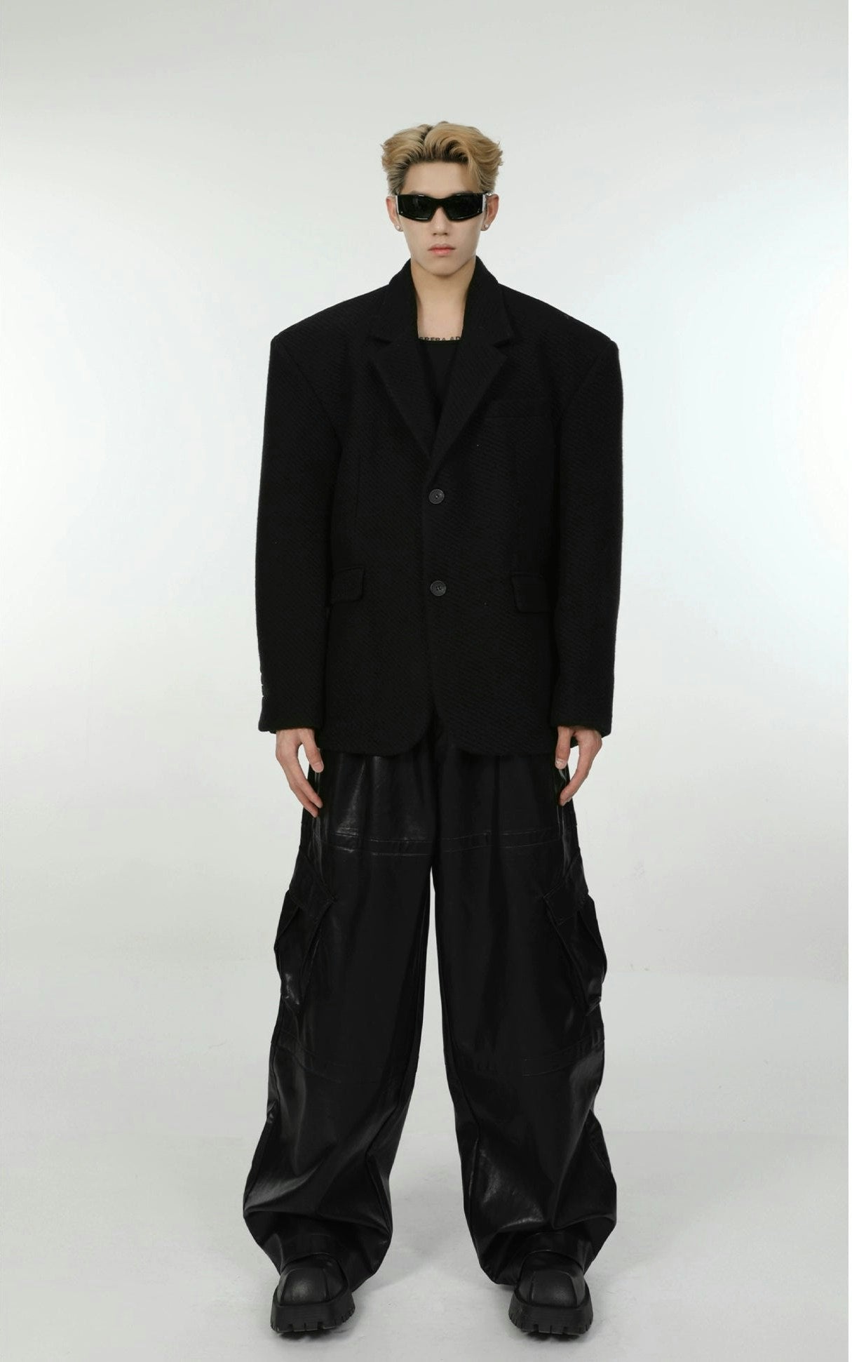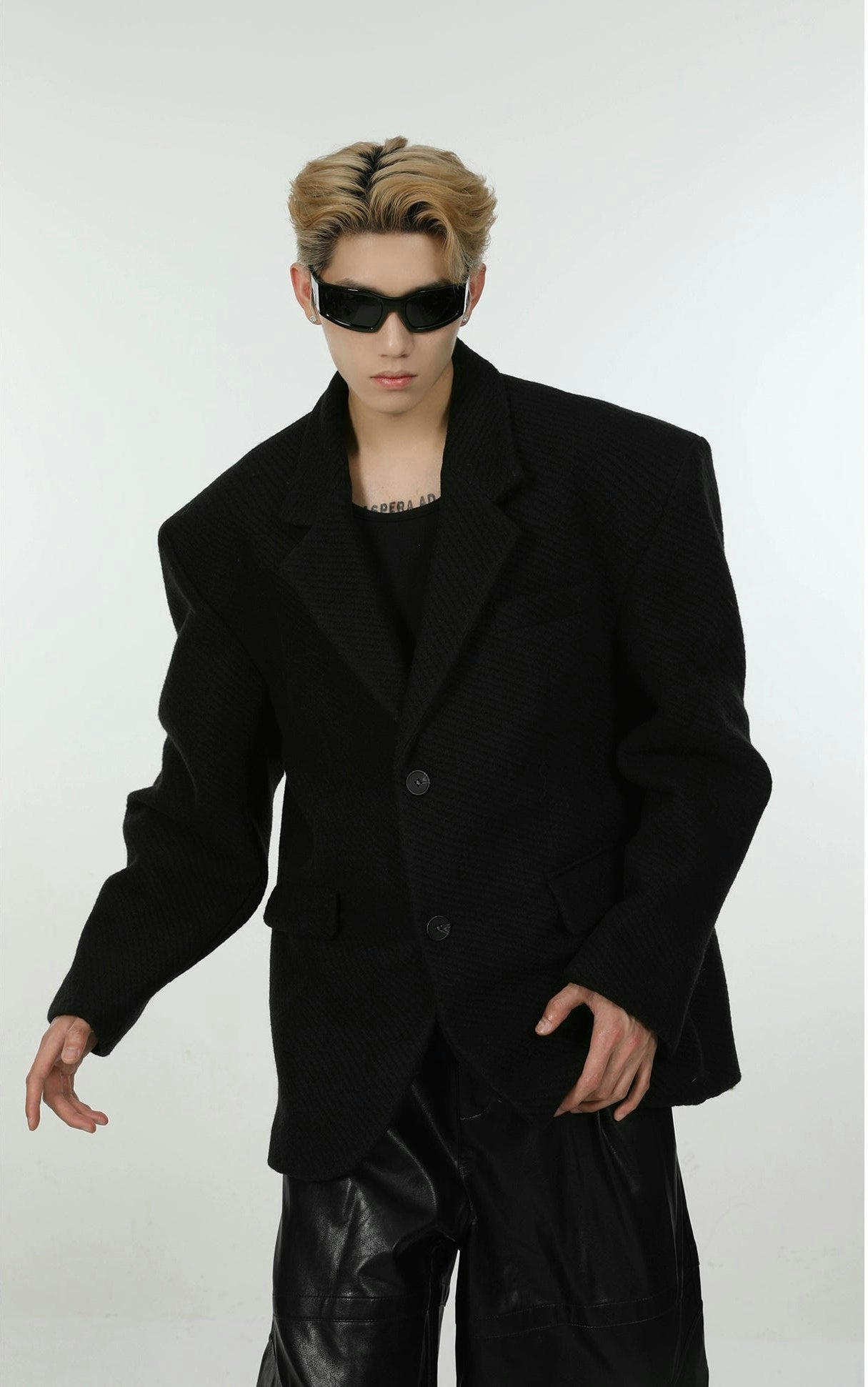 Oversized Textured Wide-Fit Blazer Jacket