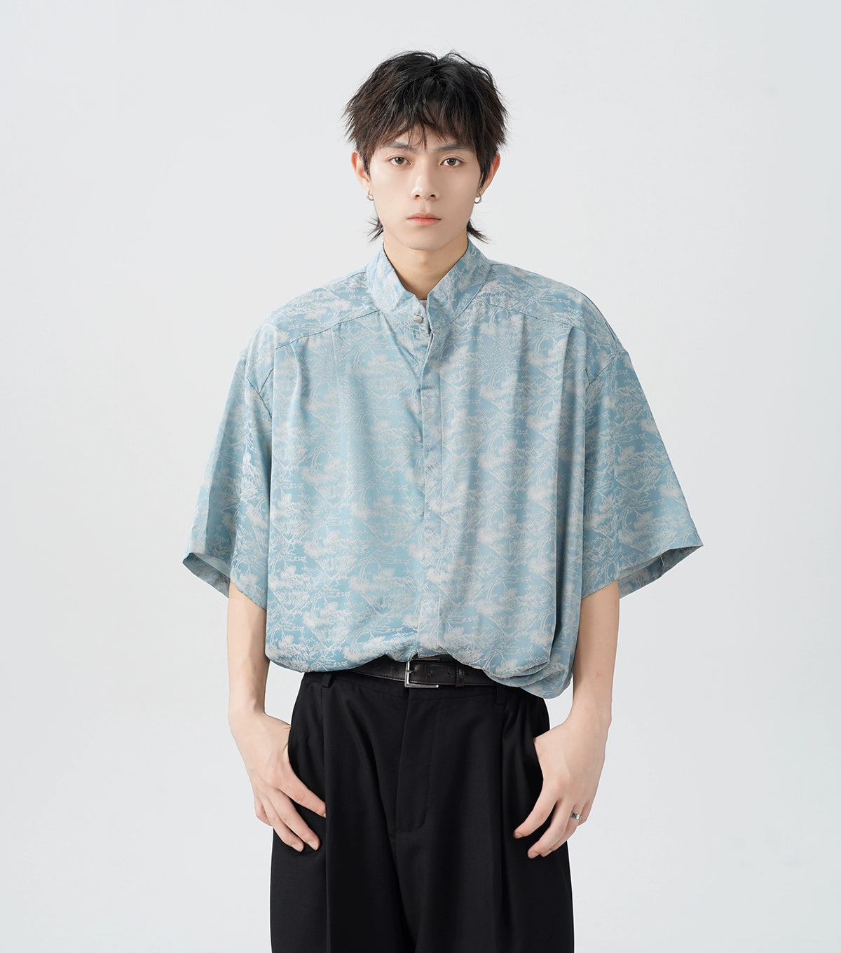 Read full Return PolicyIntroducing the essence of modern edge with this Oversized Tree Print Satin Button-Up Shirt, a must-have for any fashion-forward wardrobe.