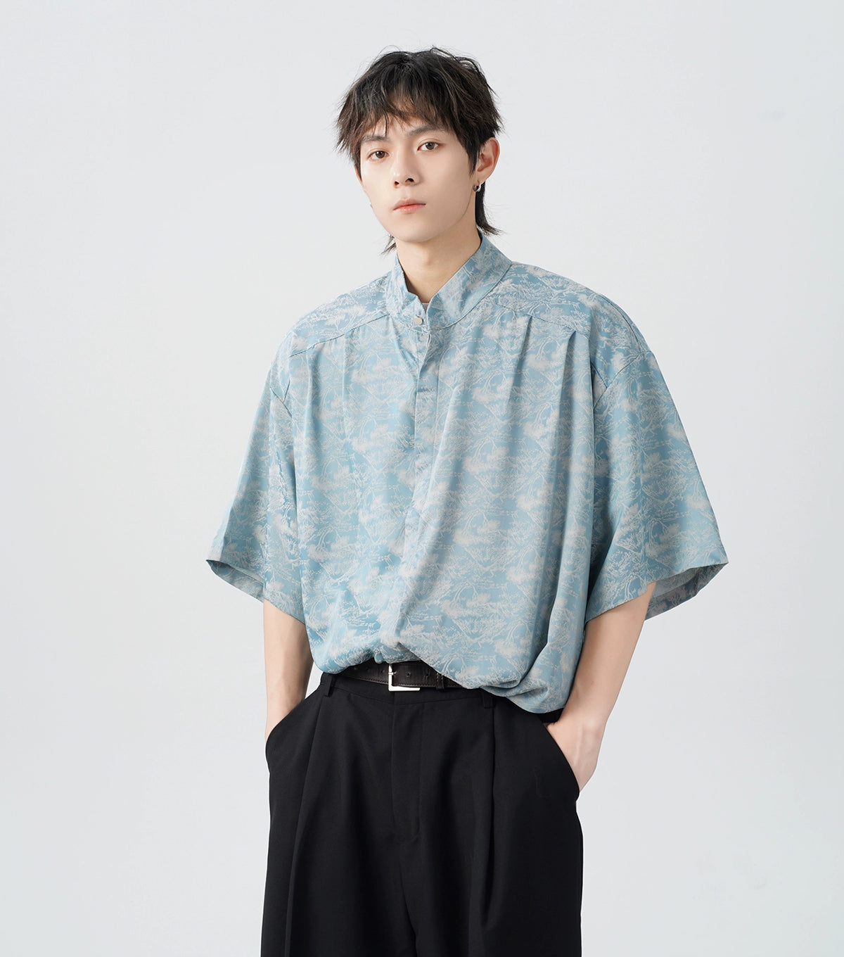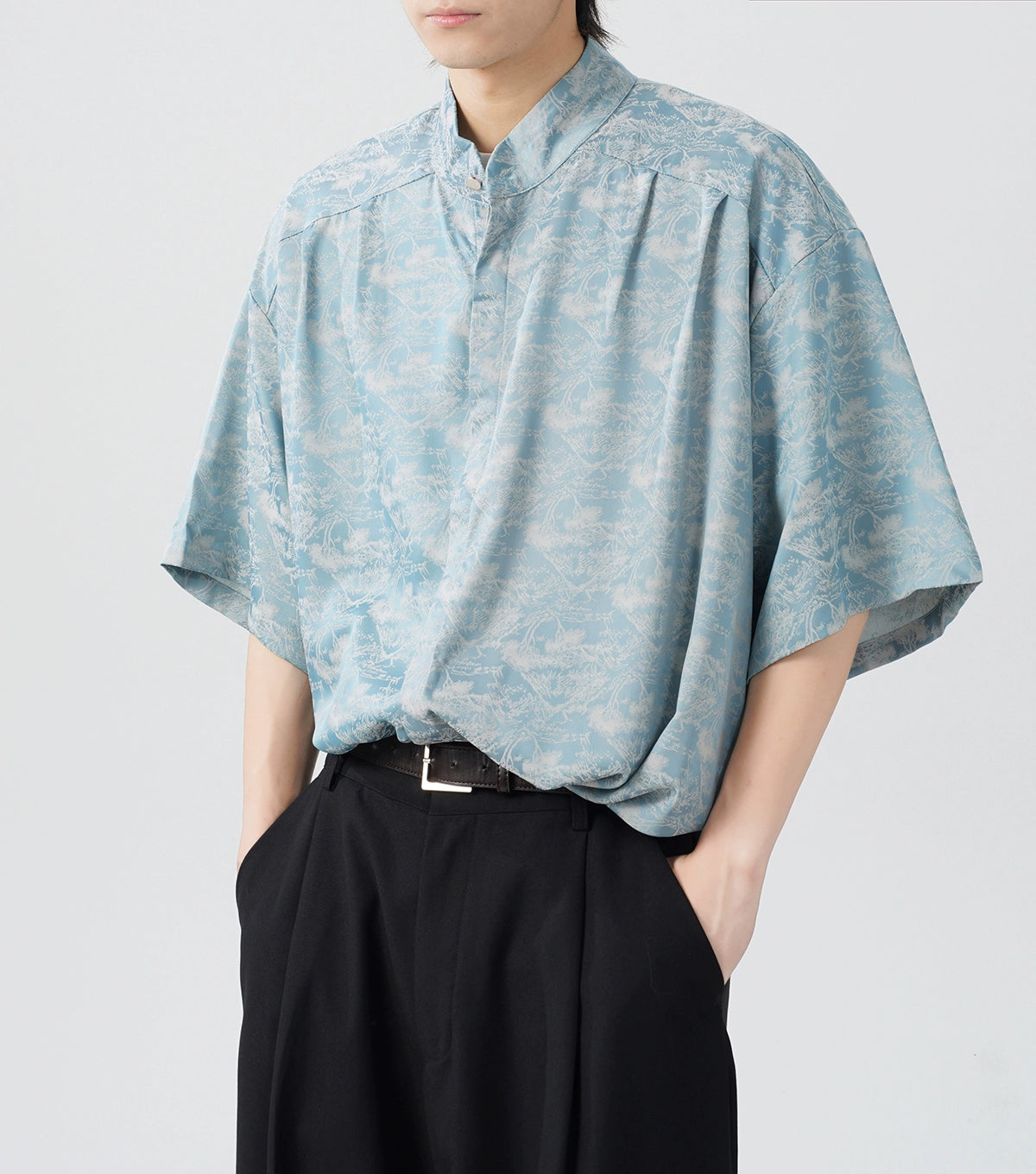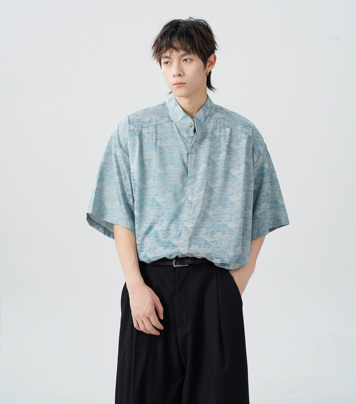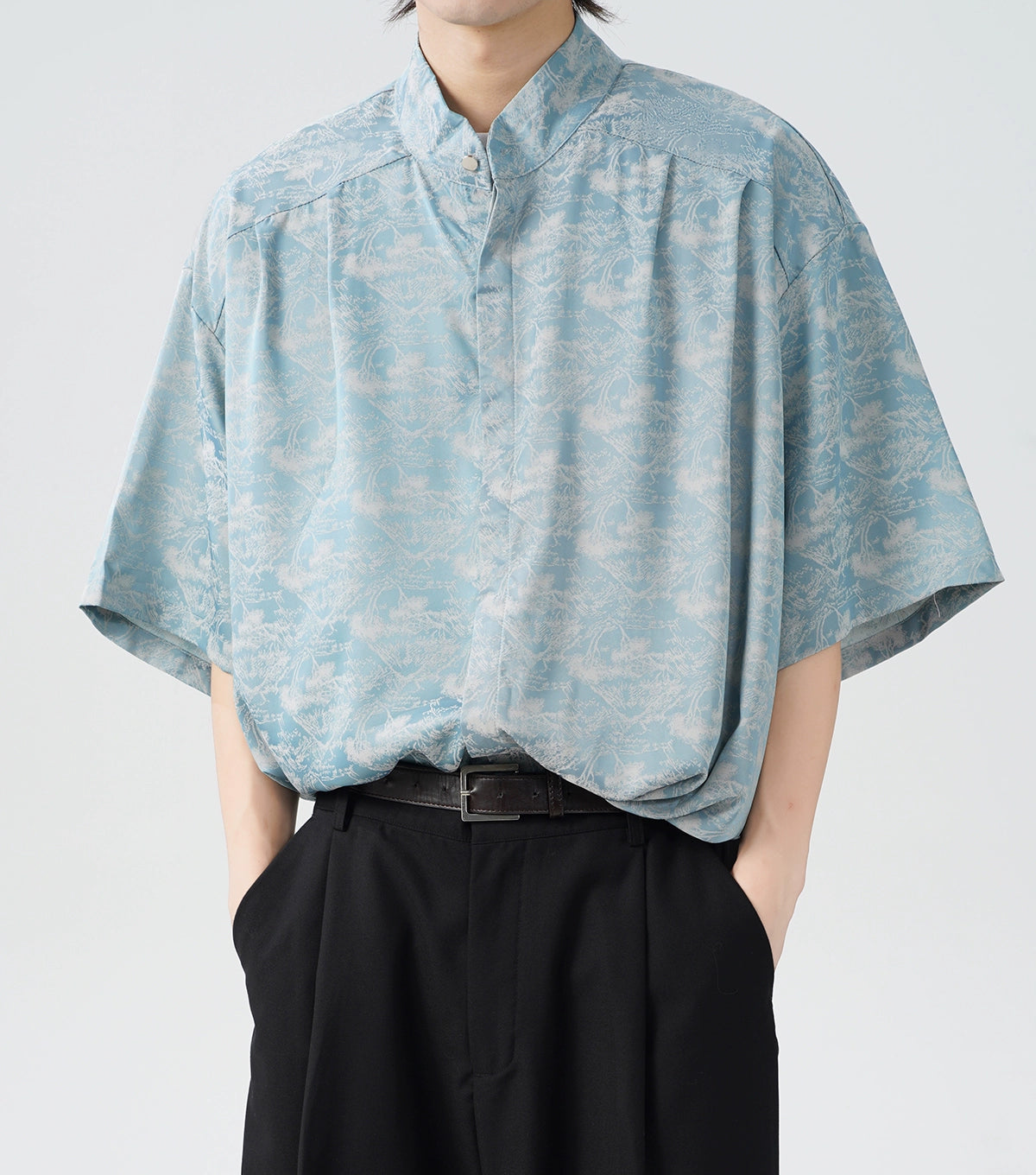 Crafted from smooth 100% polyester fiber, this shirt offers a relaxed and comfortable fit, designed with a sharp lapel collar and short sleeves. The captivating tree print pattern adds an artistic touch, while the satin finish gives it a luxe feel.