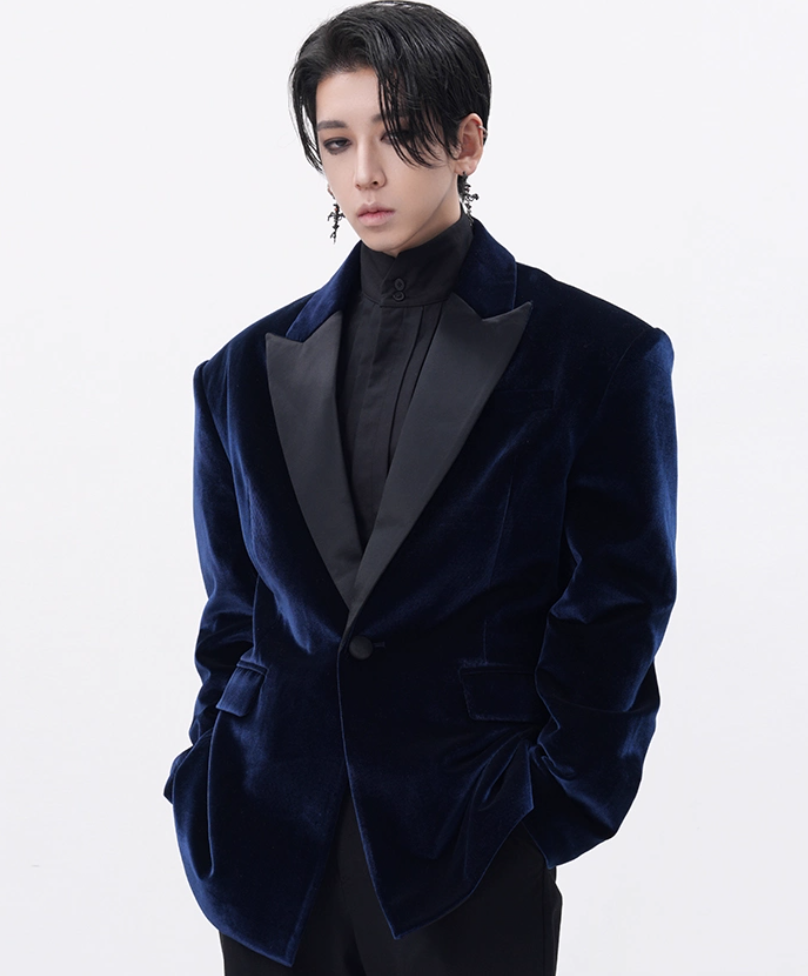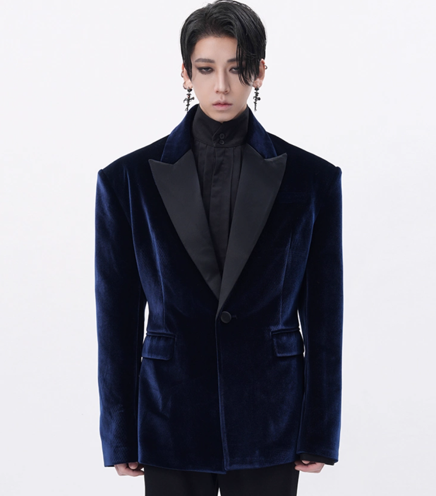Oversized Wide-Fit Velvet Blazer with Contrast Lapel