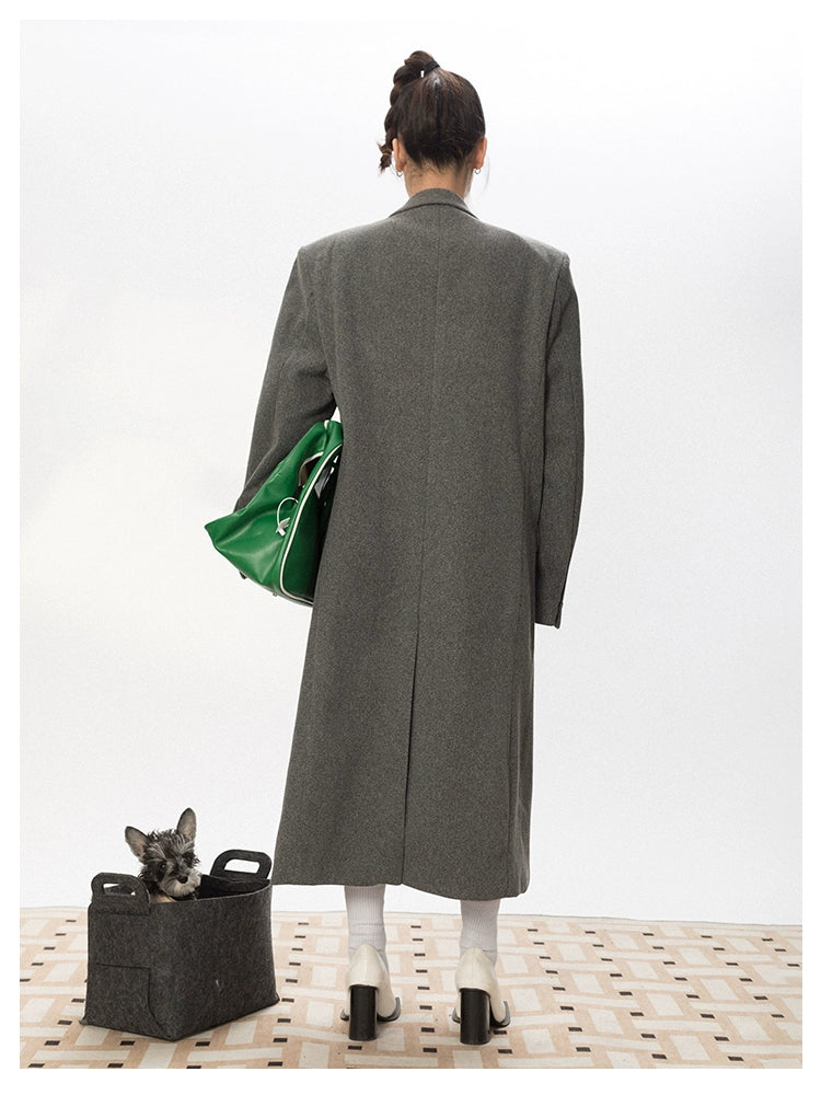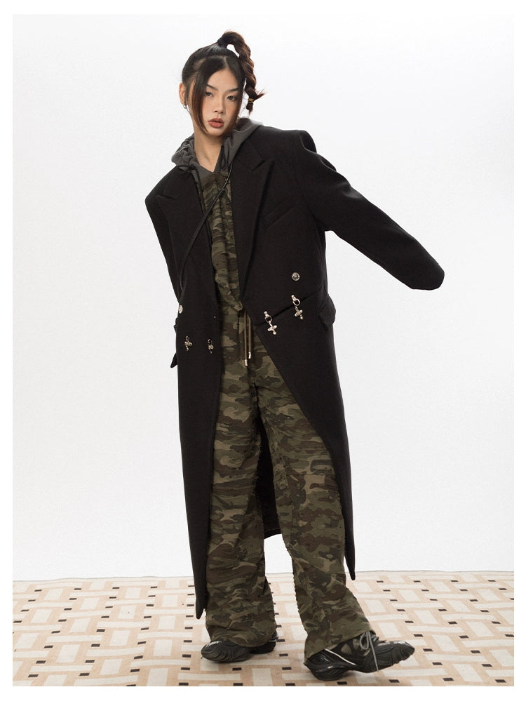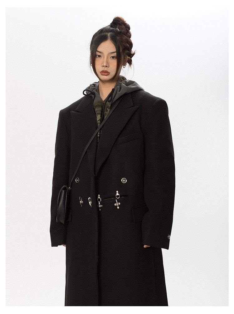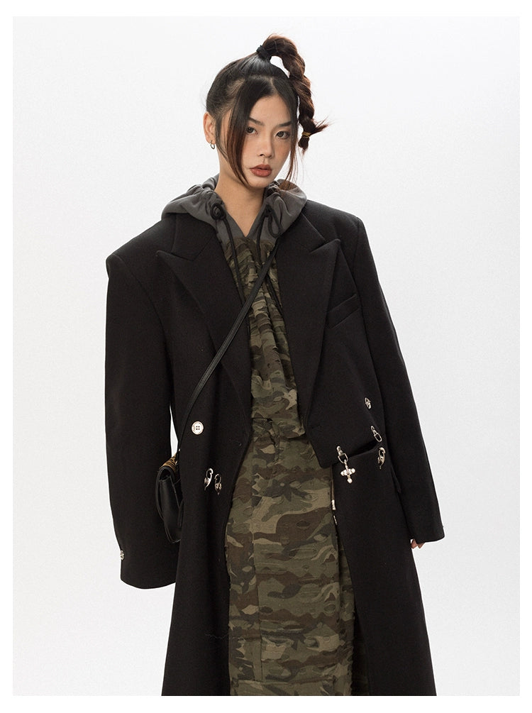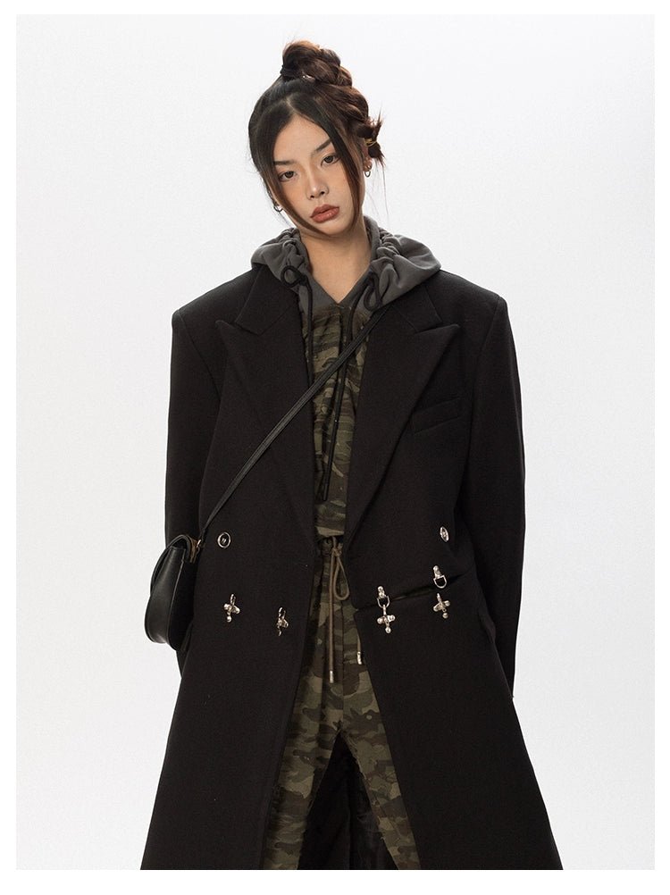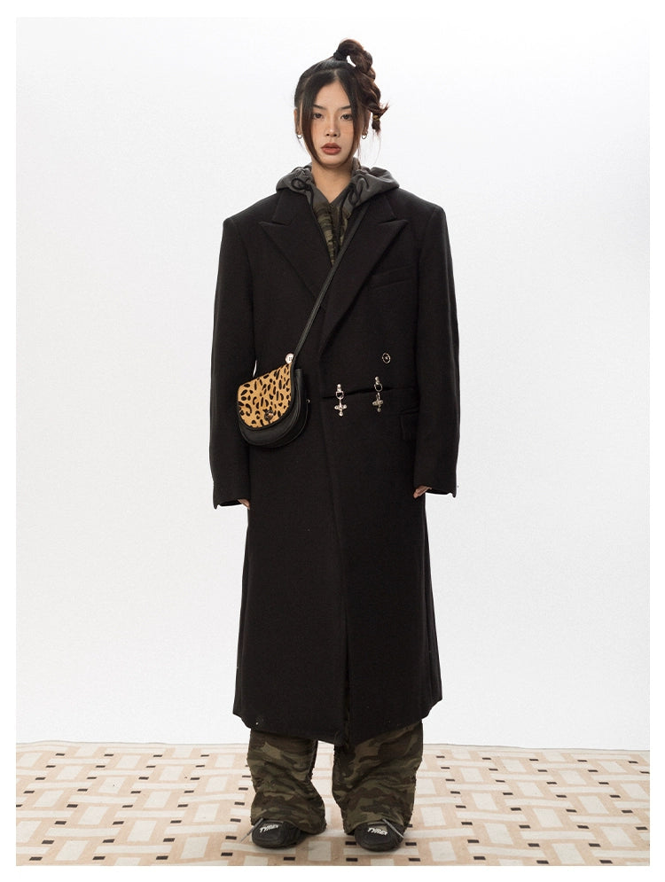 Oversized Wool Long Coat with Charm Details