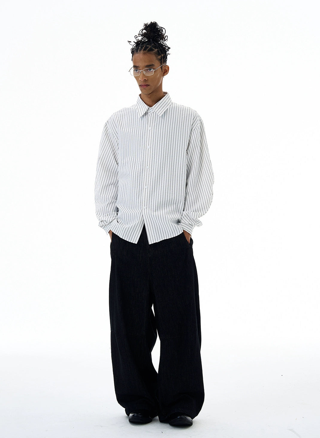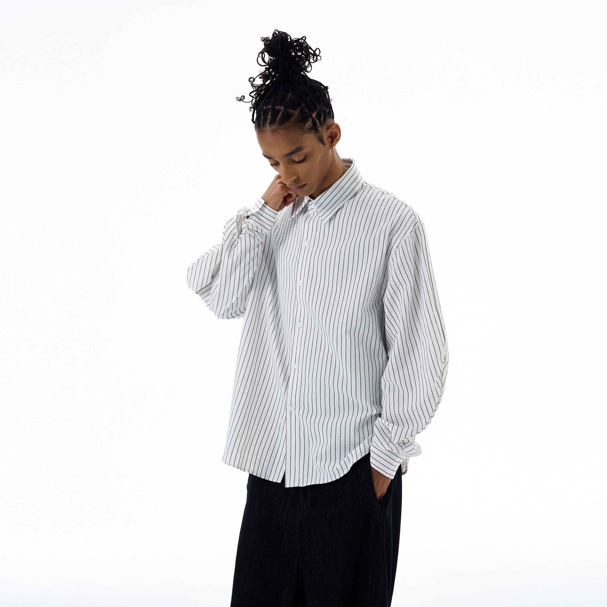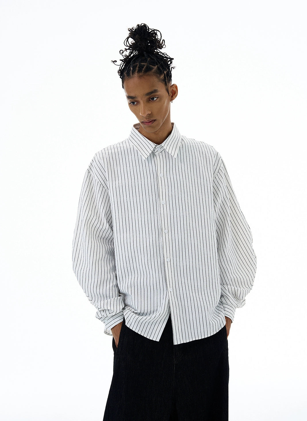 Pinstripe Long Sleeve Drop Shoulder Button Shirt