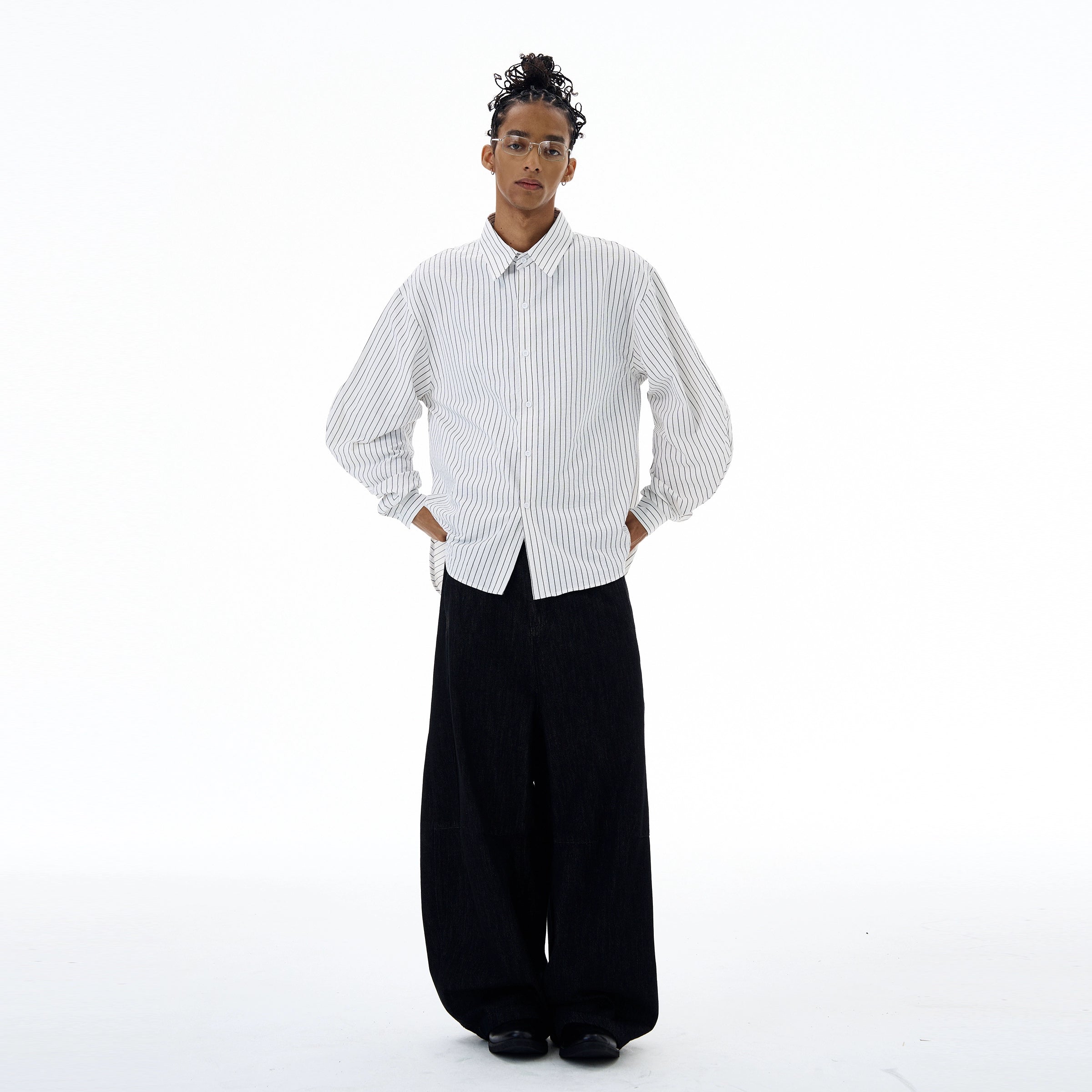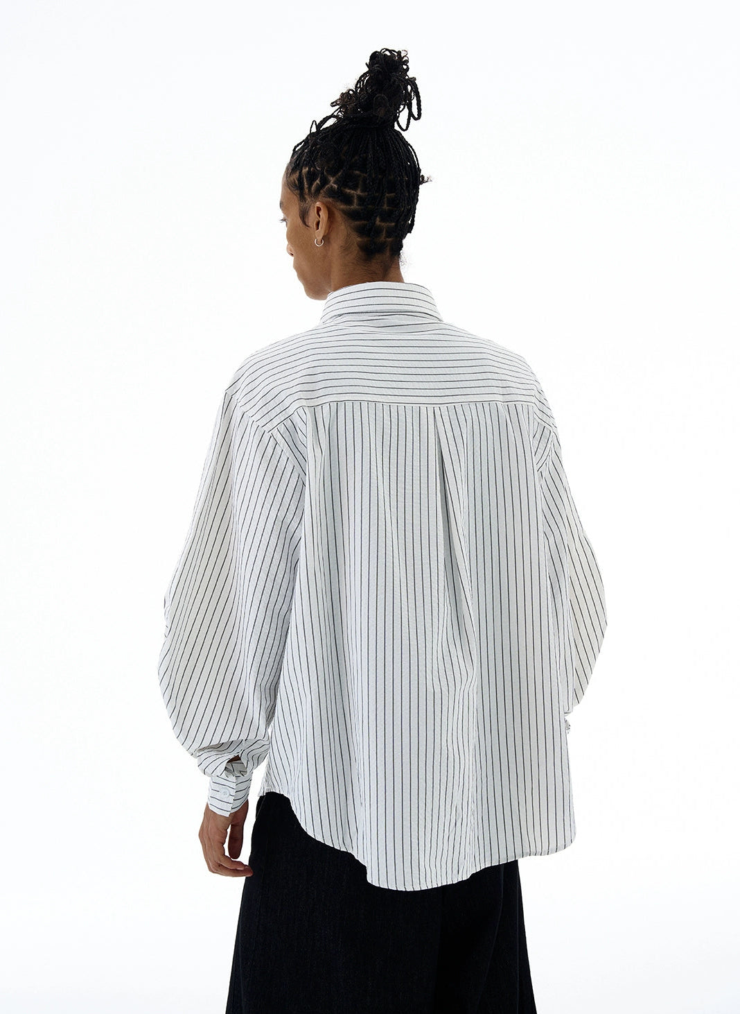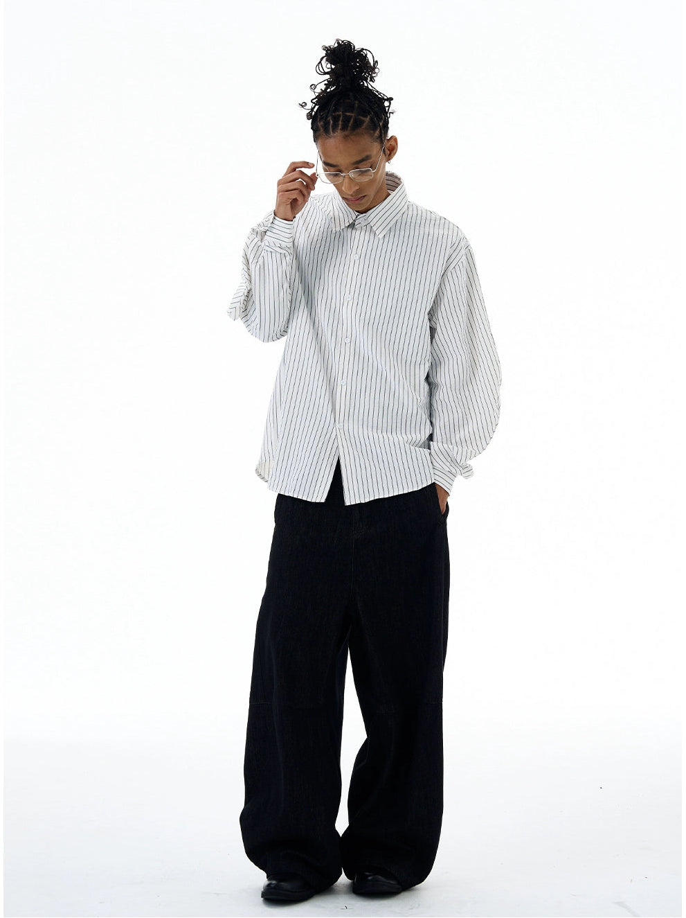 Pinstripe Long Sleeve Drop Shoulder Button Shirt