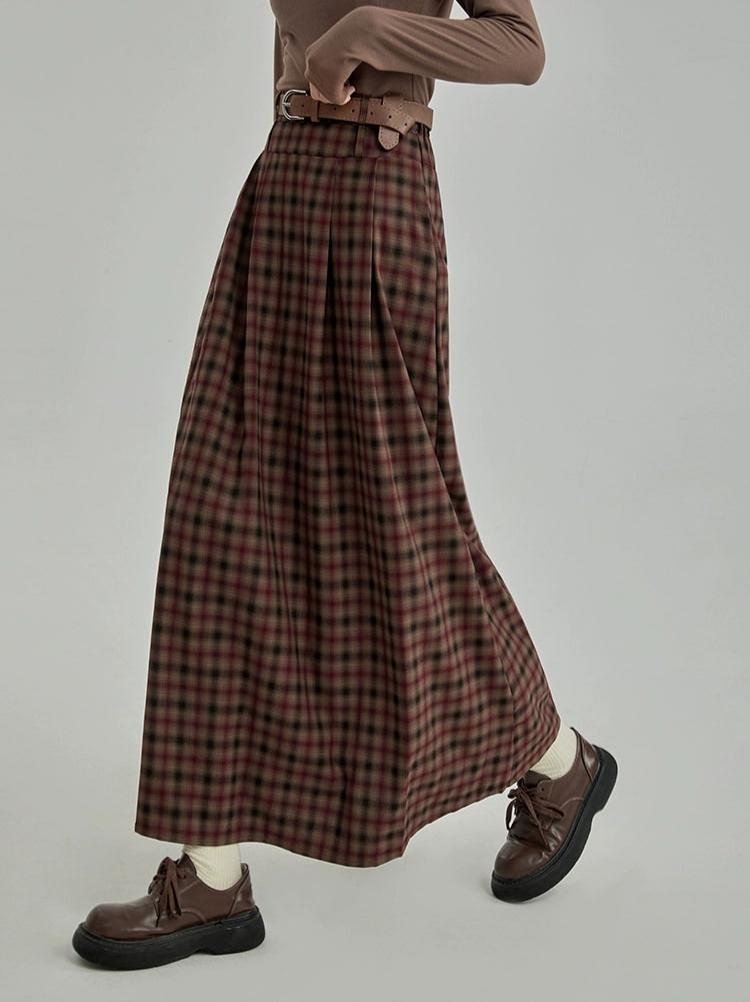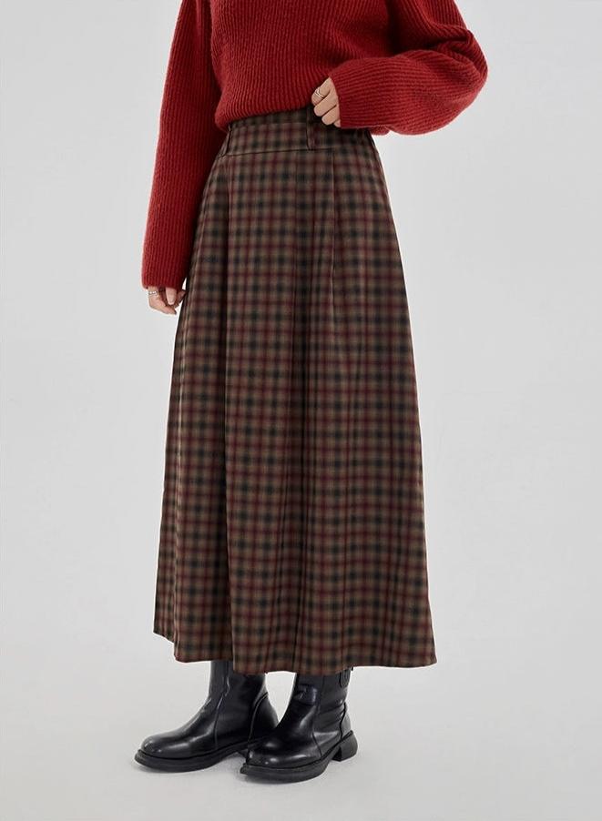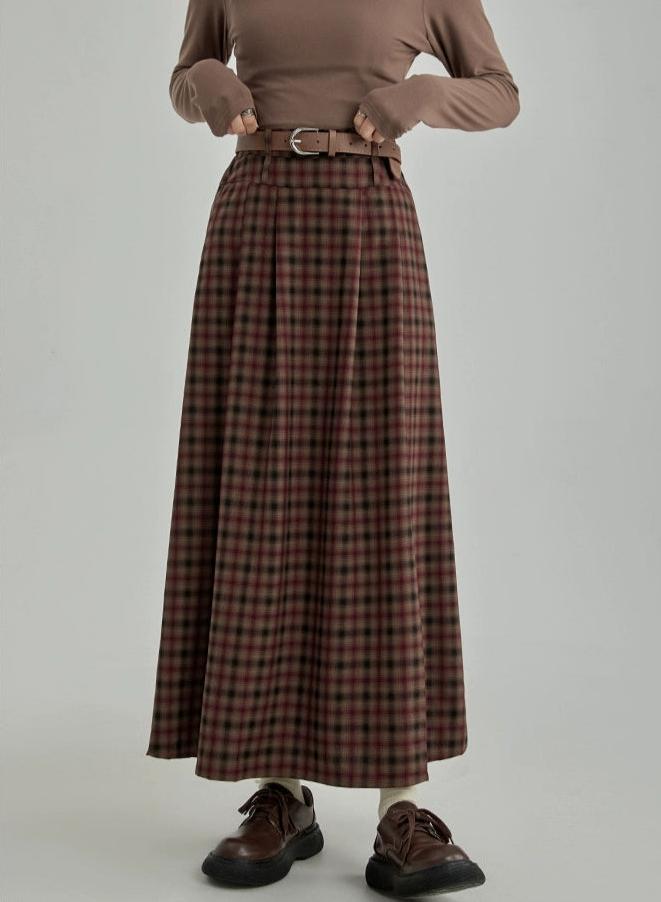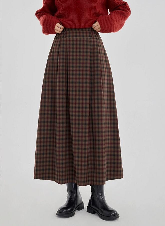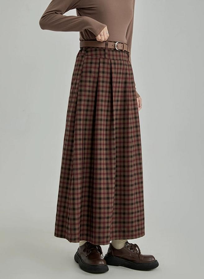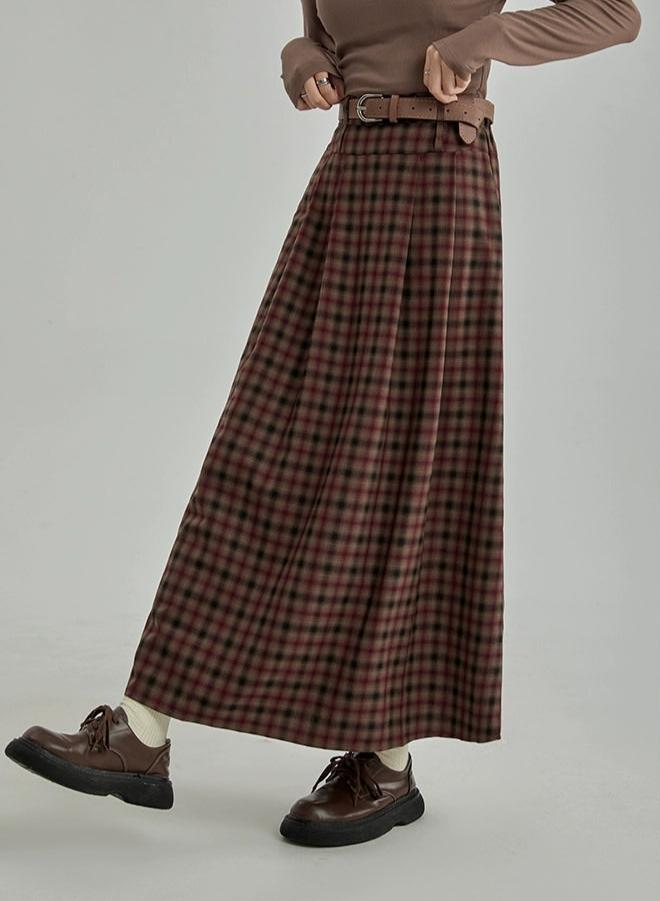 Plaid Pleated Maxi Skirt with Elastic Waist