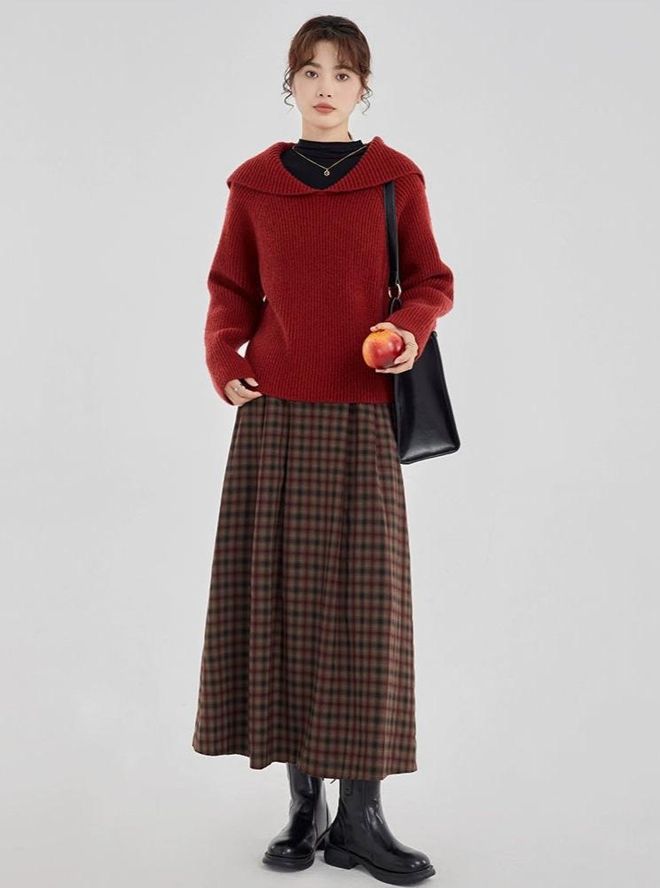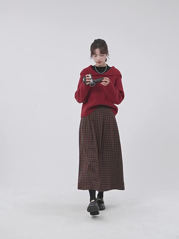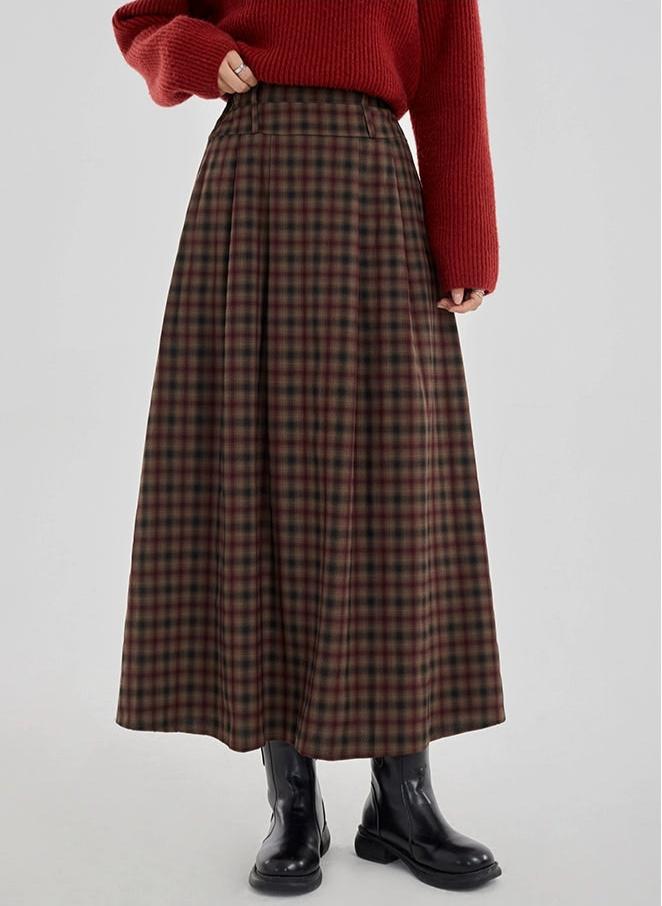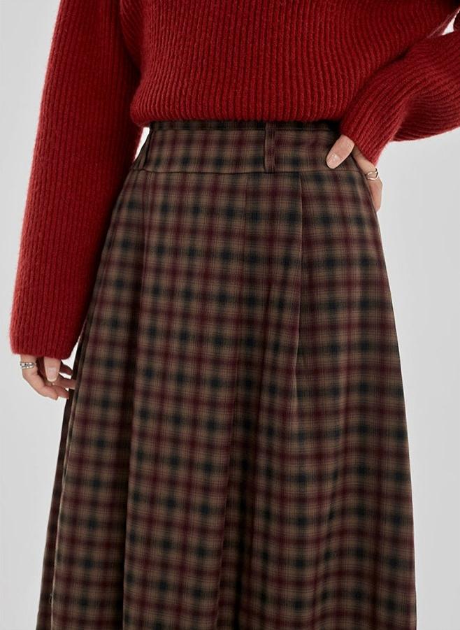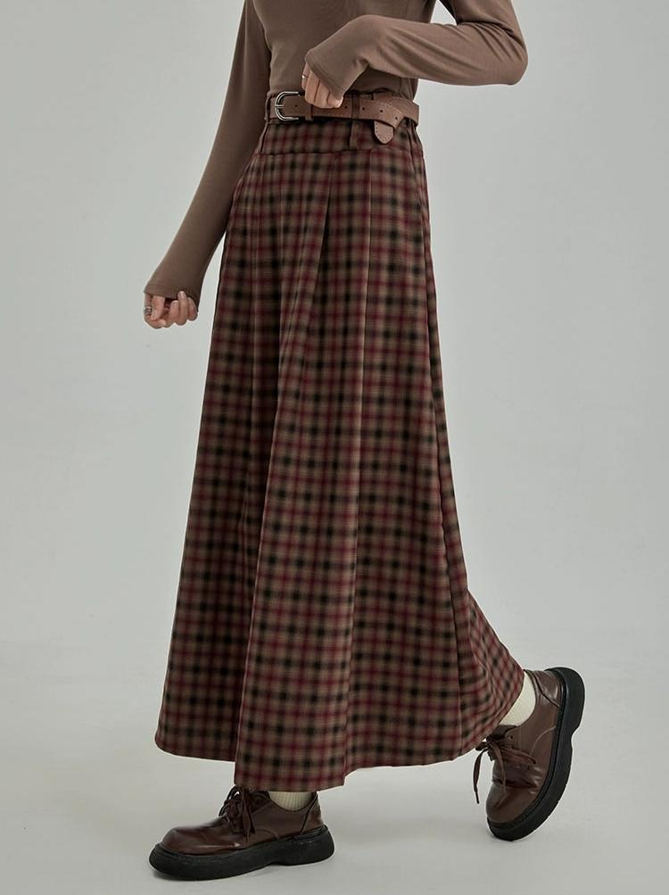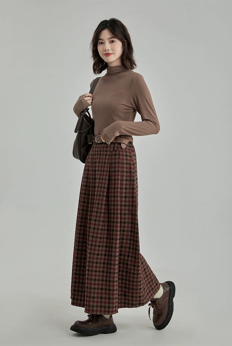 Plaid Pleated Maxi Skirt with Elastic Waist