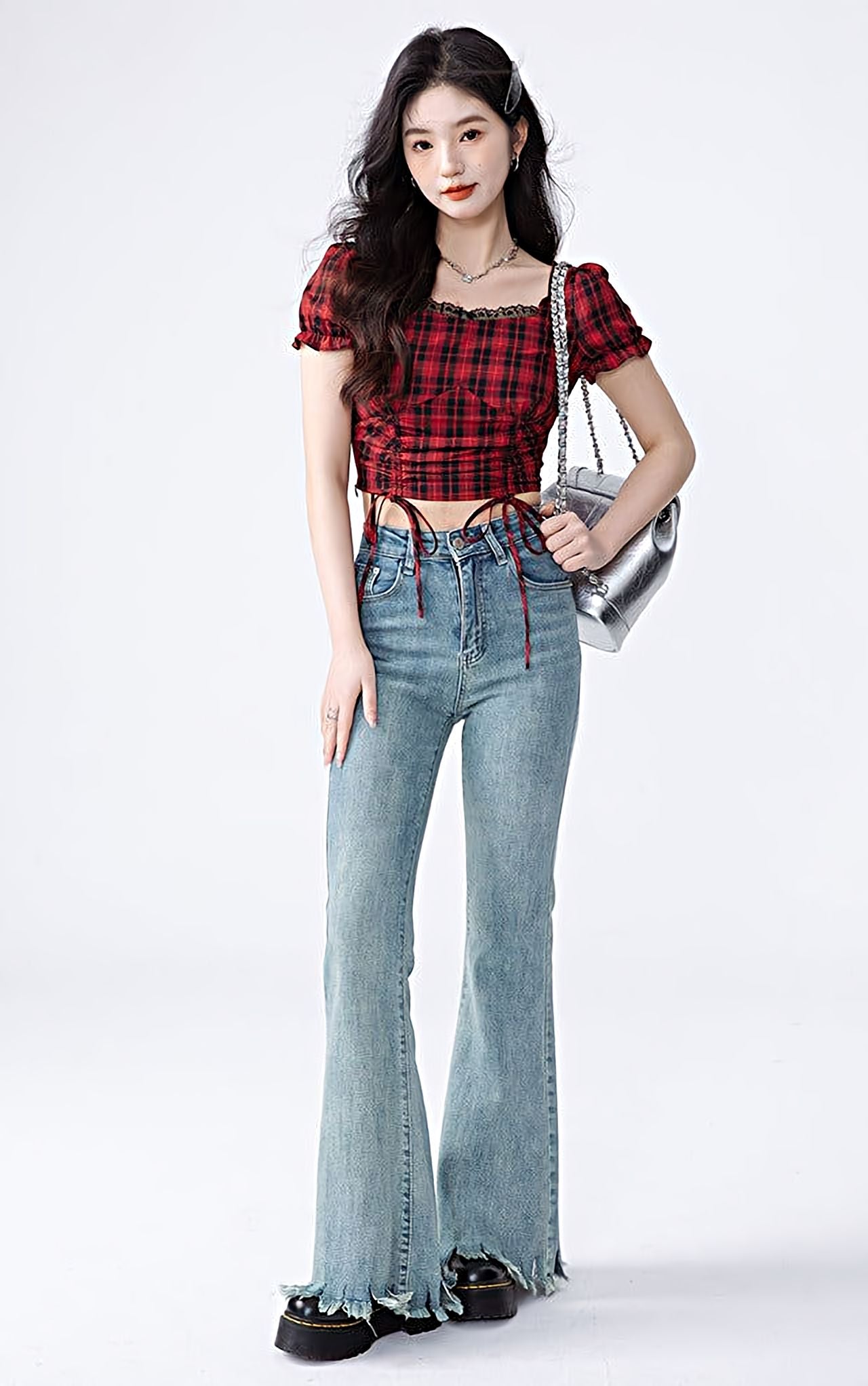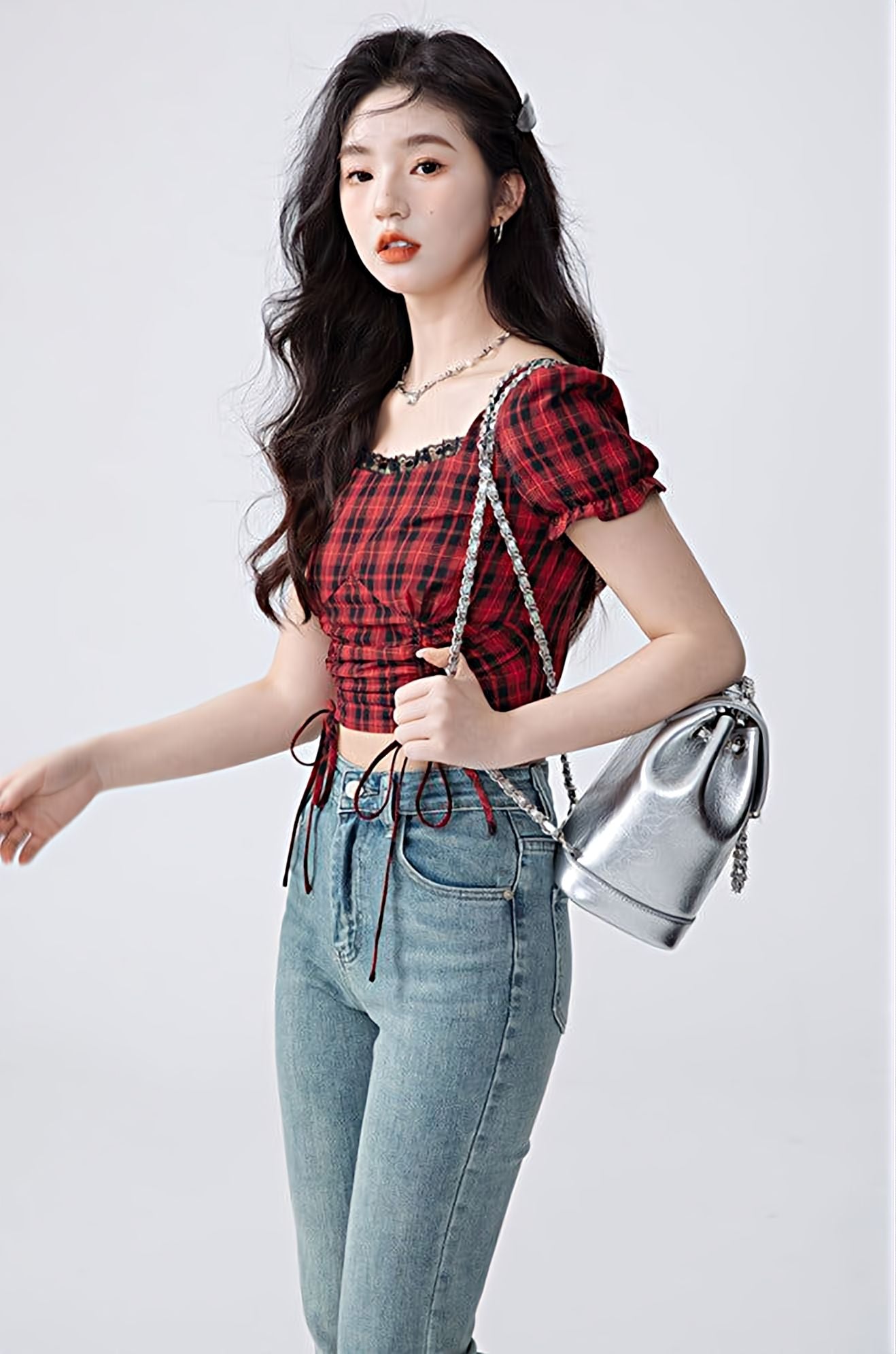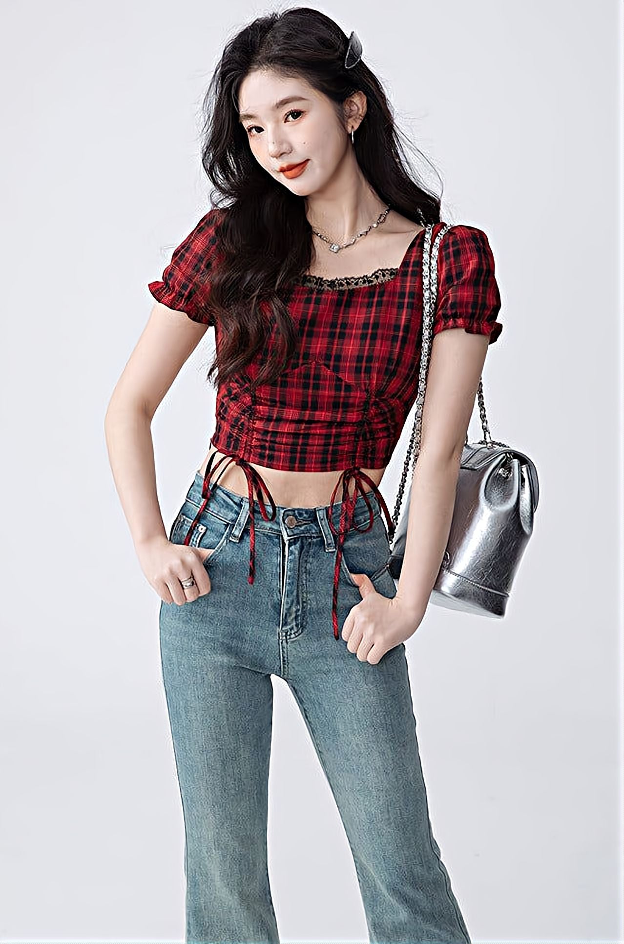 Read full Return PolicyThis Plaid Ruched Puff Sleeve Crop Top is perfect for everyday wear. It features a casual plaid pattern made of soft cotton fabric, and modern ruched puff sleeves with drawstrings for adjustable fit. Wear this top with jeans or skirts for a fashionable, comfortable look.