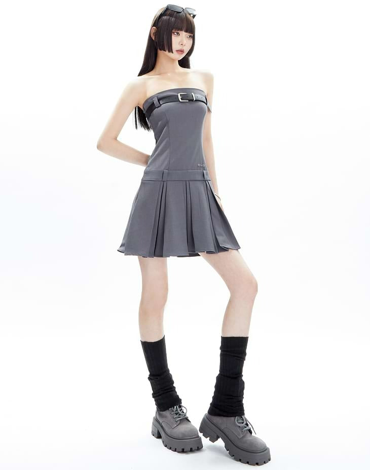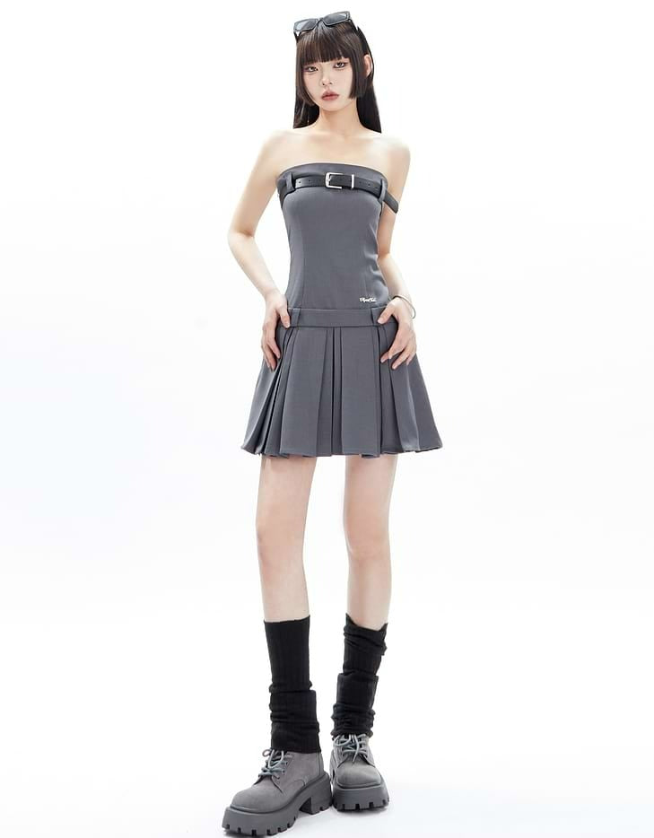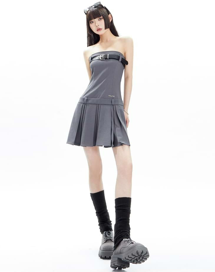 Pleated Bandeau Tube Mini Dress